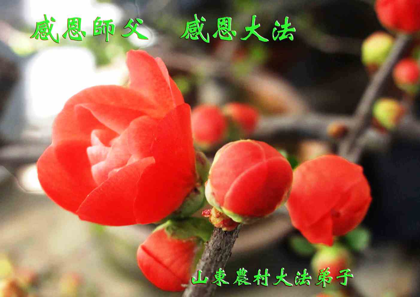 感恩慈悲伟大的李大师对我们的慈悲救度!千言万语无法表达我们对李大师的感激之情,因为人世间没有任何东西能够与生命的重生相比,如果不是李大师慈悲救度,我们早已成为中共邪党的陪葬品。