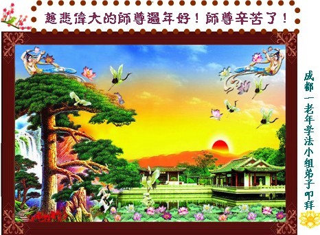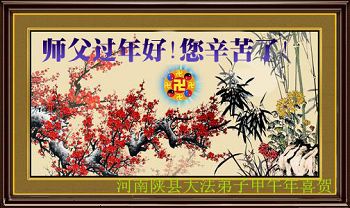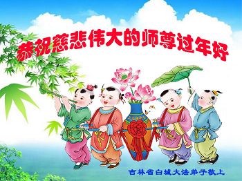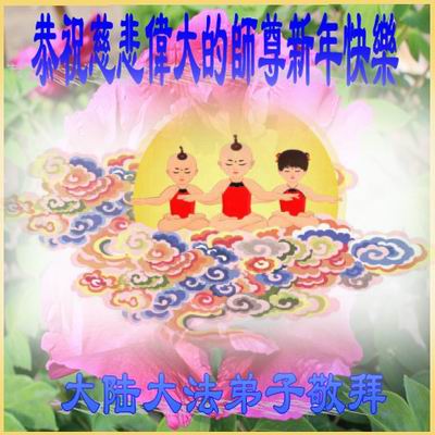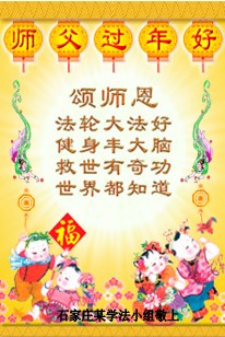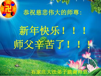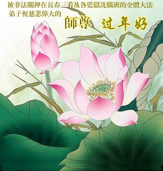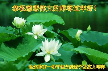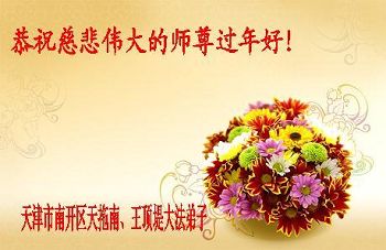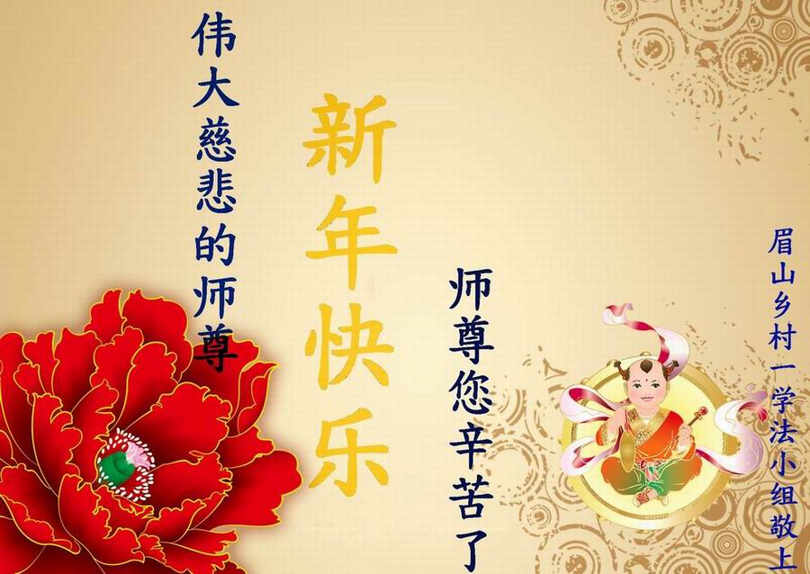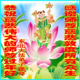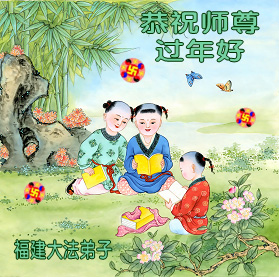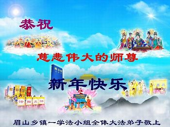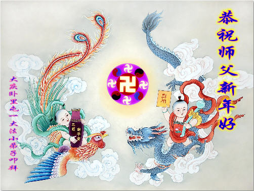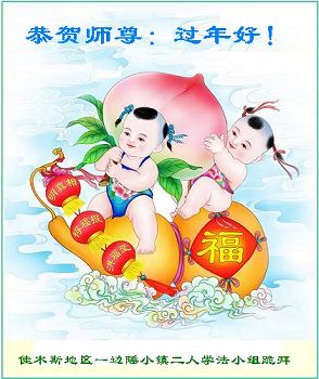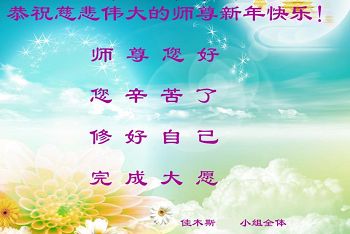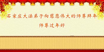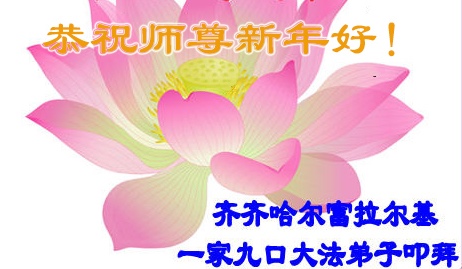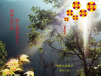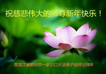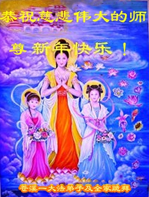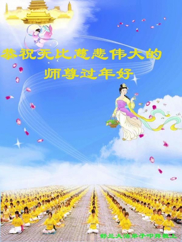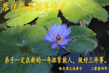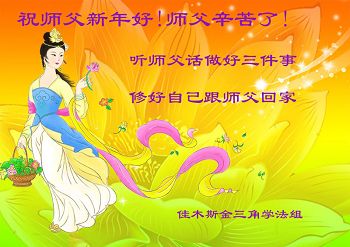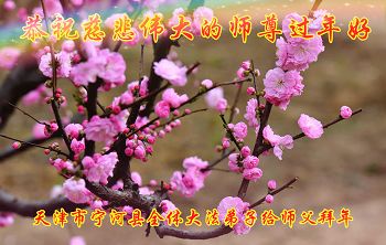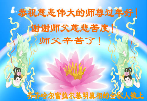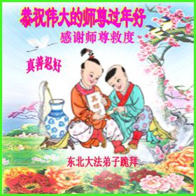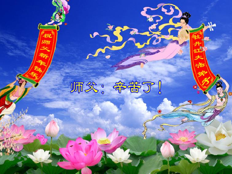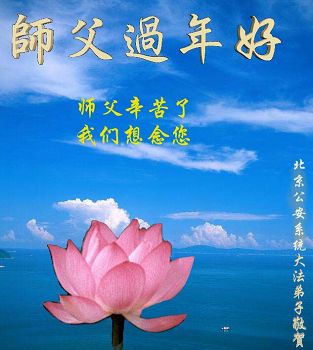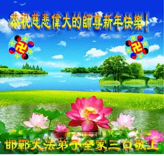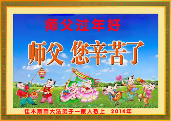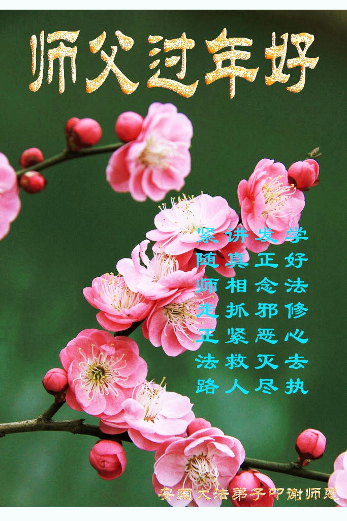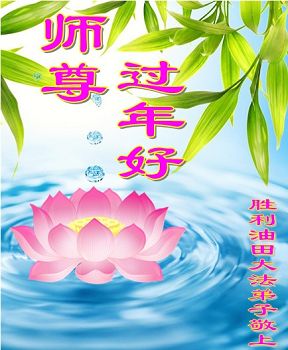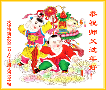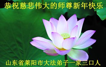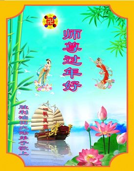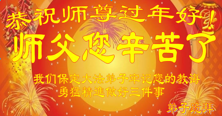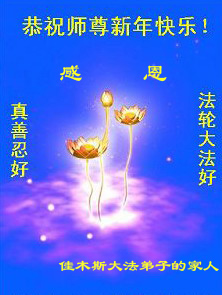 中国传统大年来到了,弟子恭祝师尊新年快乐!听人说,耶稣讲过税吏最难度。在这复杂的环境里我们俩位大法弟子一定遵照师尊的教诲,尽最大努力多救人!同时代表我妻子及女儿向慈悲伟大的师父叩谢救度之恩,在正法的最后时刻,我们一定以法为师,做好三件事,继续多救人,圆满随师还。