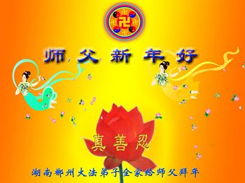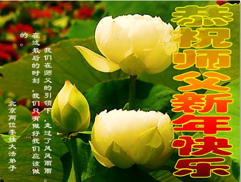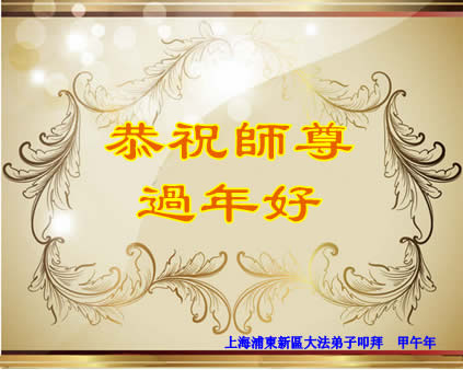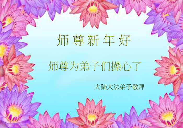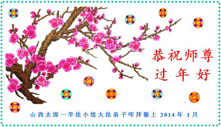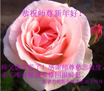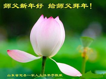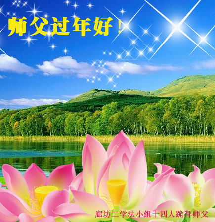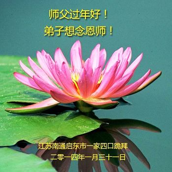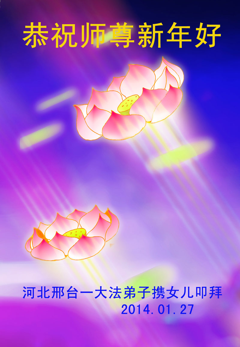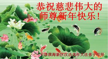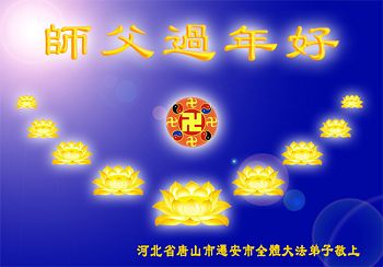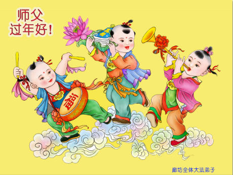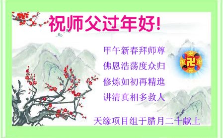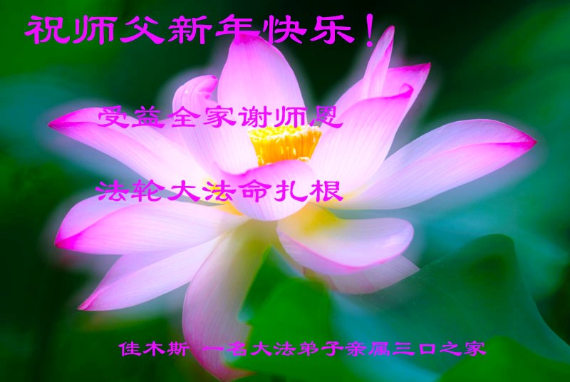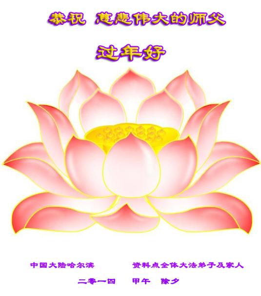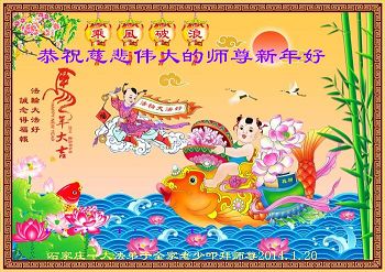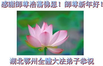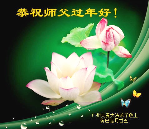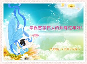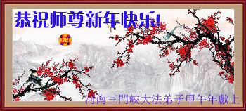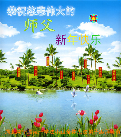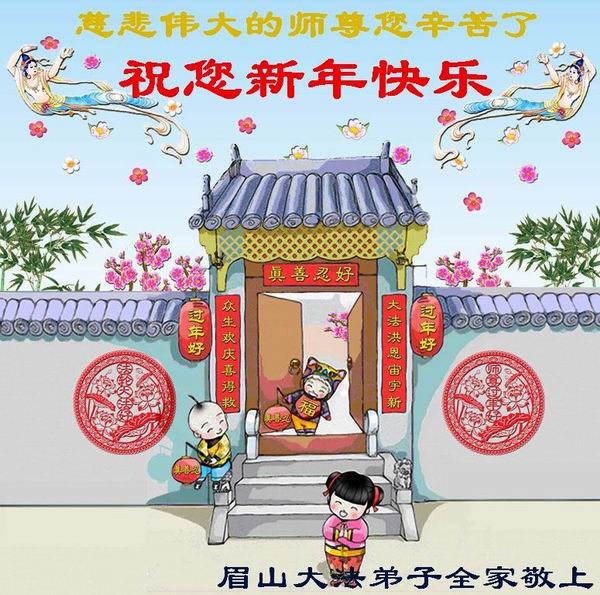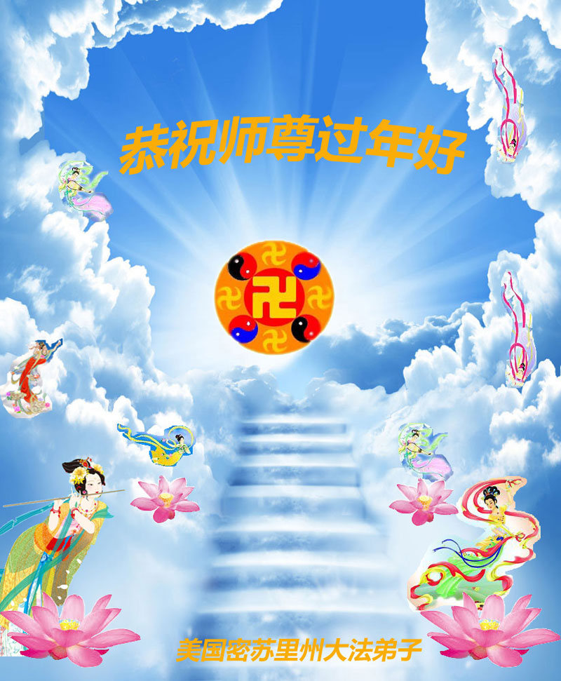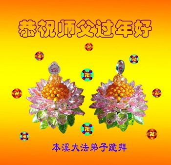 中国传统大年来到了,弟子恭祝师尊新年快乐!听人说,耶稣讲过税吏最难度。在这复杂的环境里我们俩位大法弟子一定遵照师尊的教诲,尽最大努力多救人!同时代表我妻子及女儿向慈悲伟大的师父叩谢救度之恩,在正法的最后时刻,我们一定以法为师,做好三件事,继续多救人,圆满随师还。