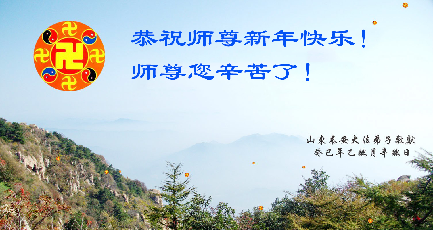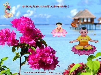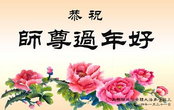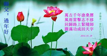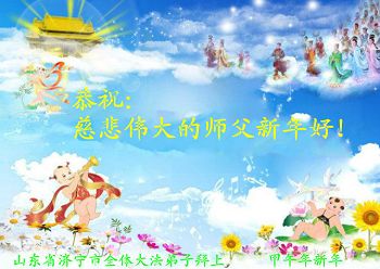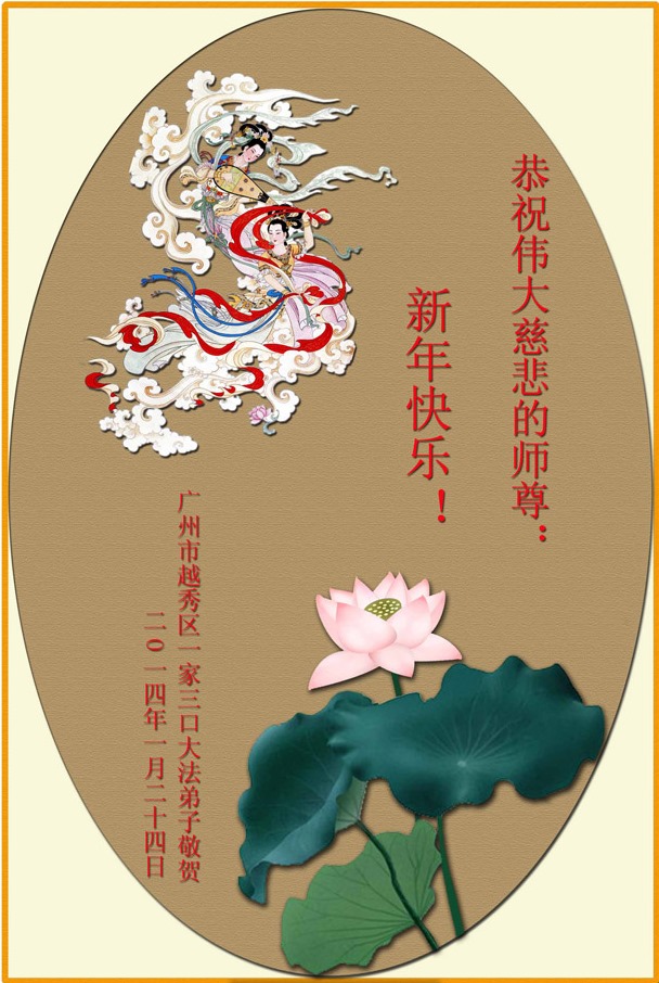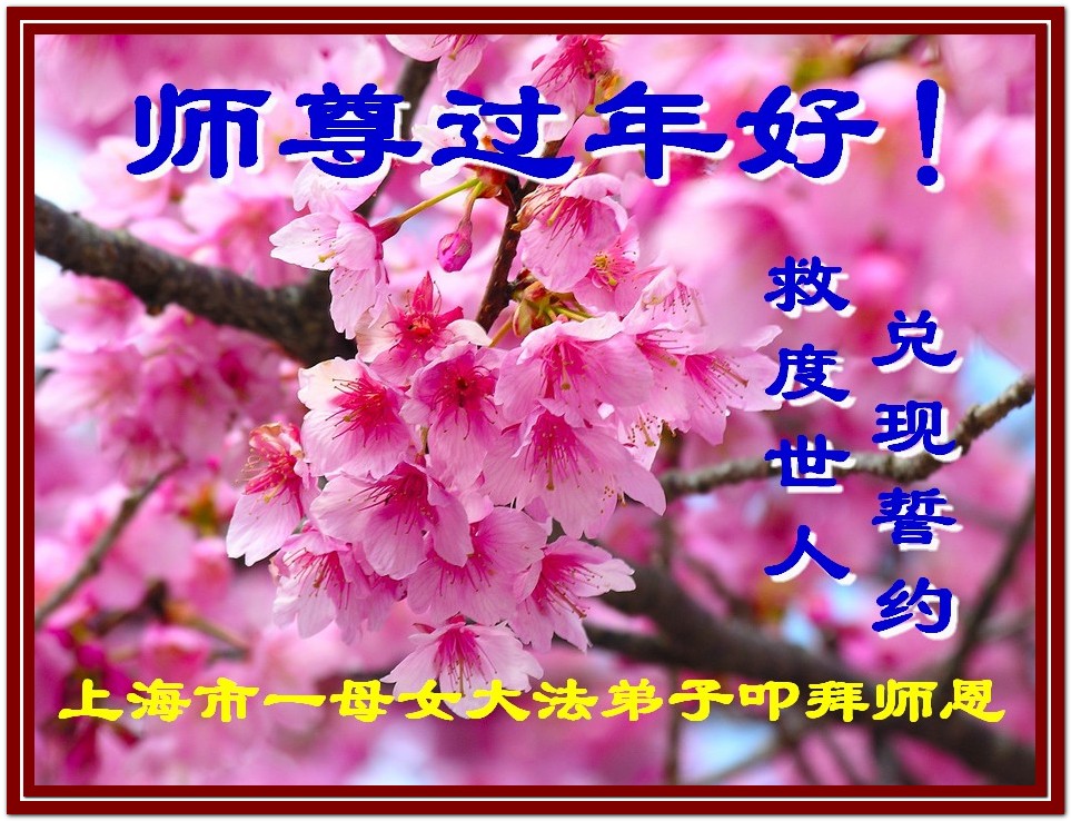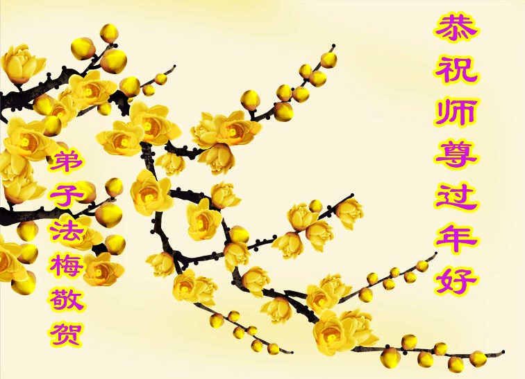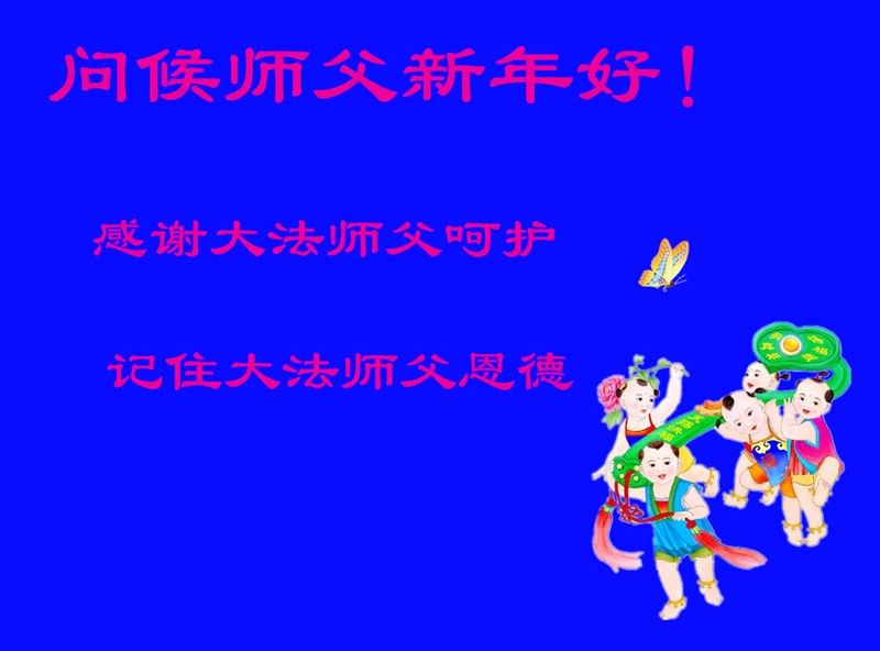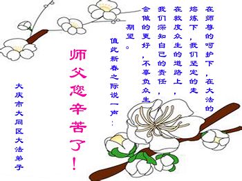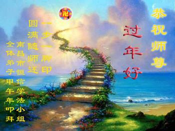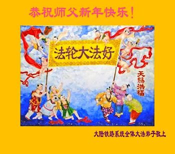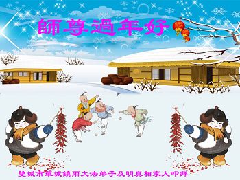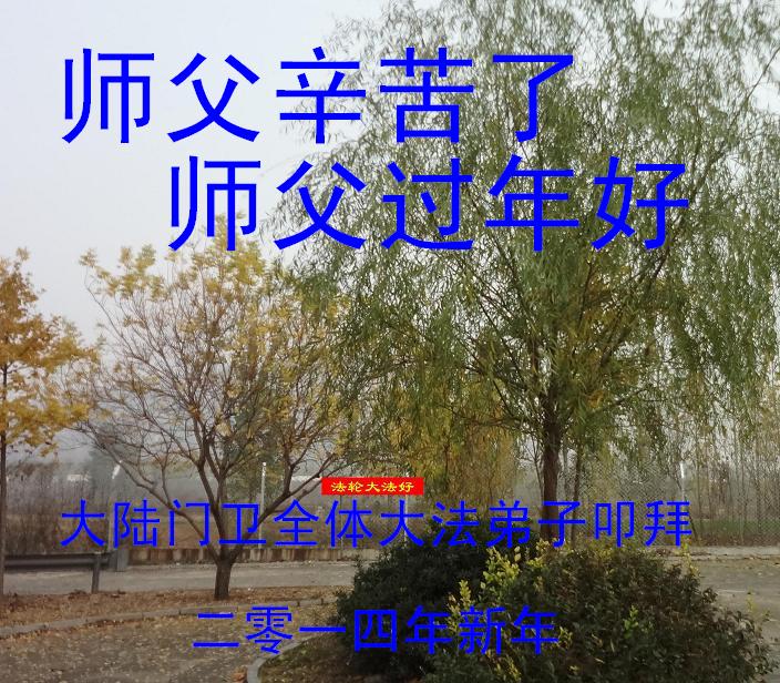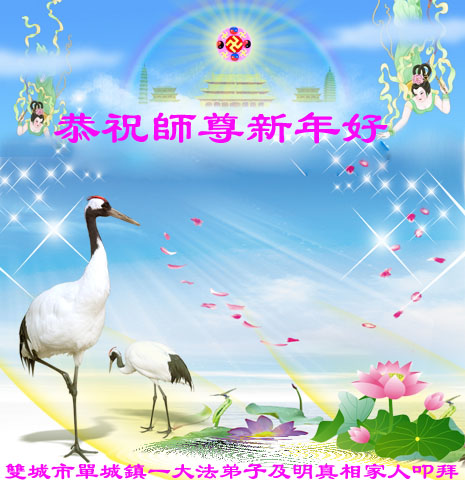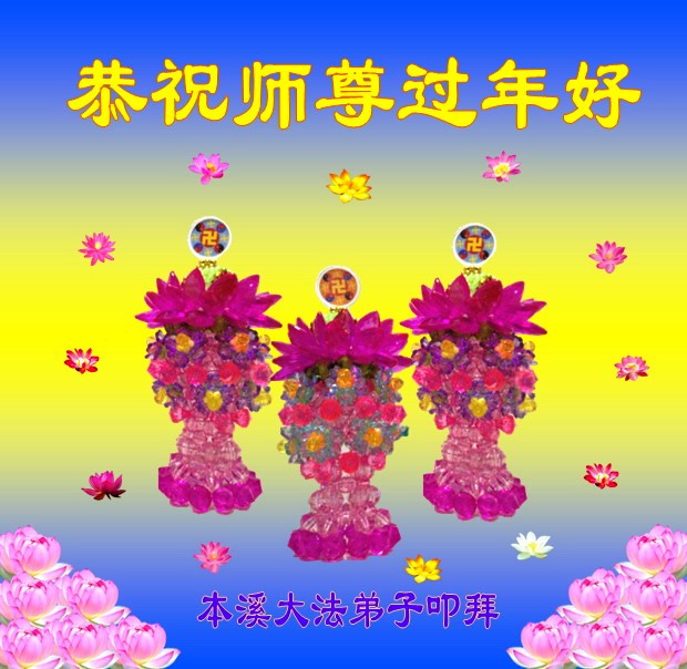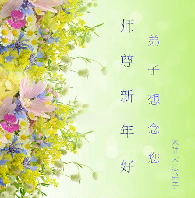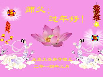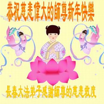 中国传统大年来到了,弟子恭祝师尊新年快乐!听人说,耶稣讲过税吏最难度。在这复杂的环境里我们俩位大法弟子一定遵照师尊的教诲,尽最大努力多救人!同时代表我妻子及女儿向慈悲伟大的师父叩谢救度之恩,在正法的最后时刻,我们一定以法为师,做好三件事,继续多救人,圆满随师还。