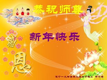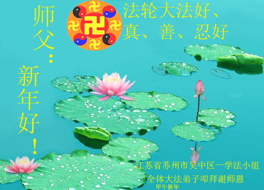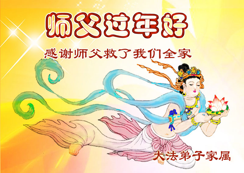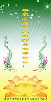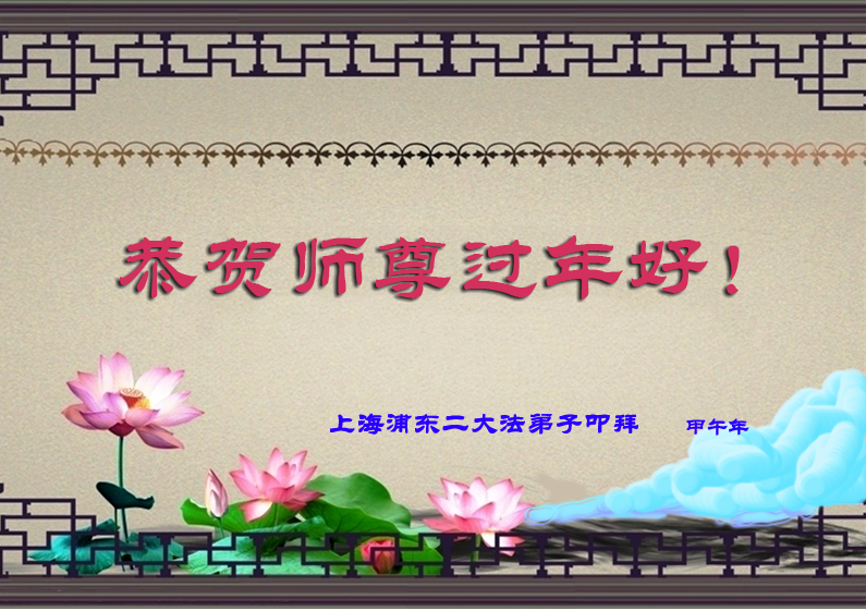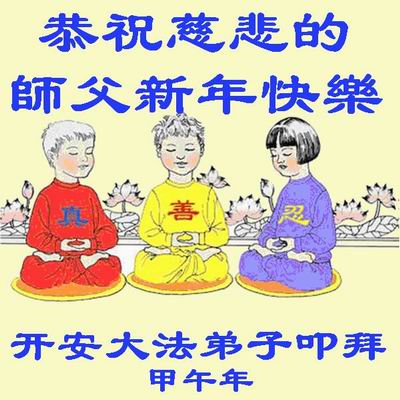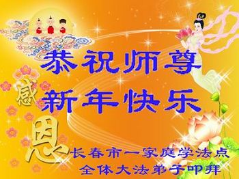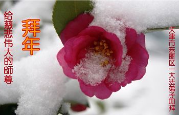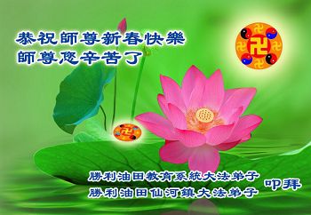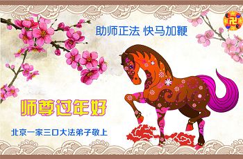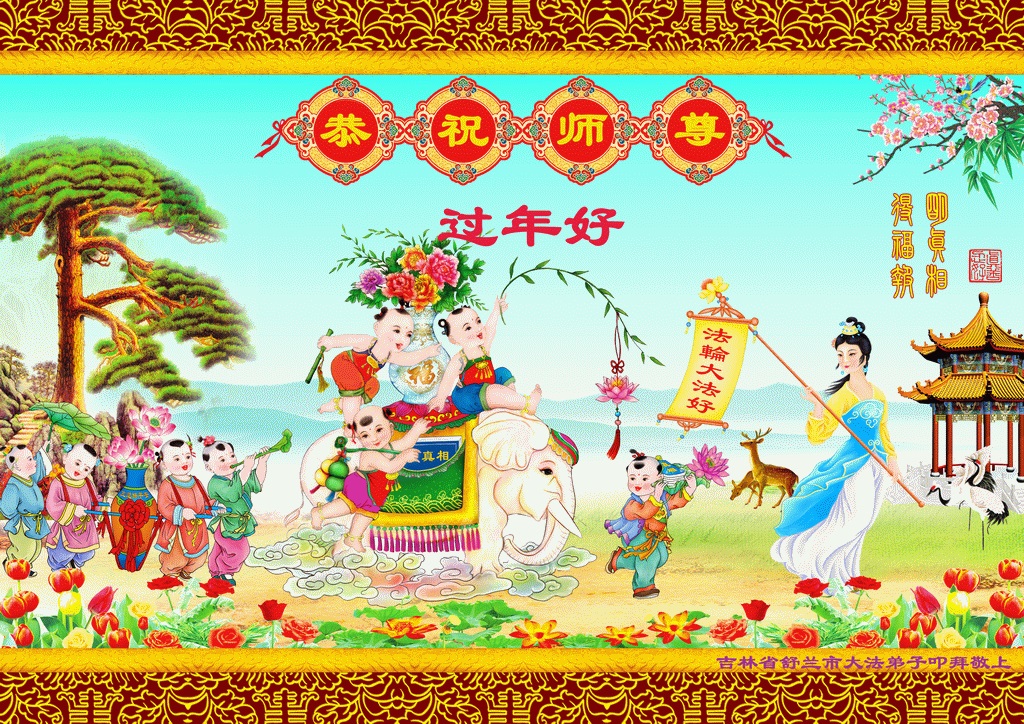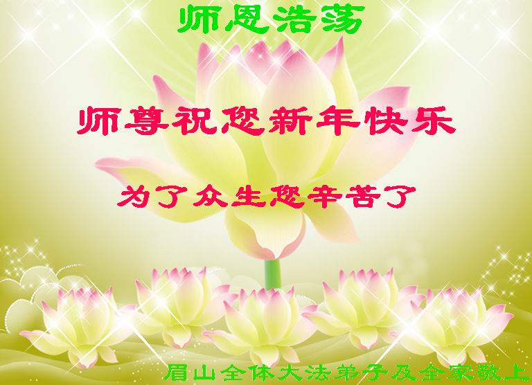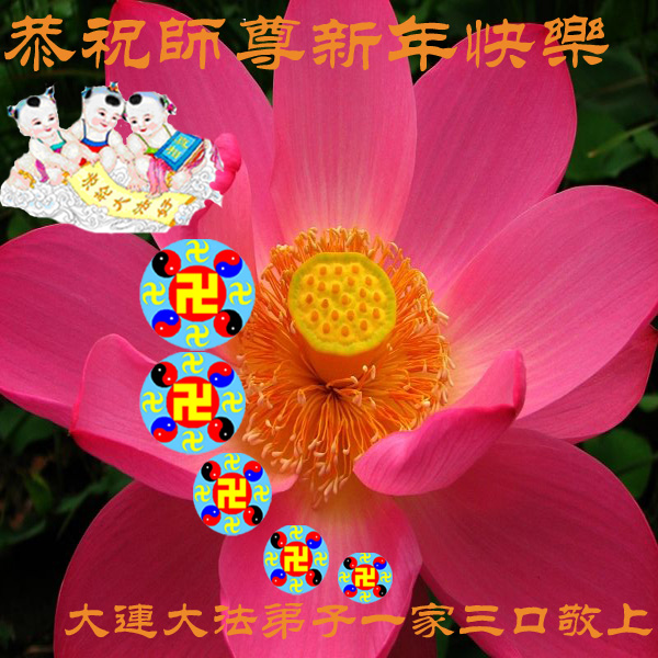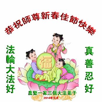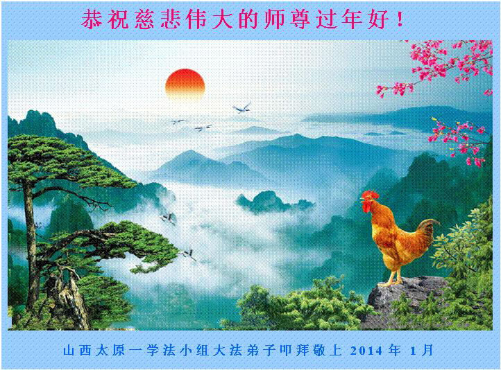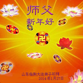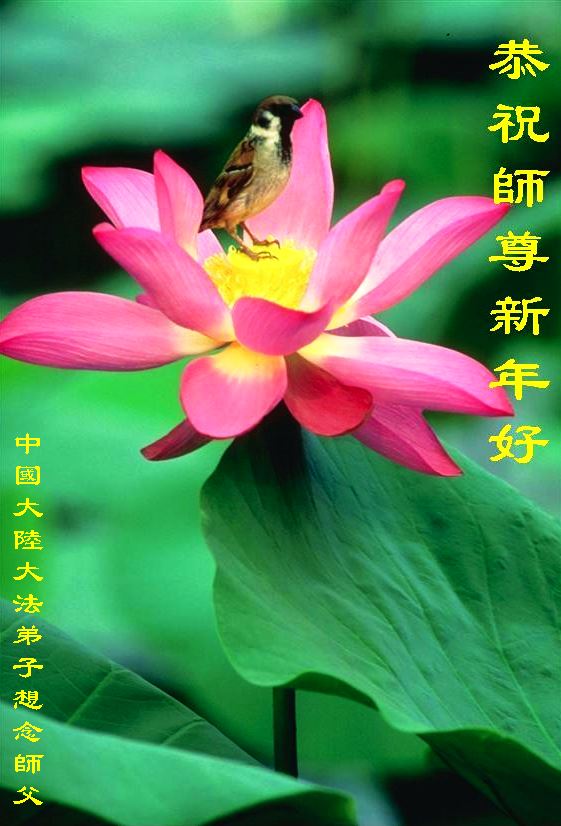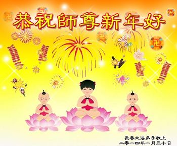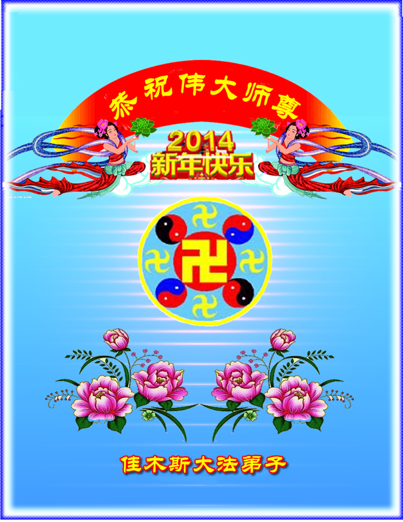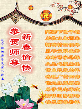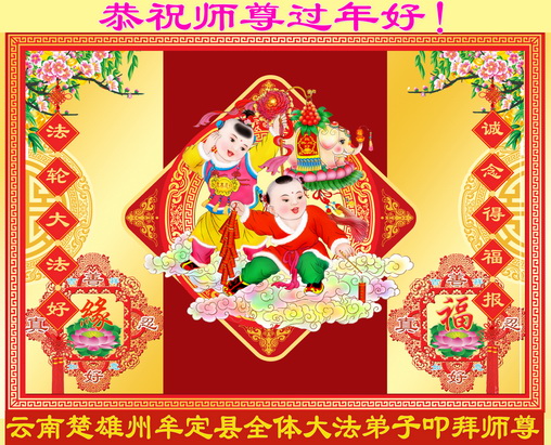 中国传统大年来到了,弟子恭祝师尊新年快乐!听人说,耶稣讲过税吏最难度。在这复杂的环境里我们俩位大法弟子一定遵照师尊的教诲,尽最大努力多救人!同时代表我妻子及女儿向慈悲伟大的师父叩谢救度之恩,在正法的最后时刻,我们一定以法为师,做好三件事,继续多救人,圆满随师还。