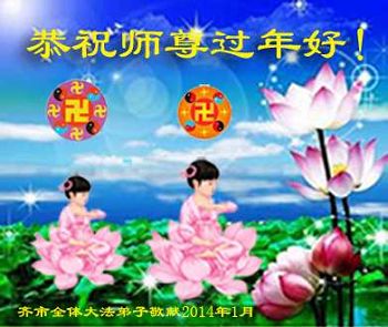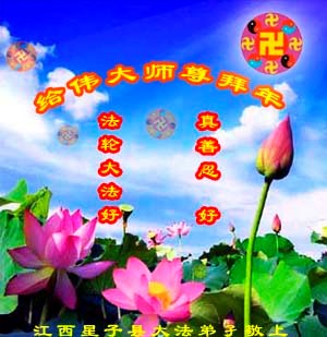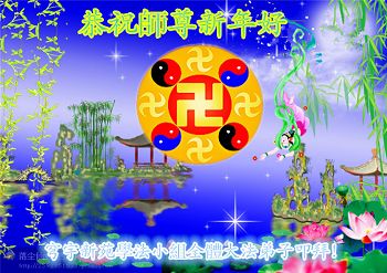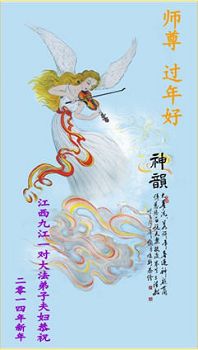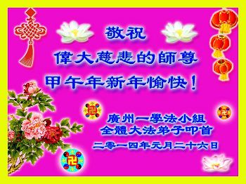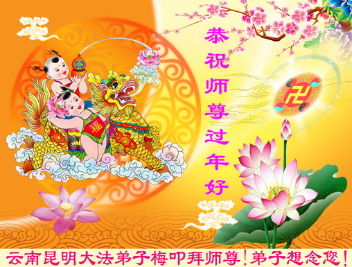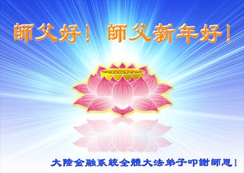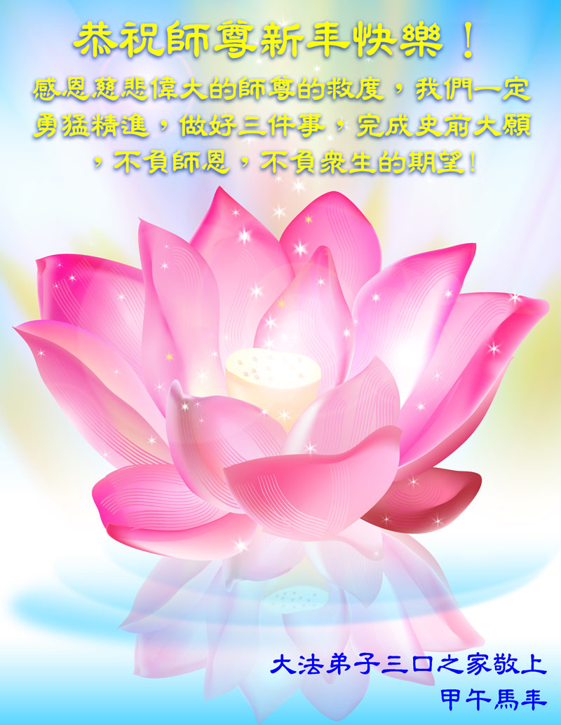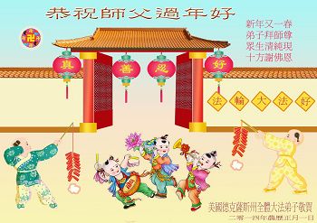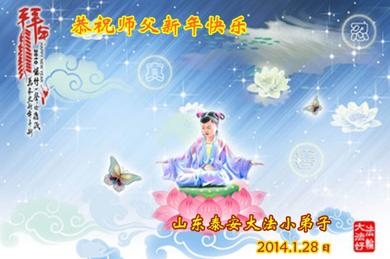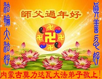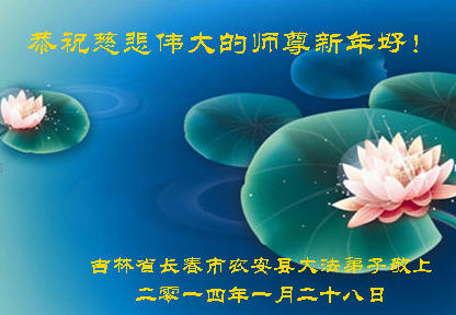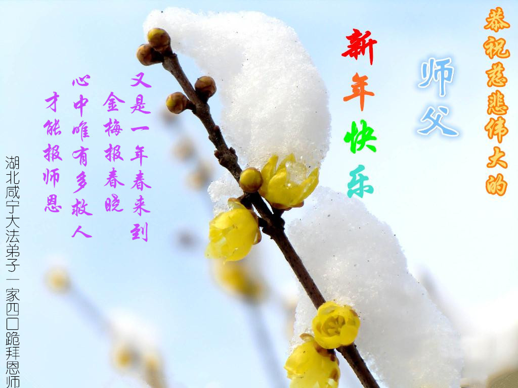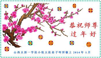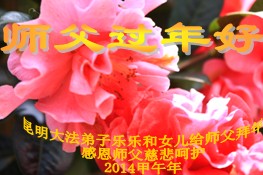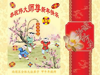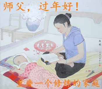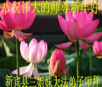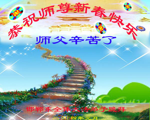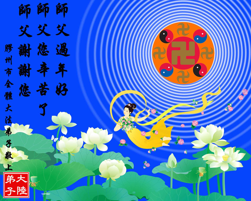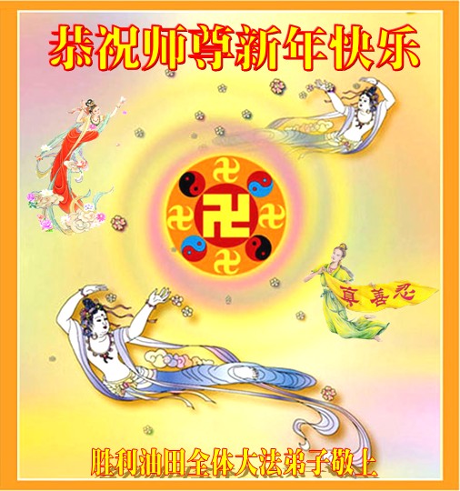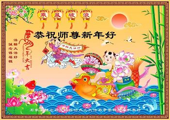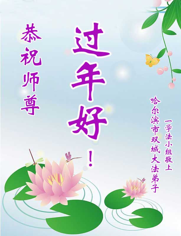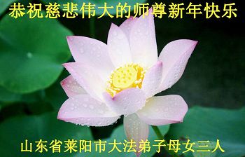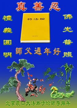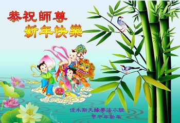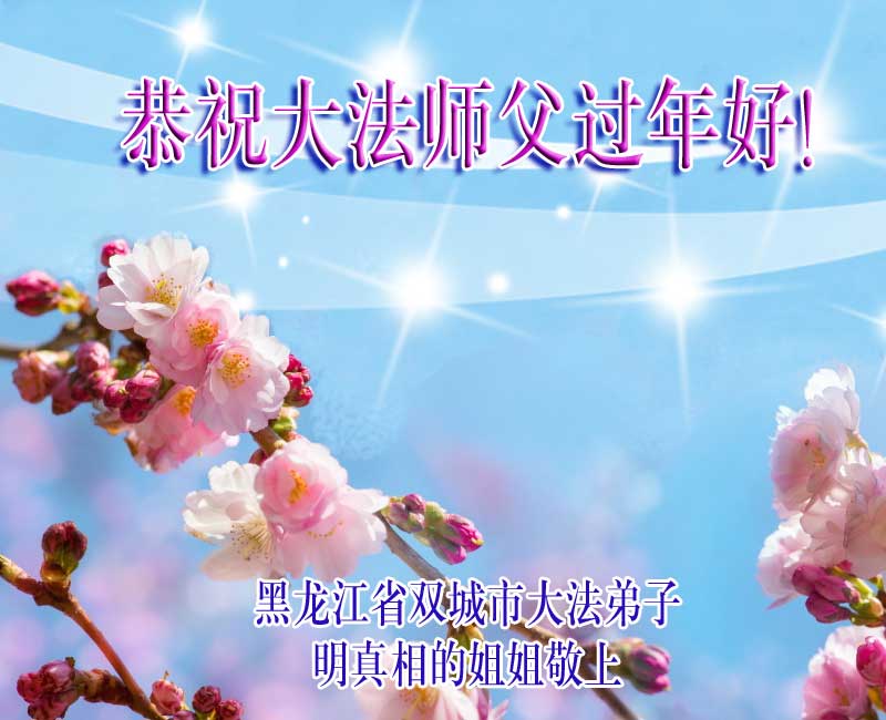中国传统大年来到了,弟子恭祝师尊新年快乐!听人说,耶稣讲过税吏最难度。在这复杂的环境里我们俩位大法弟子一定遵照师尊的教诲,尽最大努力多救人!同时代表我妻子及女儿向慈悲伟大的师父叩谢救度之恩,在正法的最后时刻,我们一定以法为师,做好三件事,继续多救人,圆满随师还。