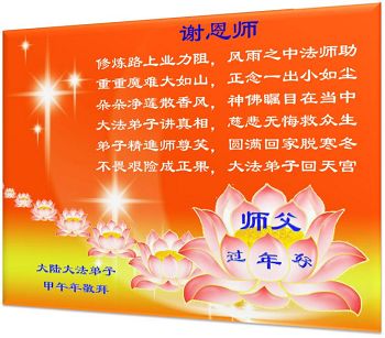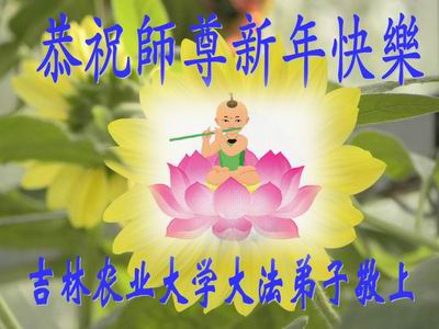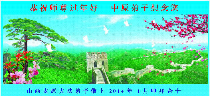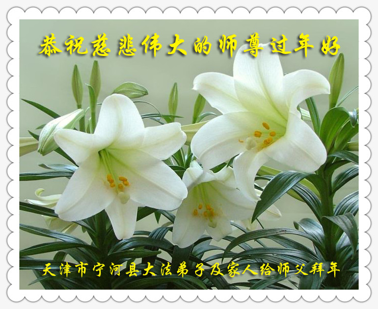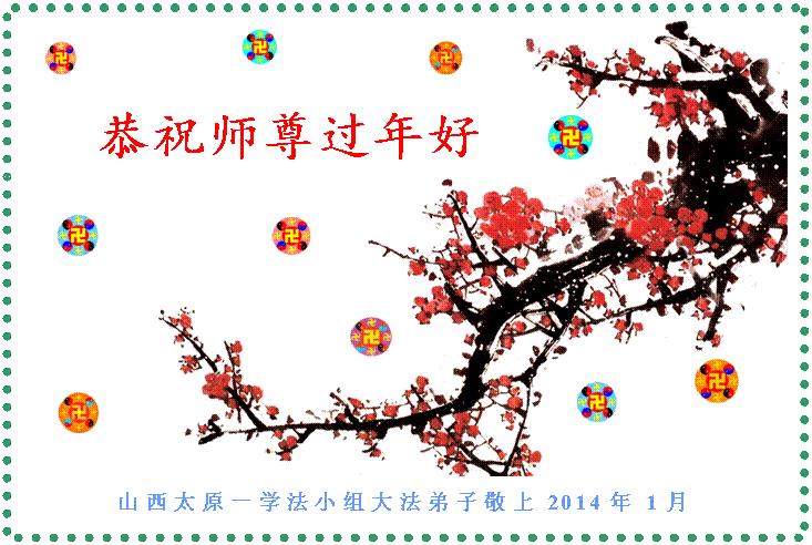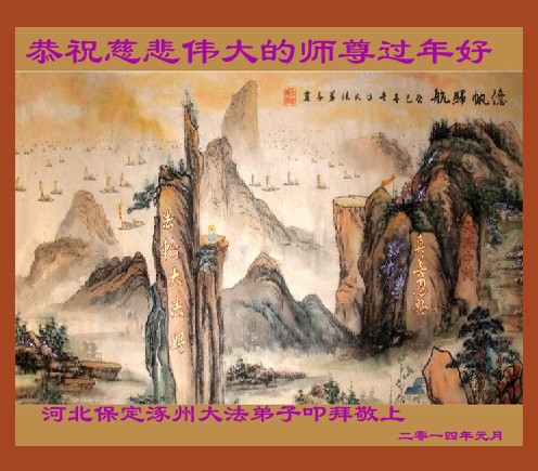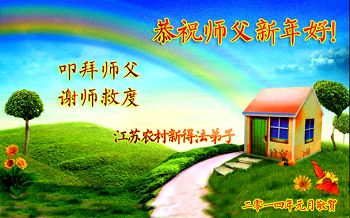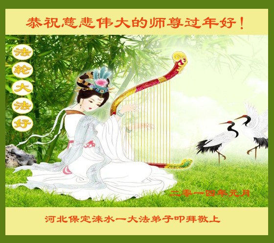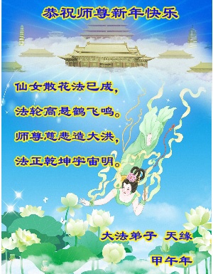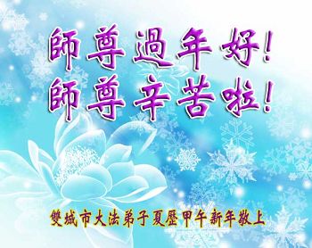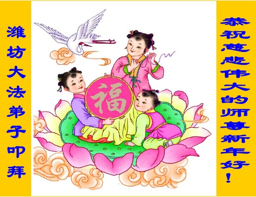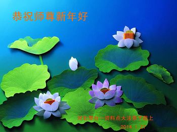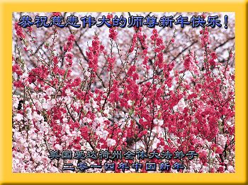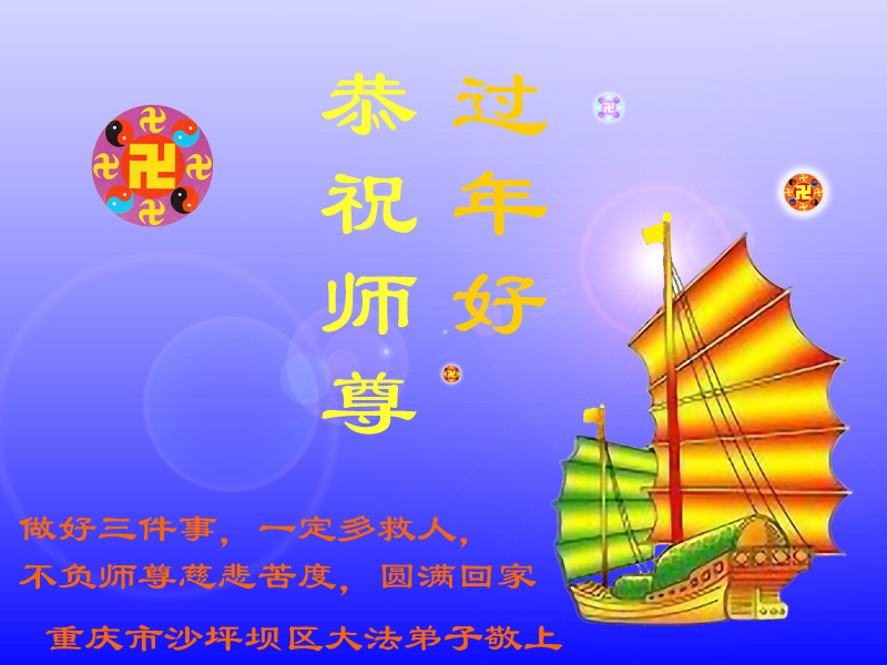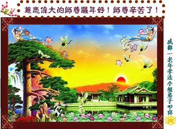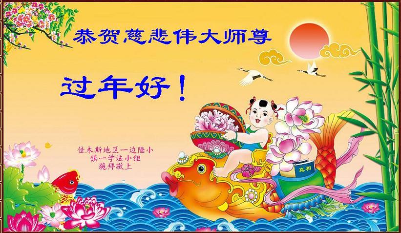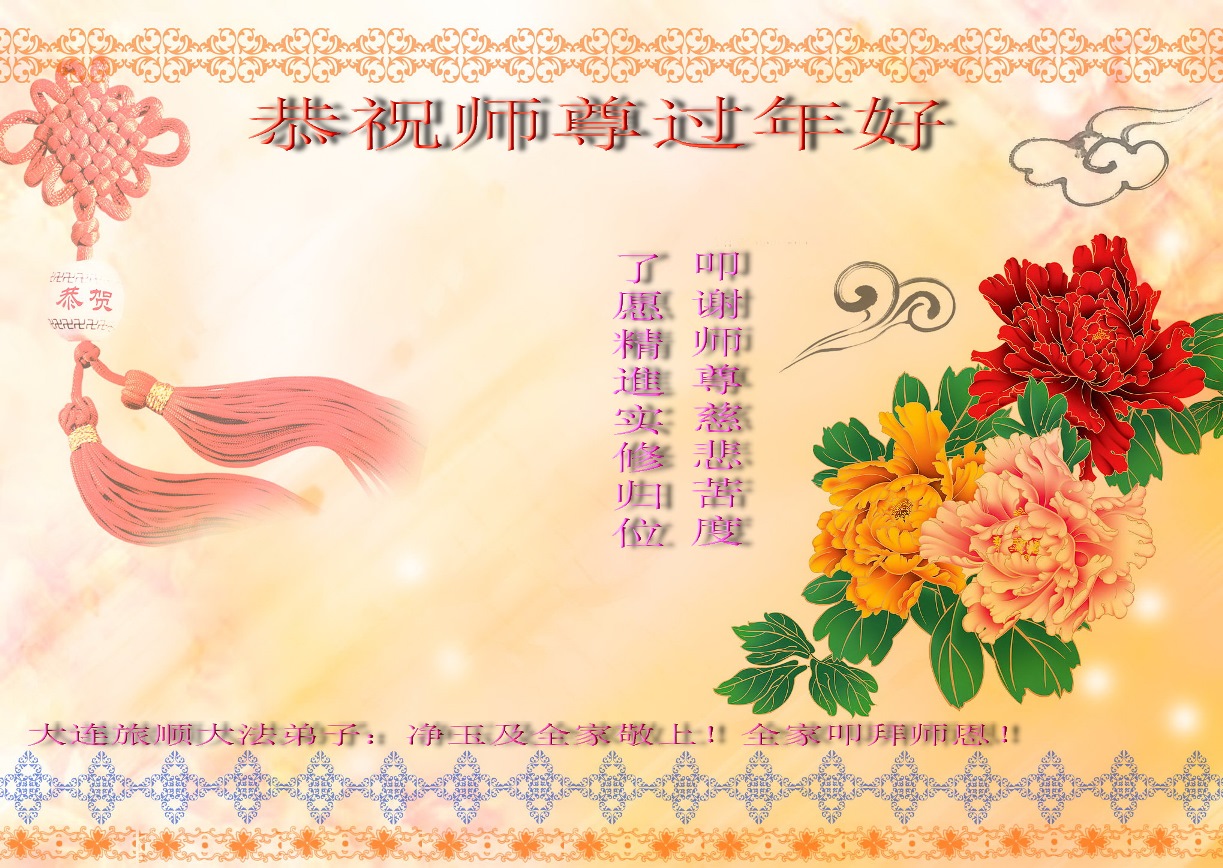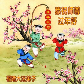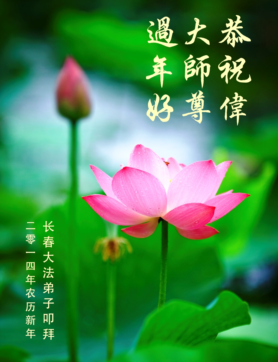 中国传统大年来到了,弟子恭祝师尊新年快乐!听人说,耶稣讲过税吏最难度。在这复杂的环境里我们俩位大法弟子一定遵照师尊的教诲,尽最大努力多救人!同时代表我妻子及女儿向慈悲伟大的师父叩谢救度之恩,在正法的最后时刻,我们一定以法为师,做好三件事,继续多救人,圆满随师还。