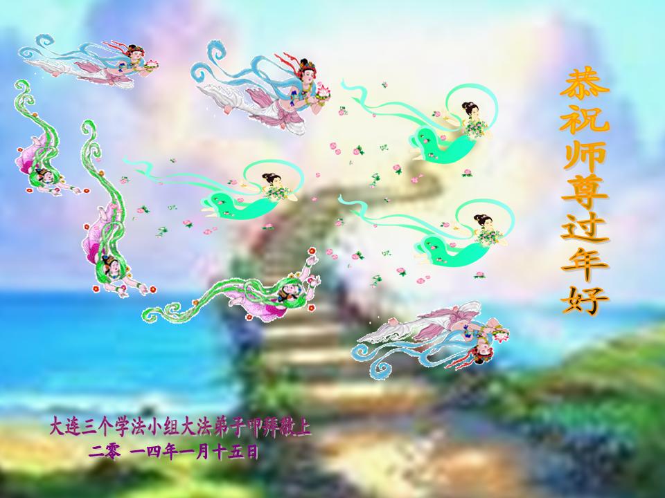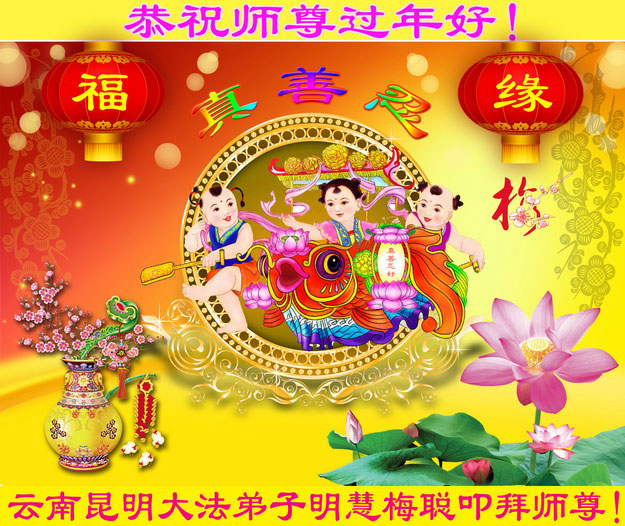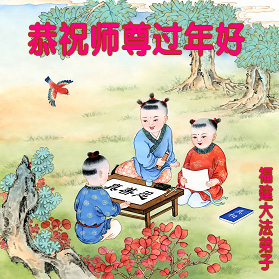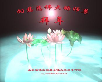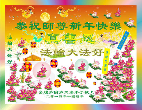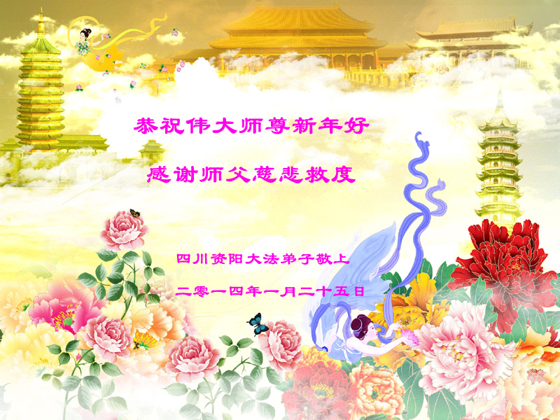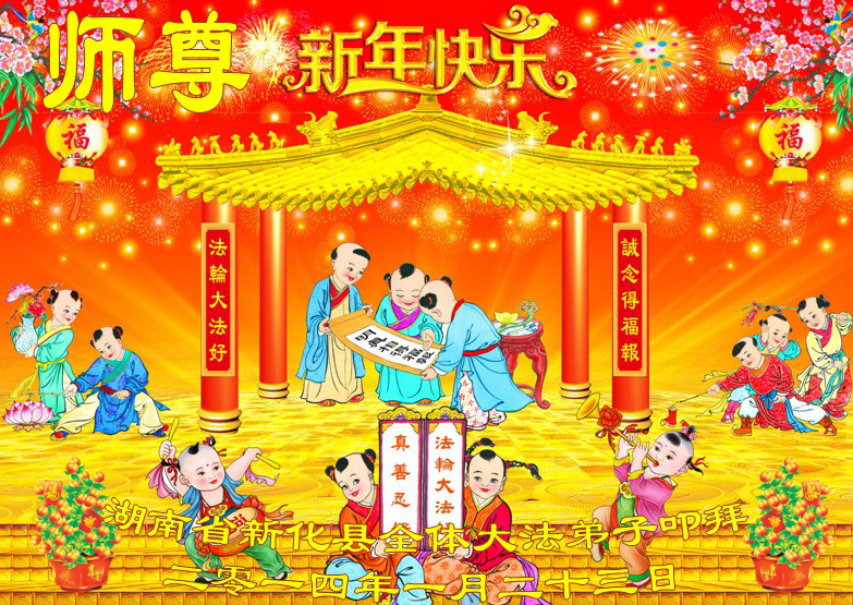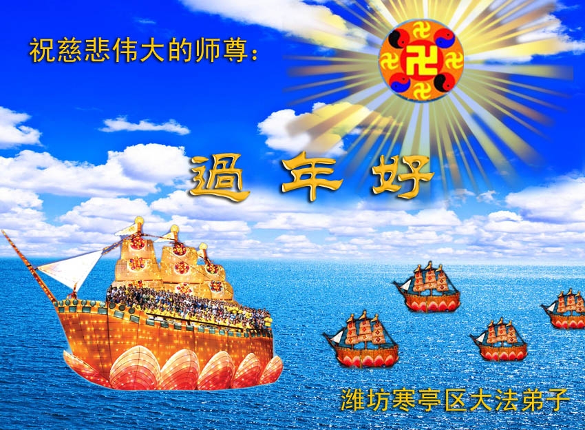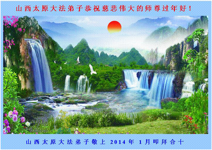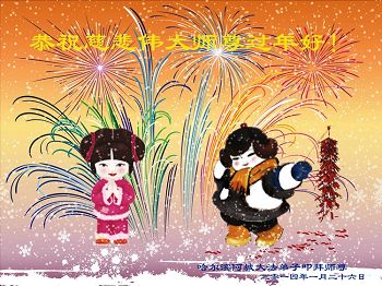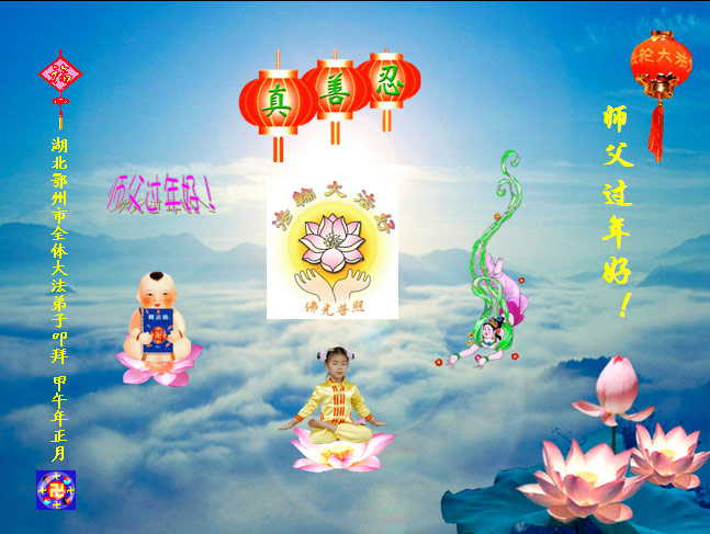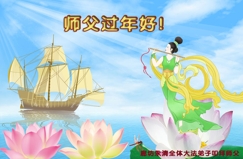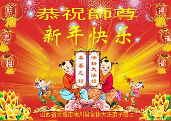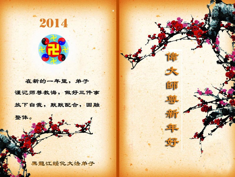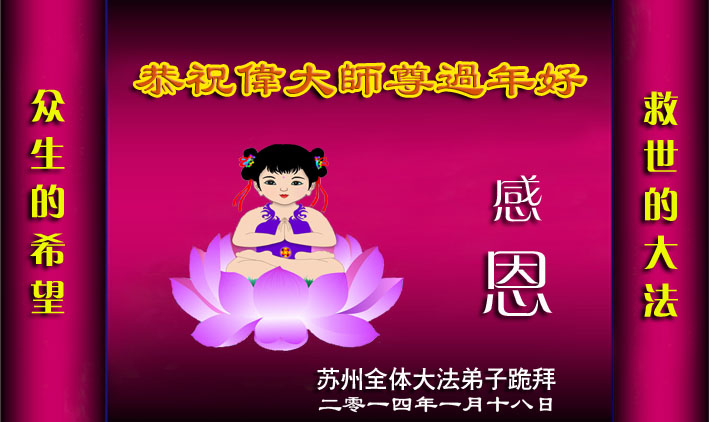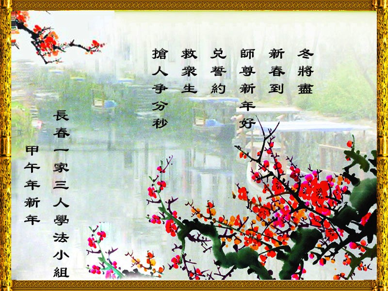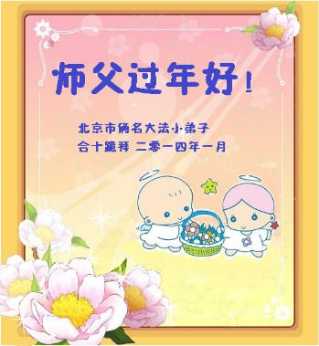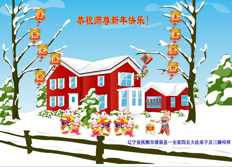 中国传统大年来到了,弟子恭祝师尊新年快乐!听人说,耶稣讲过税吏最难度。在这复杂的环境里我们俩位大法弟子一定遵照师尊的教诲,尽最大努力多救人!同时代表我妻子及女儿向慈悲伟大的师父叩谢救度之恩,在正法的最后时刻,我们一定以法为师,做好三件事,继续多救人,圆满随师还。