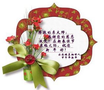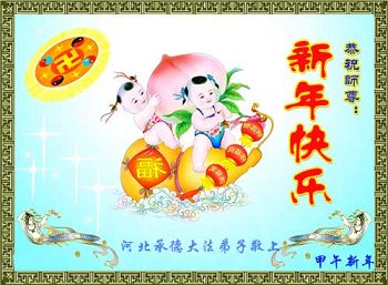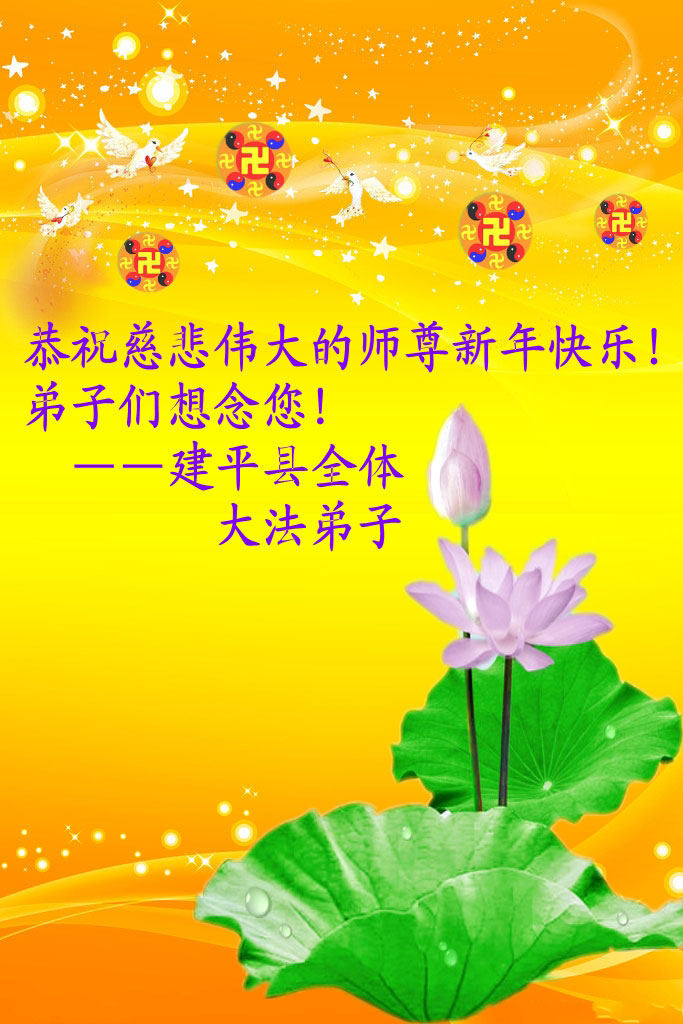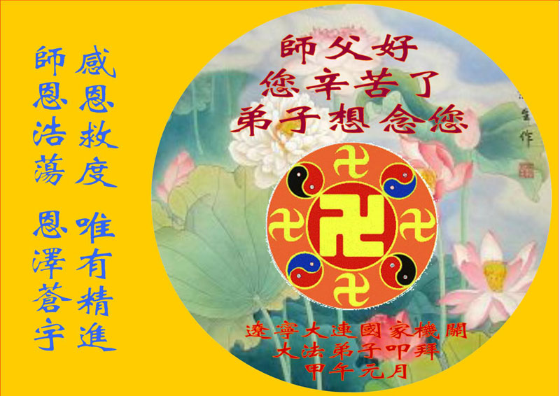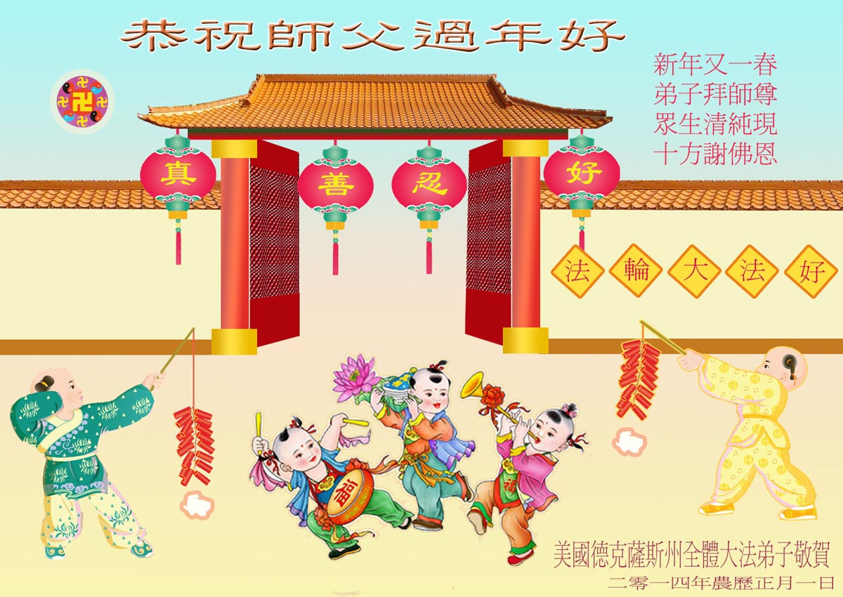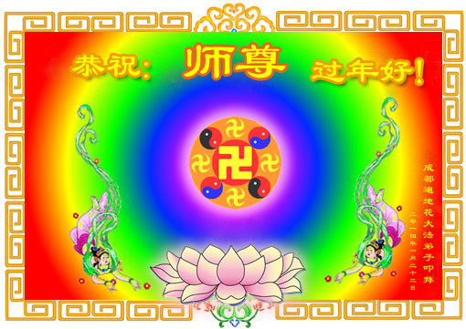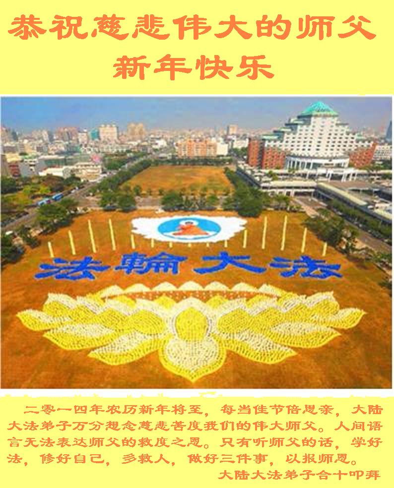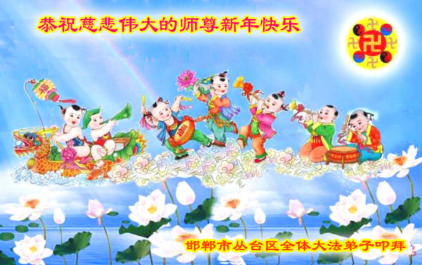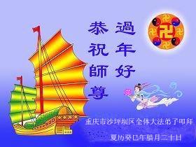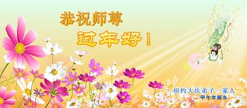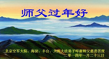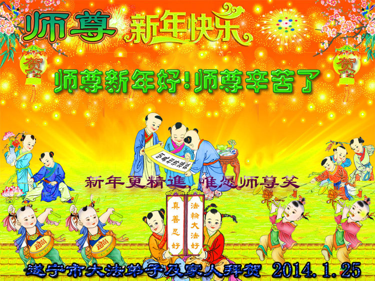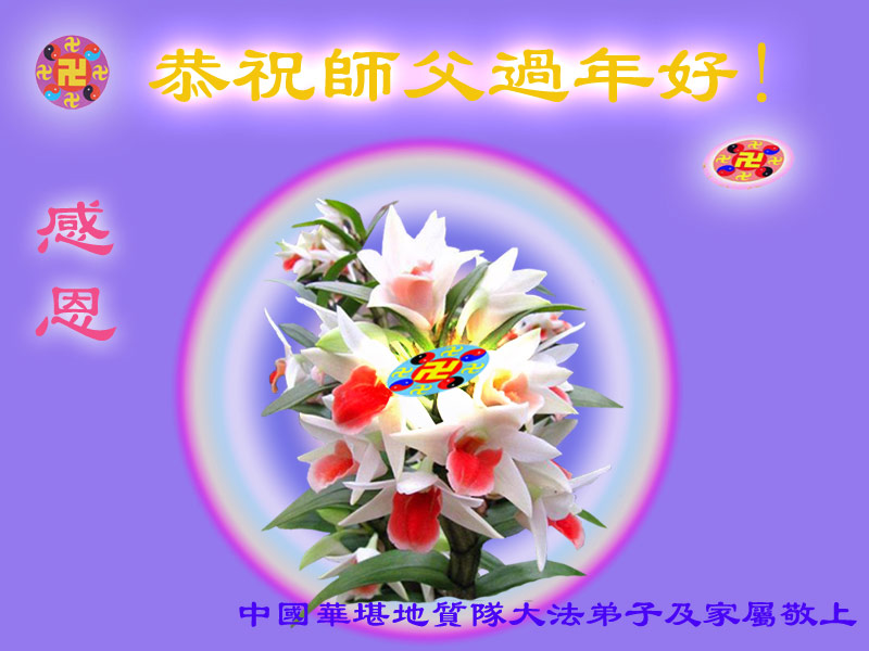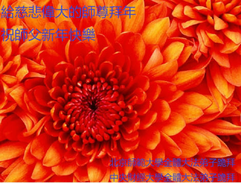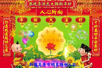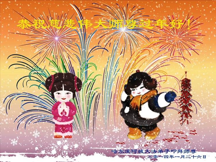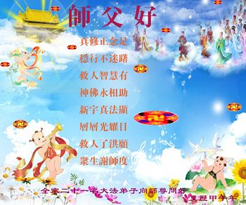 中国传统大年来到了,弟子恭祝师尊新年快乐!听人说,耶稣讲过税吏最难度。在这复杂的环境里我们俩位大法弟子一定遵照师尊的教诲,尽最大努力多救人!同时代表我妻子及女儿向慈悲伟大的师父叩谢救度之恩,在正法的最后时刻,我们一定以法为师,做好三件事,继续多救人,圆满随师还。