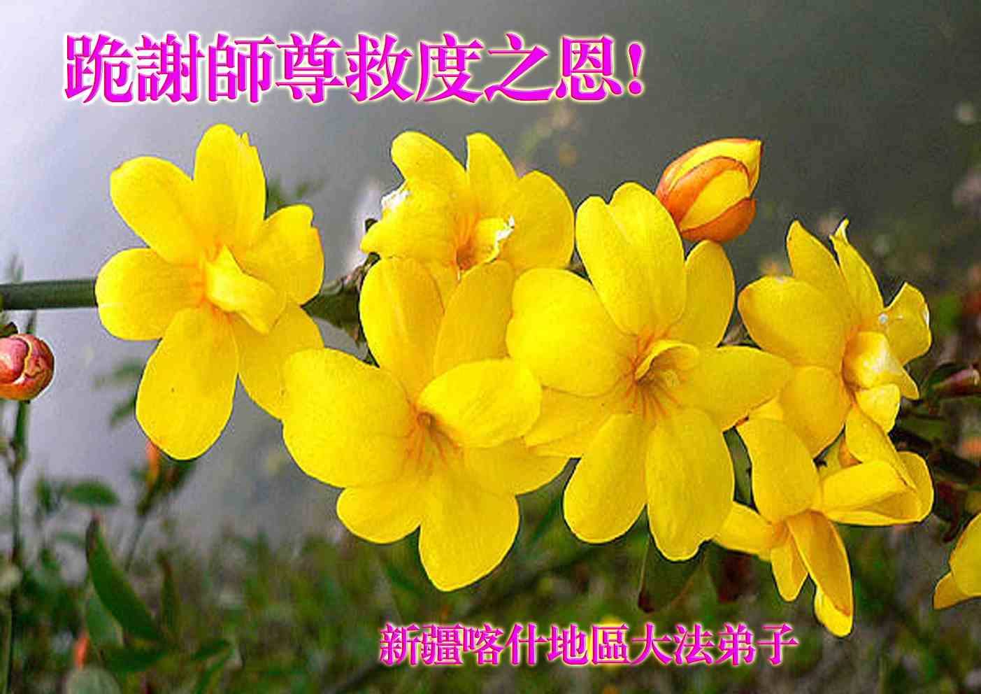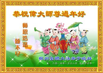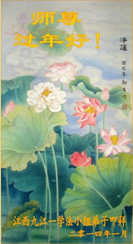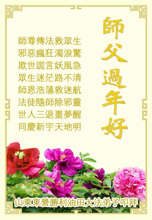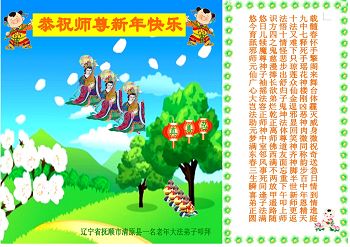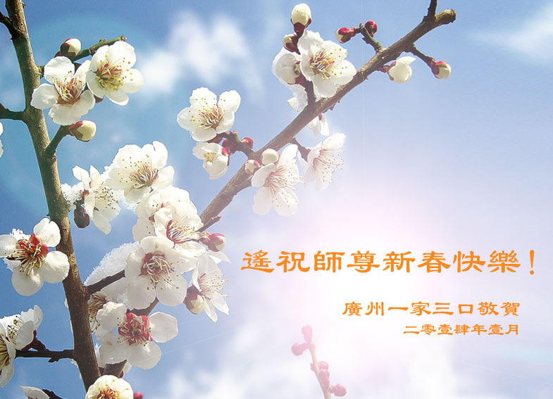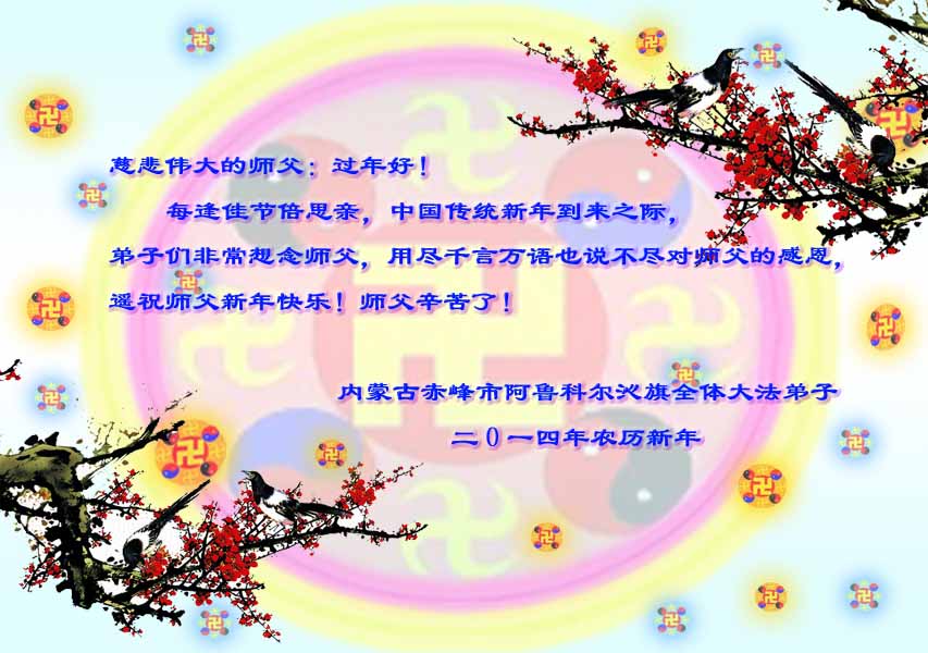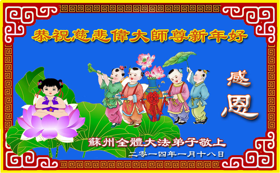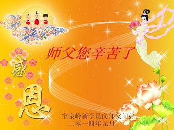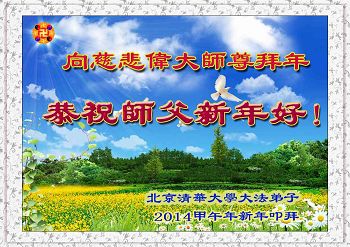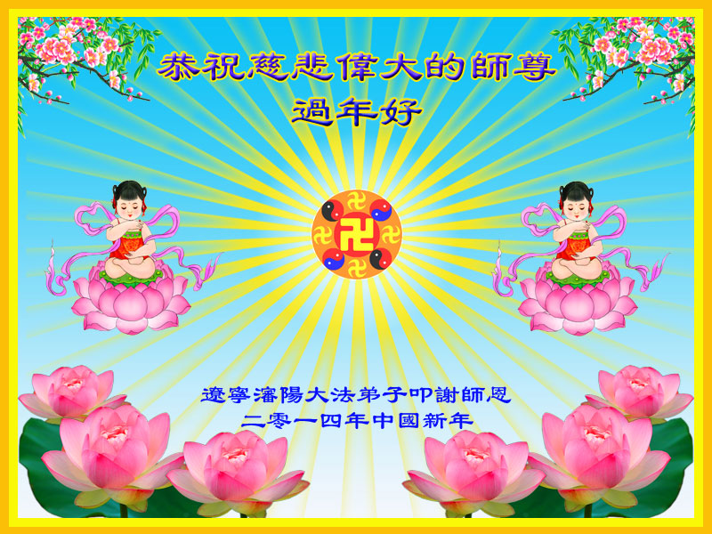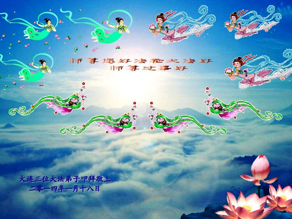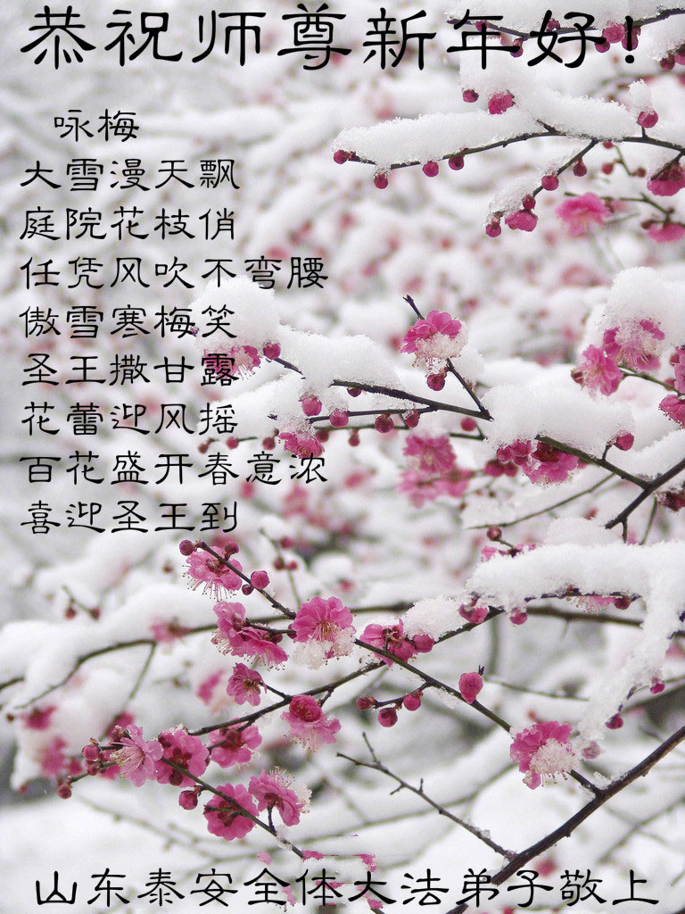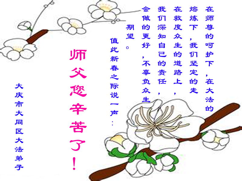 中国传统大年来到了,弟子恭祝师尊新年快乐!听人说,耶稣讲过税吏最难度。在这复杂的环境里我们俩位大法弟子一定遵照师尊的教诲,尽最大努力多救人!同时代表我妻子及女儿向慈悲伟大的师父叩谢救度之恩,在正法的最后时刻,我们一定以法为师,做好三件事,继续多救人,圆满随师还。