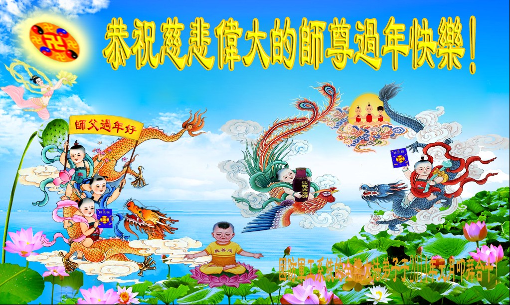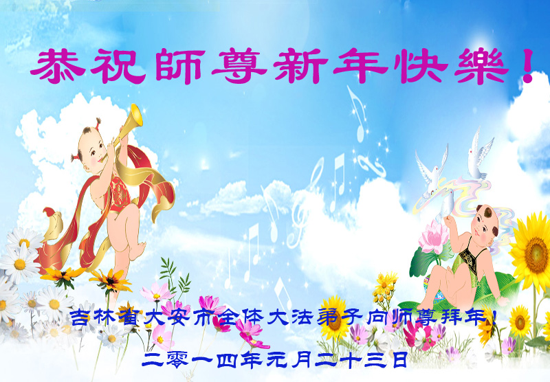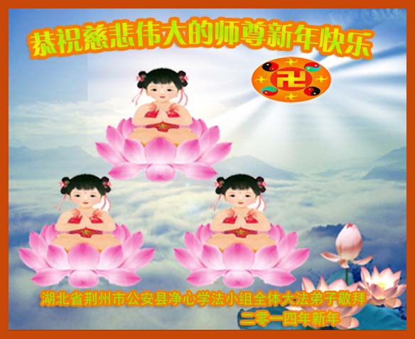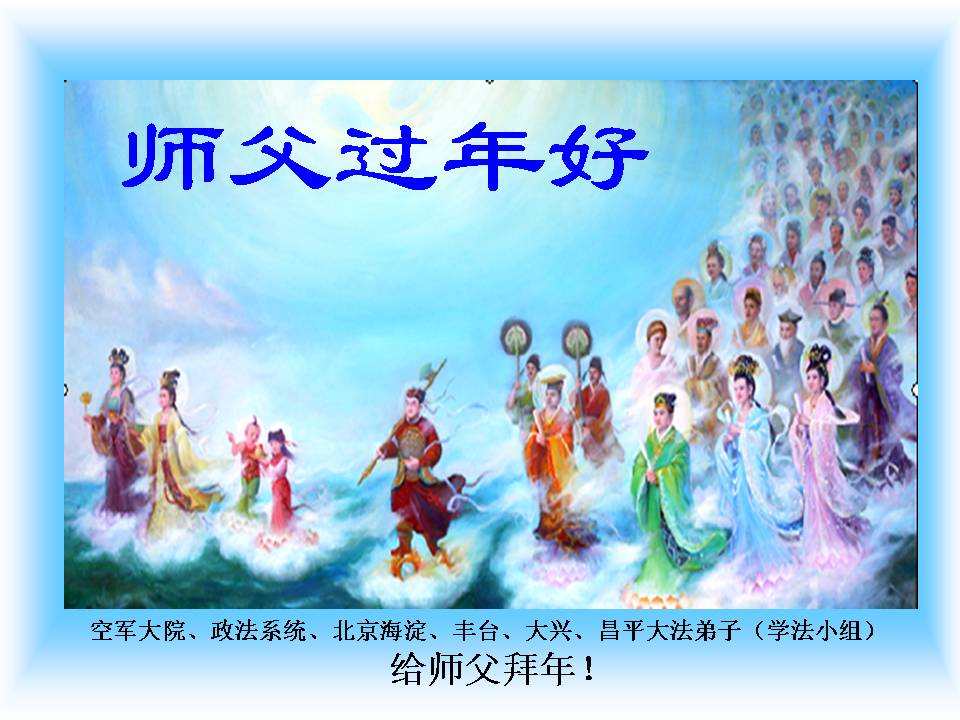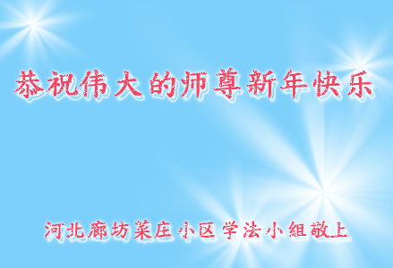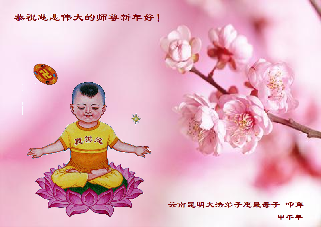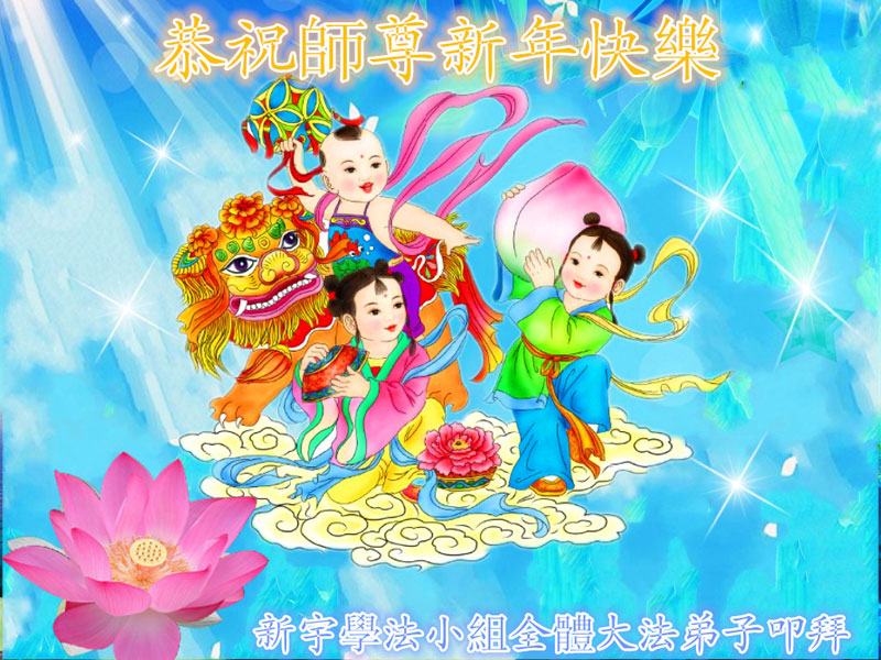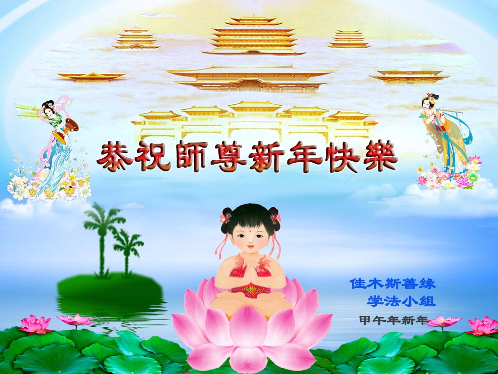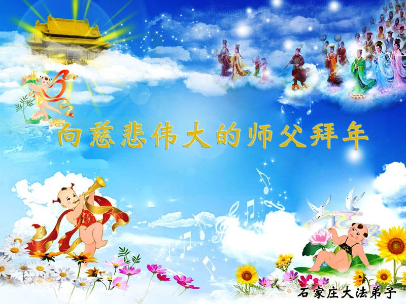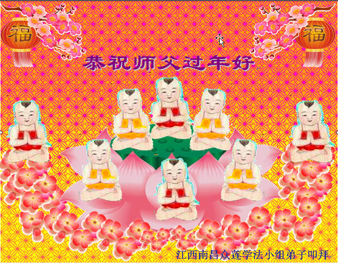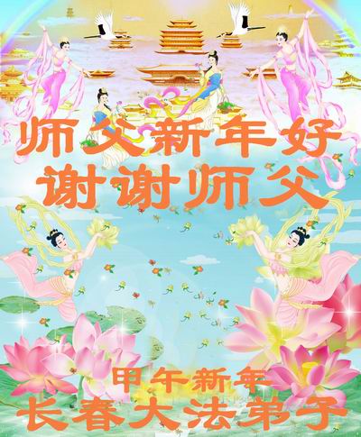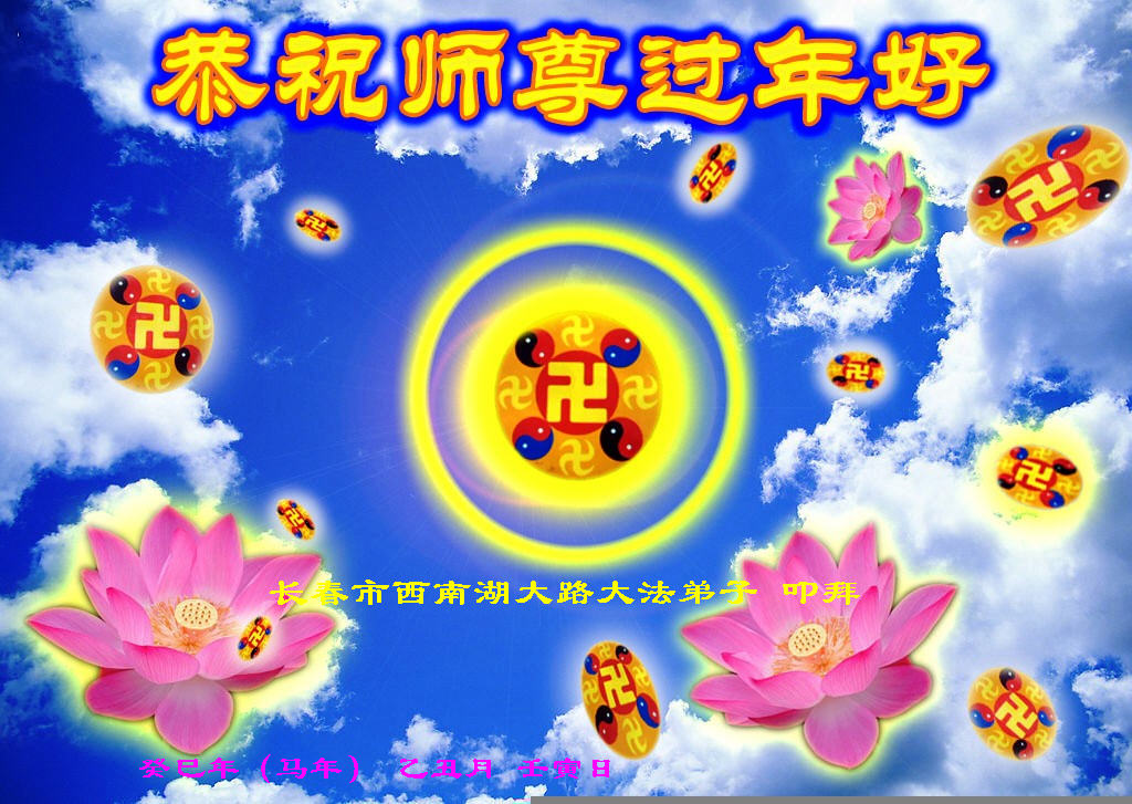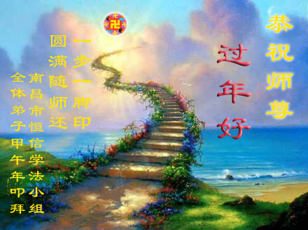 在甲午年新年到来之际,弟子们给师尊拜年了!弟子们按照师尊的要求,坚持多学法、学好法、用心学法,认真做好三件事。在师尊的慈悲呵护下,正念正行又平稳的度过了一年。在新的一年里,我们要更加努力的多学法,学好法,整体配合好,遇到问题向内找,正念正行做好三件事,完成我们的史前大愿,随师尊回家。