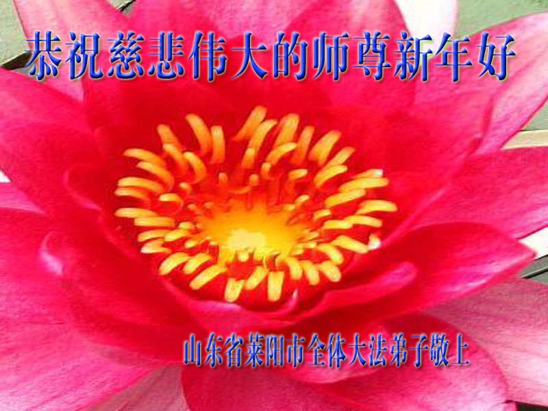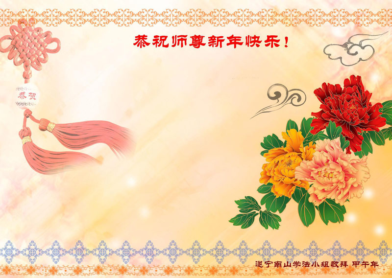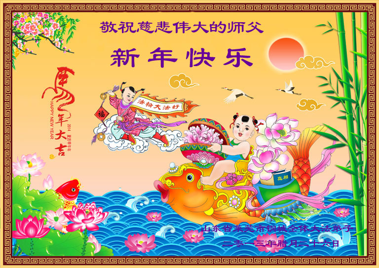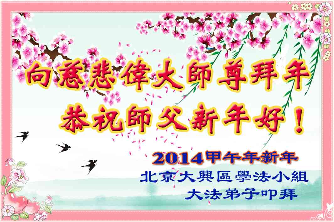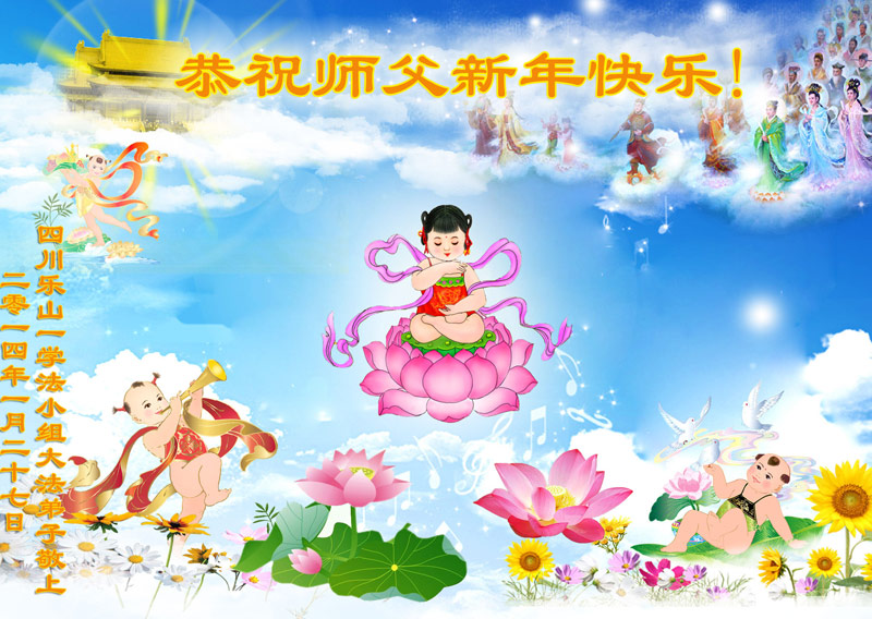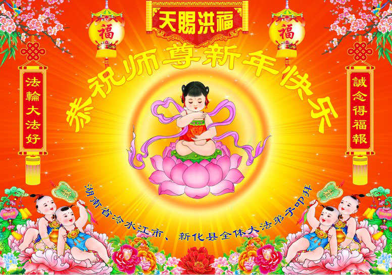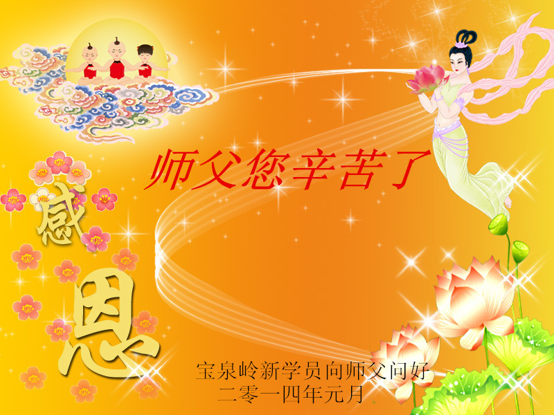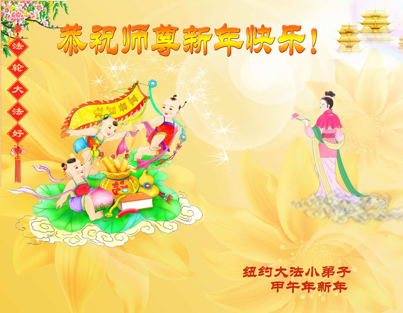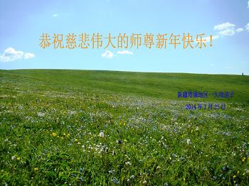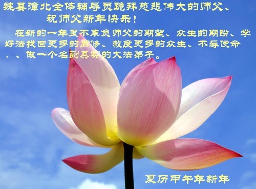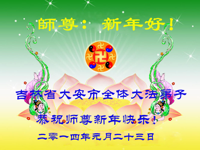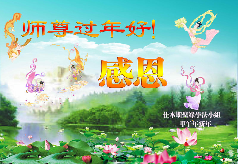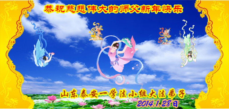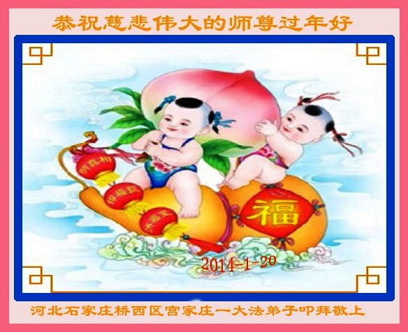 在甲午年新年到来之际,弟子们给师尊拜年了!弟子们按照师尊的要求,坚持多学法、学好法、用心学法,认真做好三件事。在师尊的慈悲呵护下,正念正行又平稳的度过了一年。在新的一年里,我们要更加努力的多学法,学好法,整体配合好,遇到问题向内找,正念正行做好三件事,完成我们的史前大愿,随师尊回家。