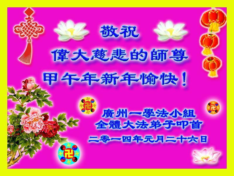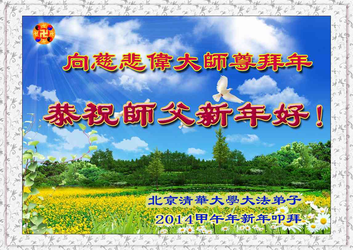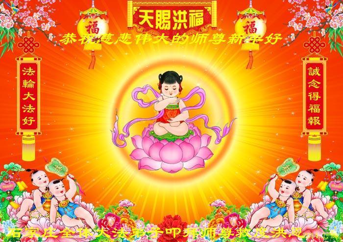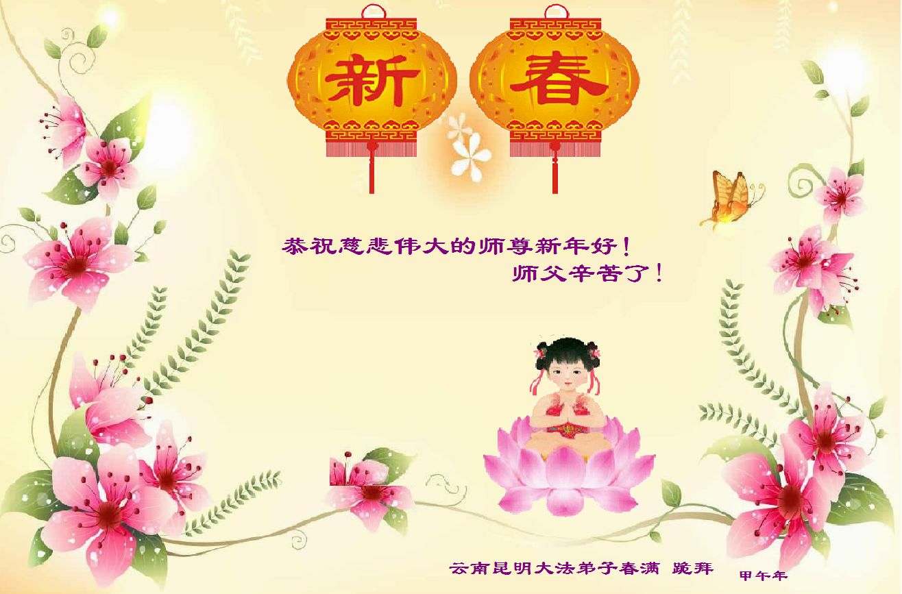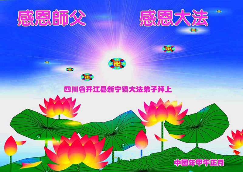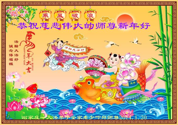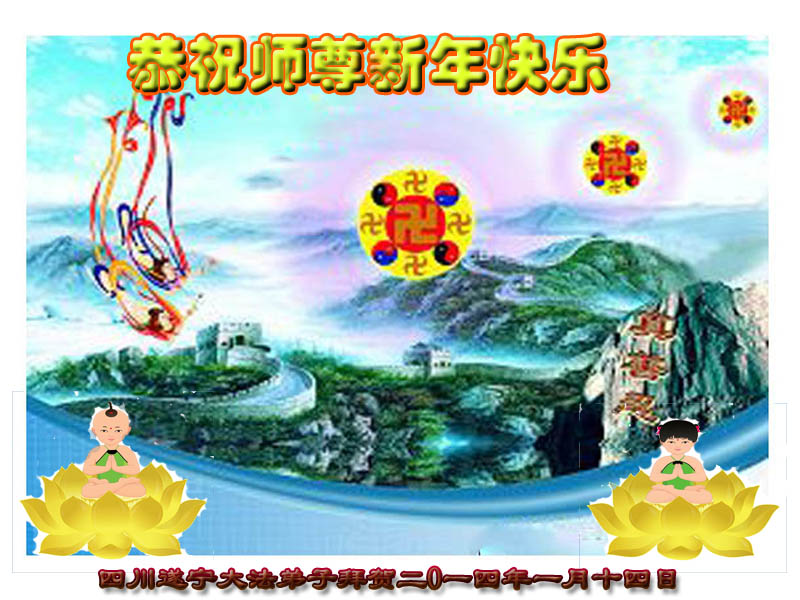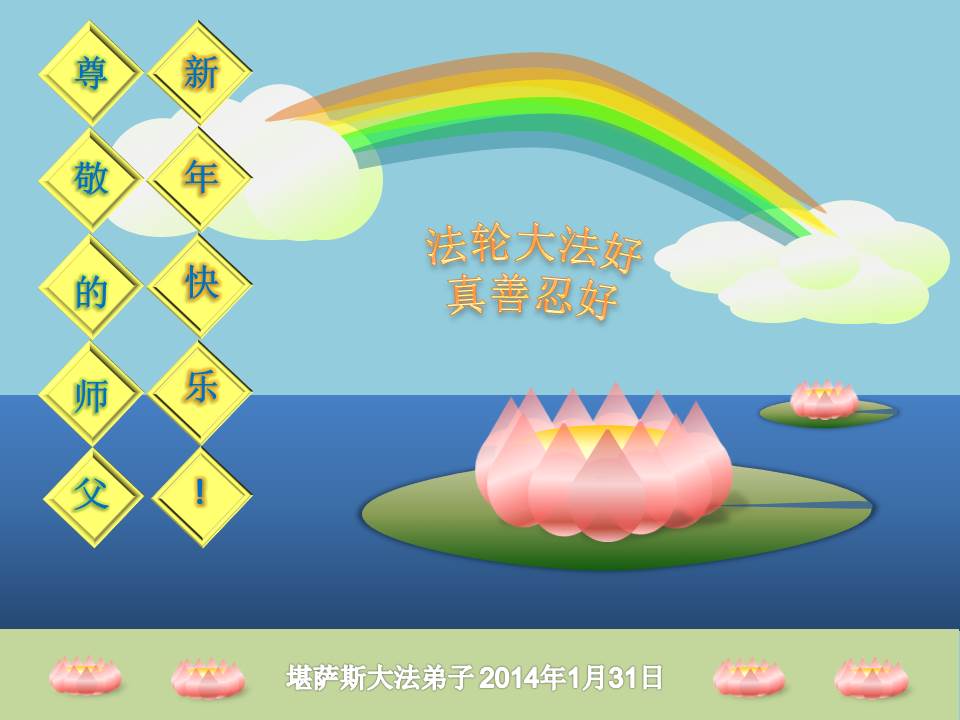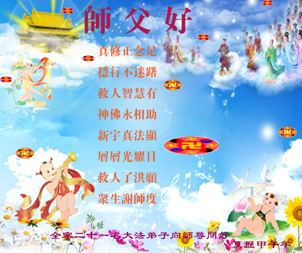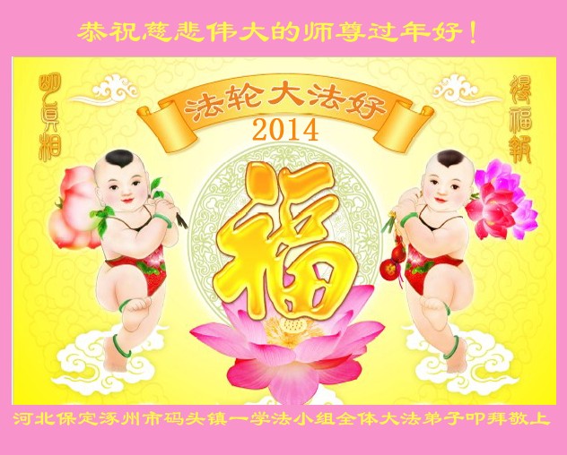 在甲午年新年到来之际,弟子们给师尊拜年了!弟子们按照师尊的要求,坚持多学法、学好法、用心学法,认真做好三件事。在师尊的慈悲呵护下,正念正行又平稳的度过了一年。在新的一年里,我们要更加努力的多学法,学好法,整体配合好,遇到问题向内找,正念正行做好三件事,完成我们的史前大愿,随师尊回家。