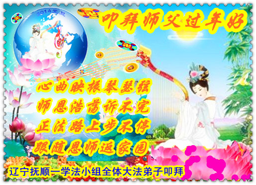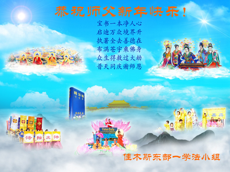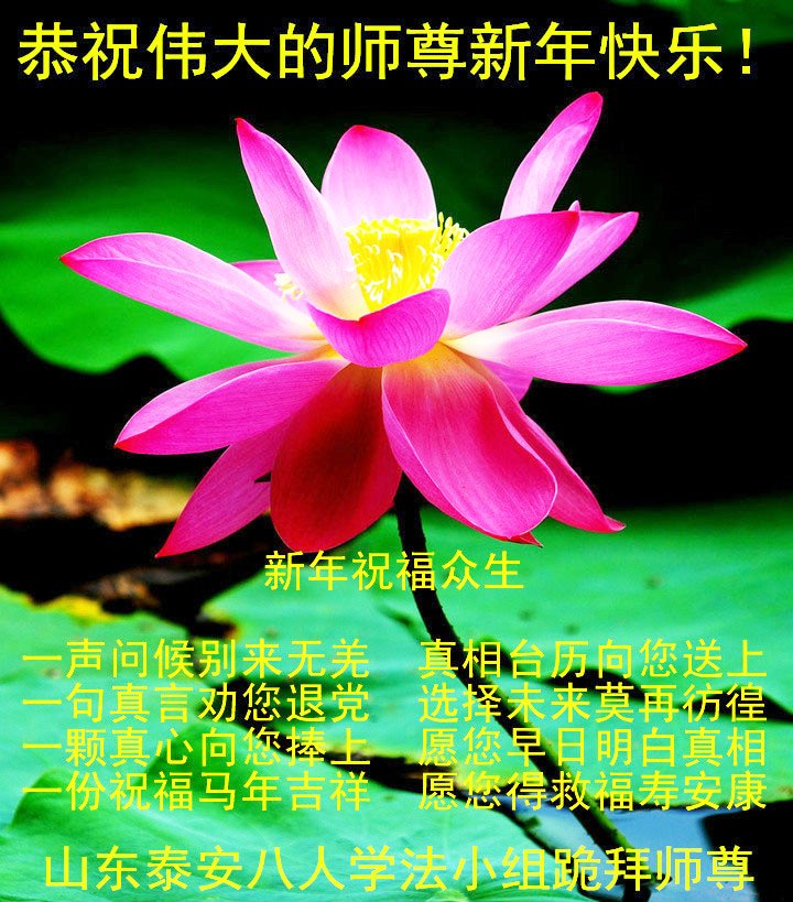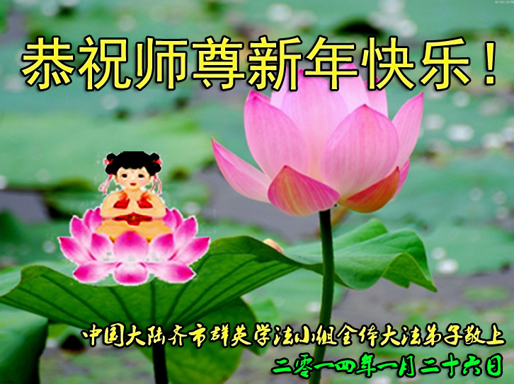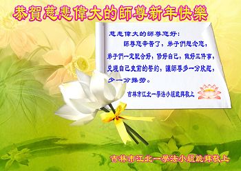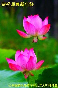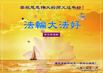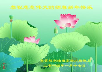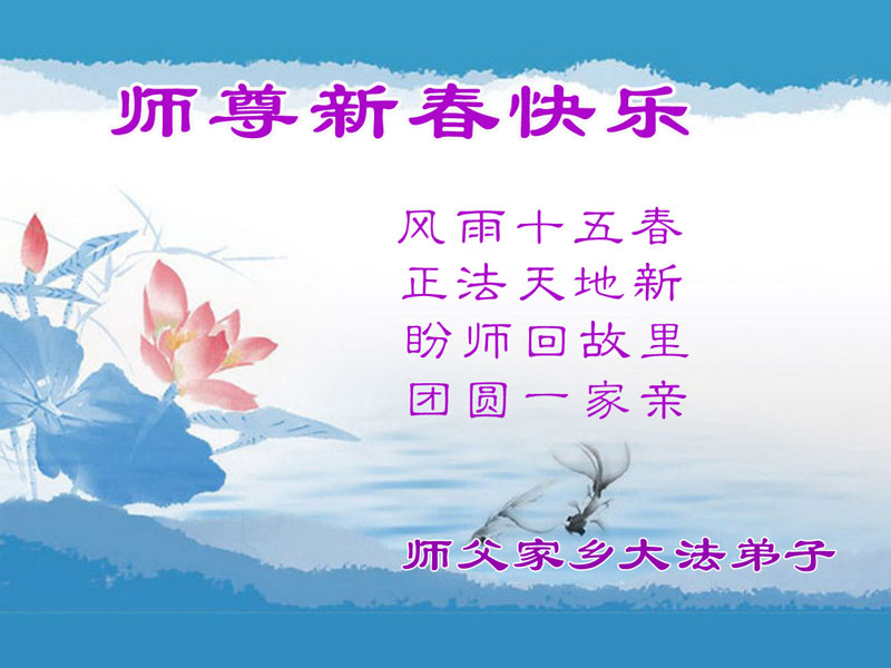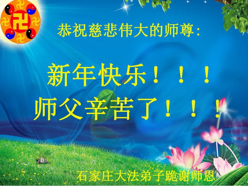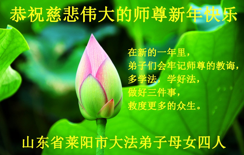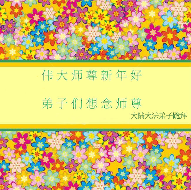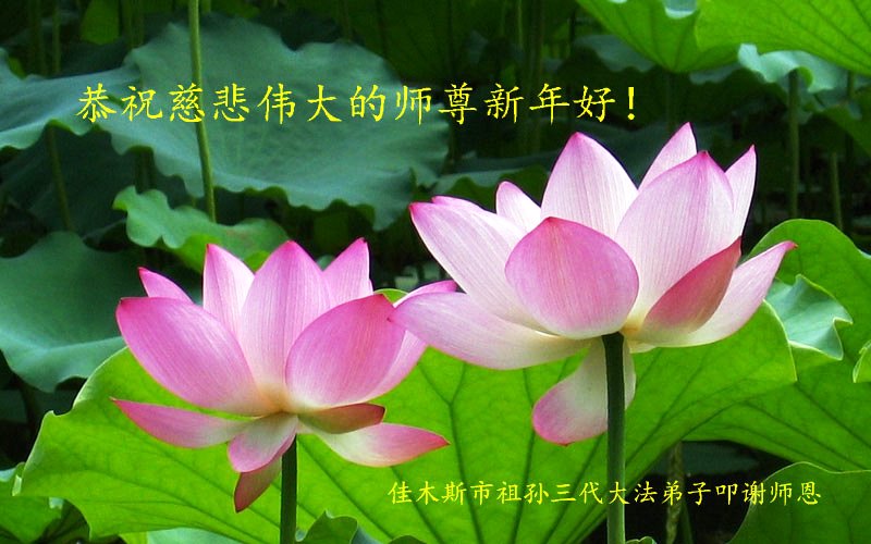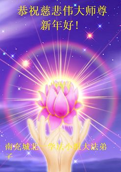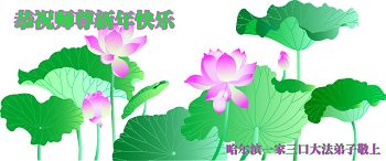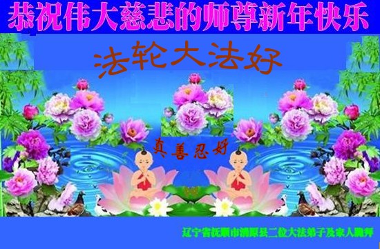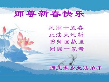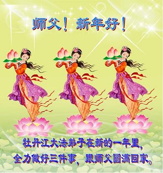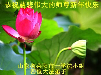 我们夫妻是09年得法的新学员,虽然我们俩在不同环境,但跟师父回家的心是一样的。在新的一年里学好法,做好三件事,修好自己,让师父少操点心,争取赶上正法進程,跟师父回家。我们夫妻跪拜:祝师尊新年快乐!