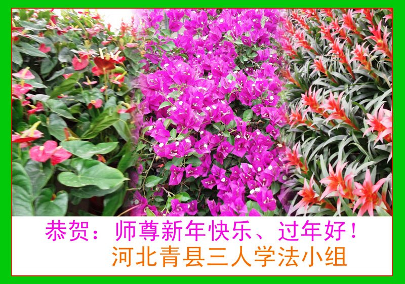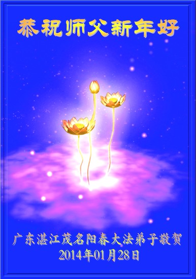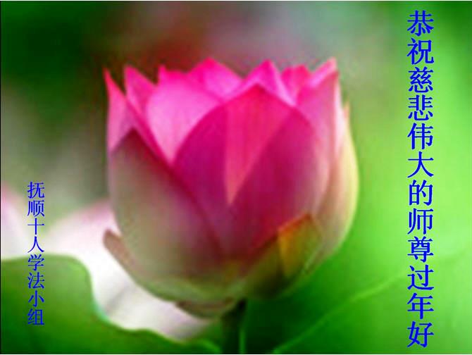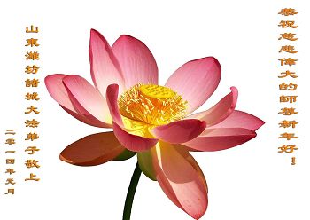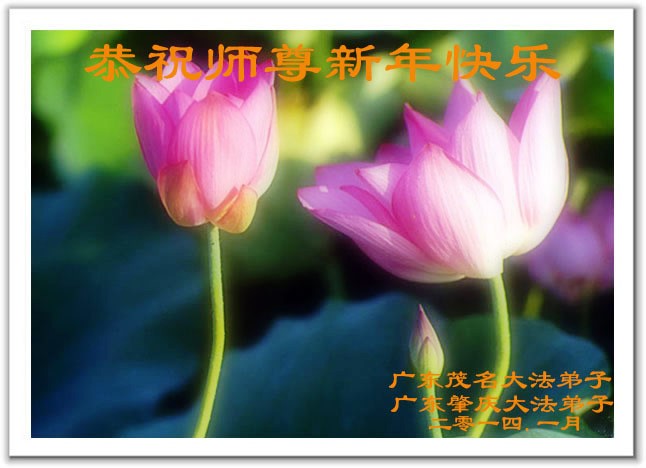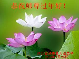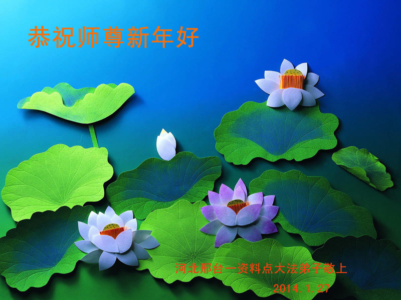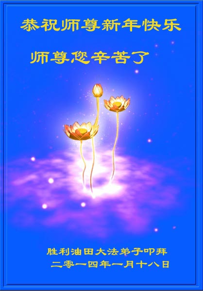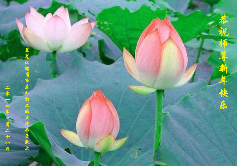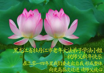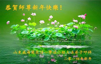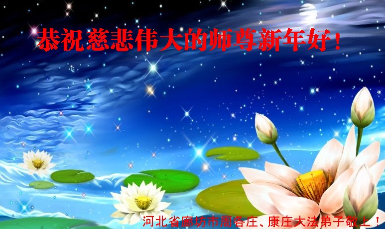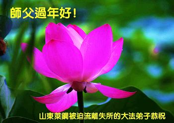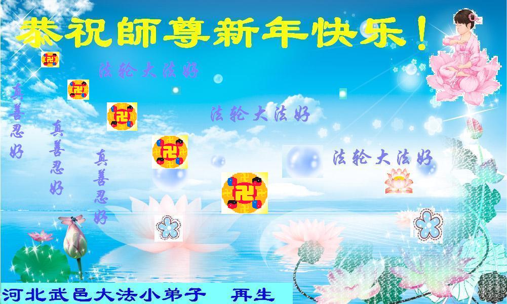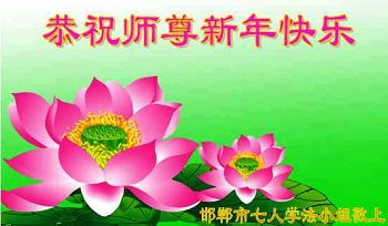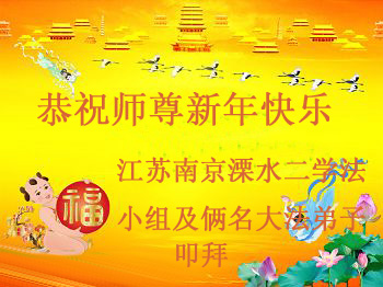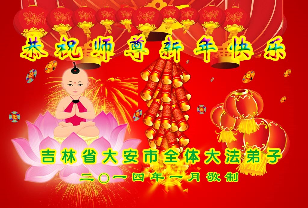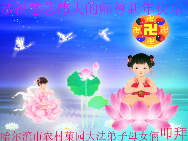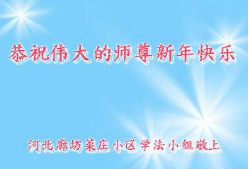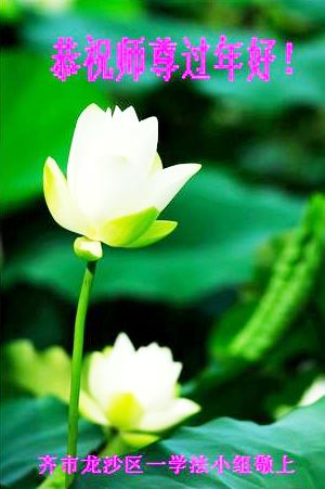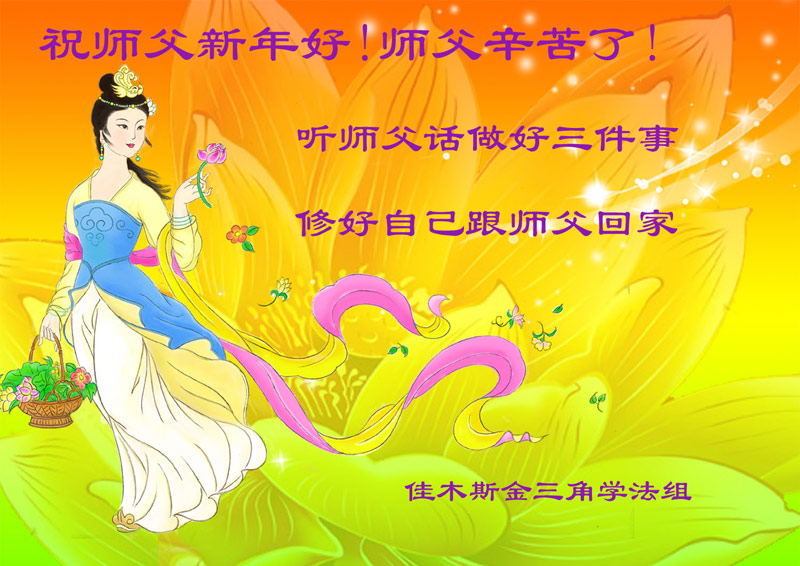 我们夫妻是09年得法的新学员,虽然我们俩在不同环境,但跟师父回家的心是一样的。在新的一年里学好法,做好三件事,修好自己,让师父少操点心,争取赶上正法進程,跟师父回家。我们夫妻跪拜:祝师尊新年快乐!