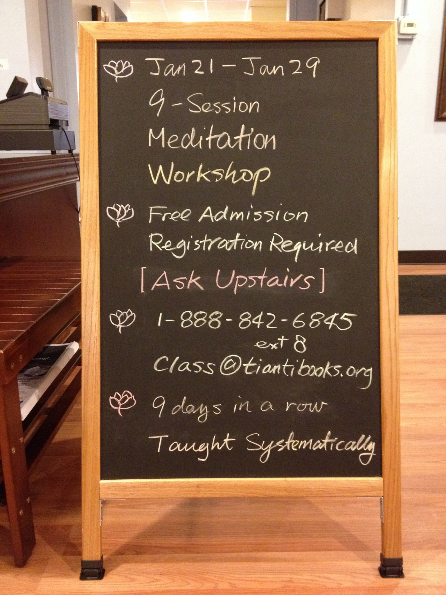 新学员之一的普希拉是去年刚毕业的大学生。去年底她偶然从天梯书店门前路过,看到天梯书店的推销活动,听到九天班的消息,当即要求参加。她说,“我等这个已经等了一辈子。”(I've been waiting for this whole life.)今年一月份开班两周前,书店发出电邮提醒,她马上响应,每天风雪无阻从宾州乘火车来曼哈顿上课。九天期间,有时各方面压力很大,让她心里很难过,她就提前到书店来看书,把自己融入到那个很好的能量场中。每天从书店离开时,普希拉都是眼睛亮亮的、挂着由衷的笑容。