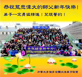 加拿大多伦多全体大法弟子恭祝师尊新年快乐!加拿大蒙特利尔大法弟子恭祝师尊新年好!加拿大埃德蒙顿全体大法弟子恭祝师尊新年好!加拿大卡尔加里大法弟子恭祝慈悲伟大的师尊新年好!