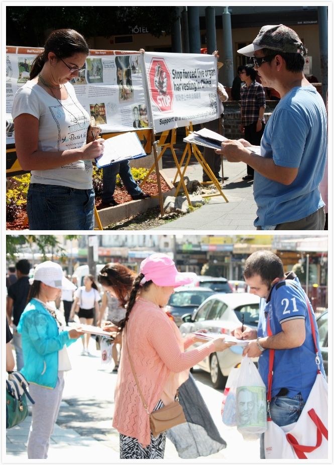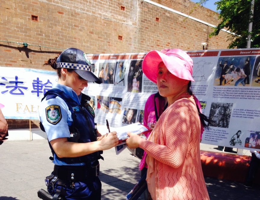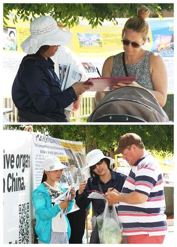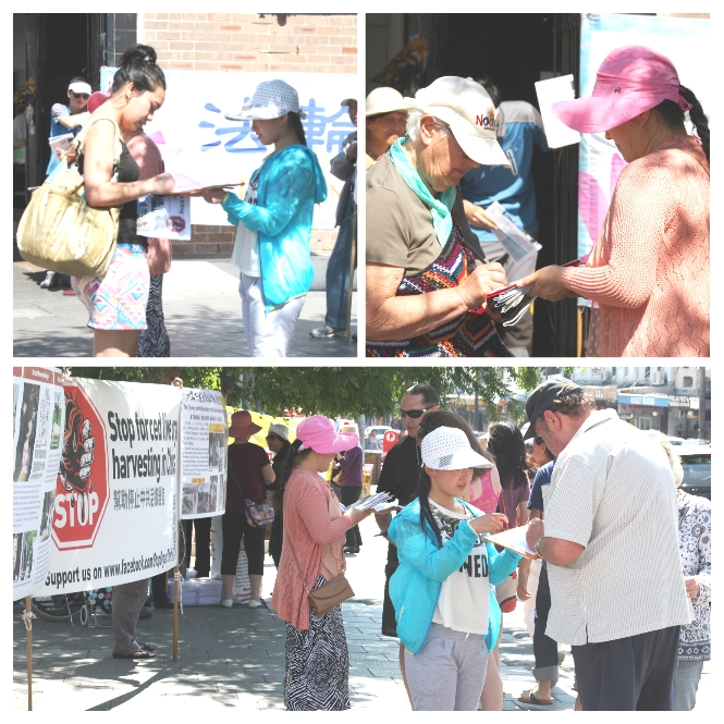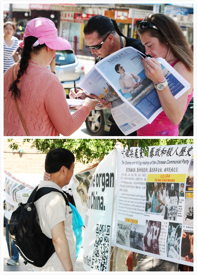 来自北京的陆女士,今年五月份陪孩子来留学,她在队伍出发前看到天国乐团的队伍,她就一直在那观看,她说:“没想到在海外也有这么多法轮功学员,第一次看到这么壮观的队伍,很感动。”当法轮功学员王女士问她是否知道目前的“三退”大潮时,她自豪地说:“我早退了,我去韩国旅游的时候,也是你们法轮功学员给我退的团、队,连我的儿子都退了。真的很感谢!”她说:“给我一张传单吧。”她接过传单后表示:一定回去好好上网看看,这么多人学,肯定是好东西。