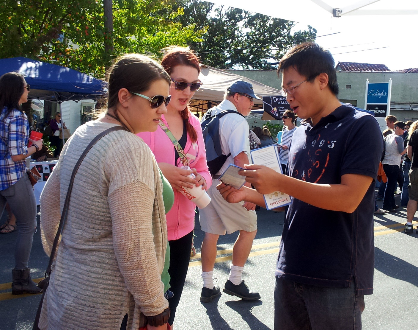 来自河北的留学生苏先生追着天国乐团的队伍拍照,他赶到了前面,他说:“我要把‘法轮大法’照下来,很棒,很好!我要上网去多了解,因为我才刚到加拿大。”他接过了传单高兴的说:“非常感谢!”