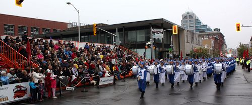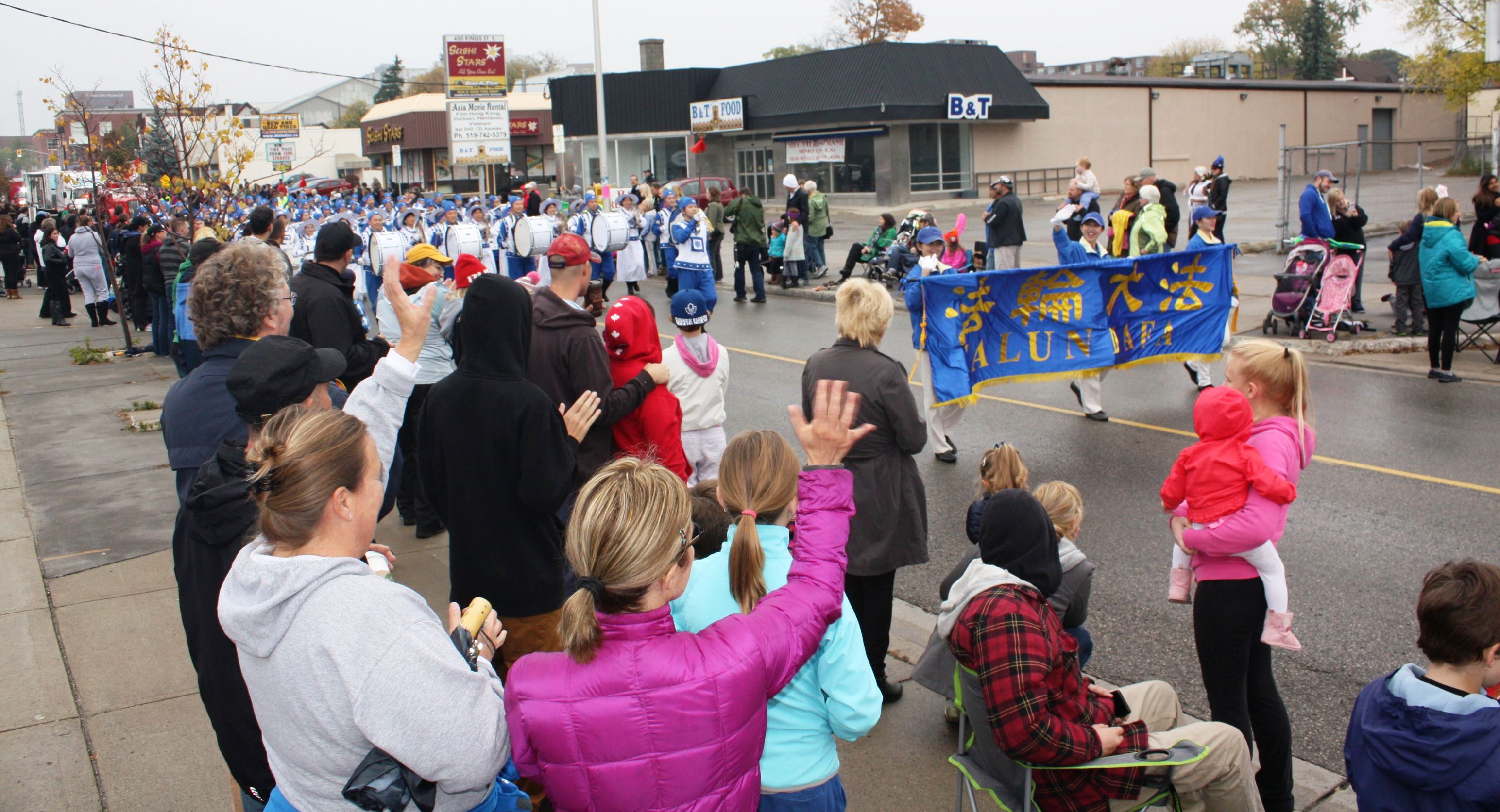【明慧网二零一四年十月十四日】(明慧记者章韵滑铁卢报道)二零一四年十月十三日,加拿大安省滑铁卢市(Waterloo)举行了一年一度的感恩节大游行(Oktoberfest Thanksgiving Day Parade)。