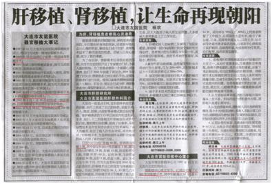 《大连晚报》2006年12月30日以“同一医院成功换肾三例”为题目,也报道了此事。
