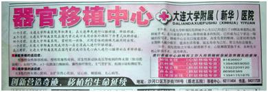 ![]() 大连新华医院报纸广告版面 |