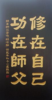 楠木刻字:“修在自己,功在师父”