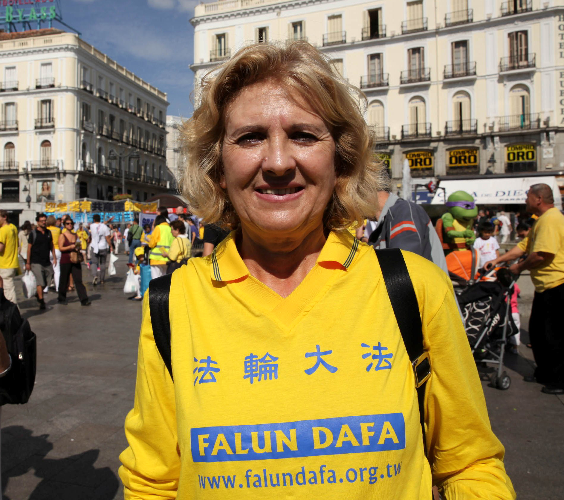 西班牙法轮功学员Juanes女士二零零五年一月开始修炼法轮功,能参加今天的游行她很高兴,“这么多的学员,以这种方式来表达心声,民众对活动的热烈反响,让我感觉非常好。”她说:我们以这种形式向民众传达正面的信息,让人们了解到法轮功学员的真实面貌,让人们明白迫害是怎么回事。“我希望通过这些努力能让迫害早日结束。”