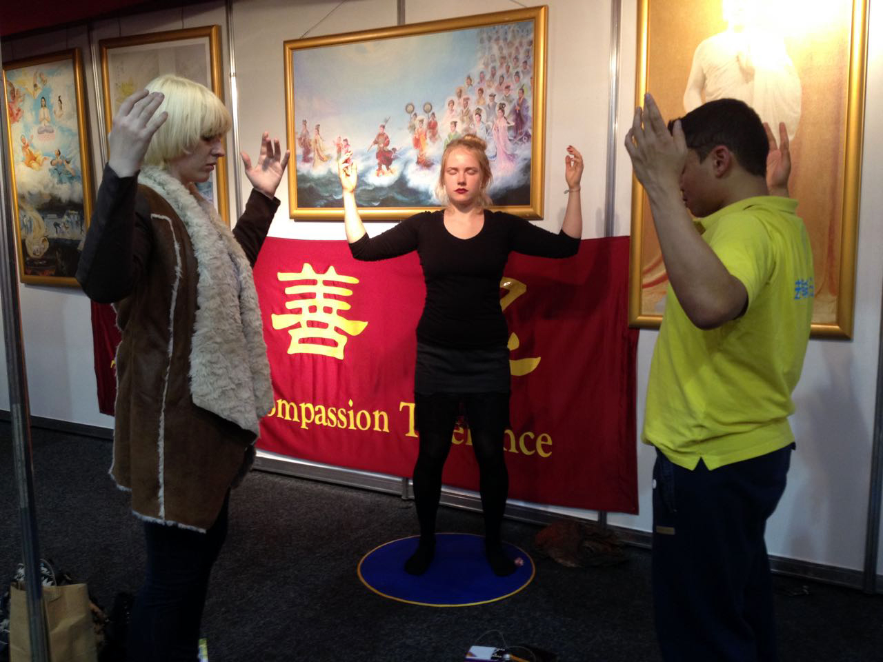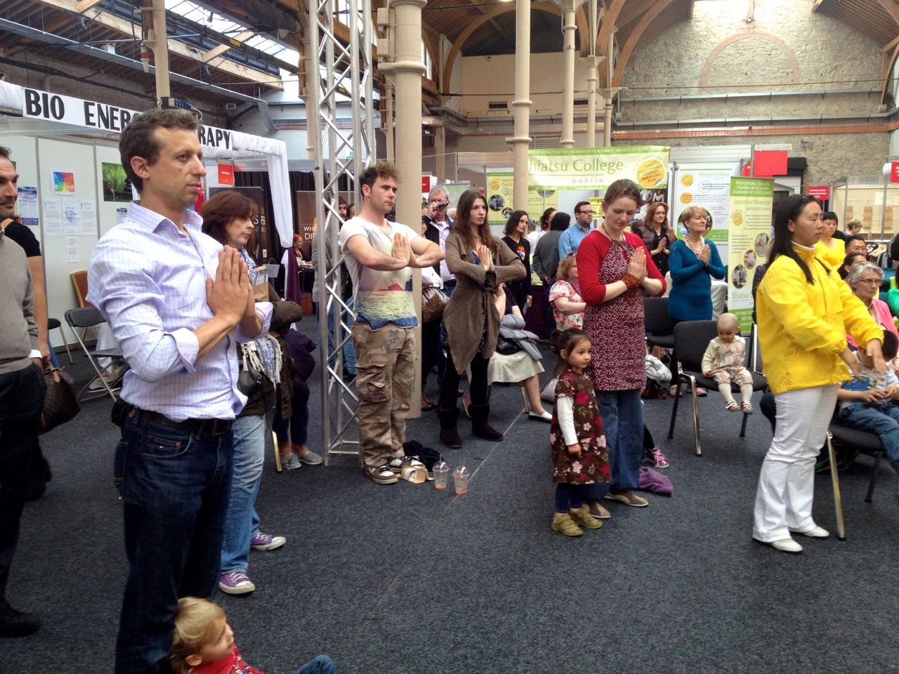 ![]() 图4:在爱尔兰“身心灵健康展”,不少西方人当场学功。 |