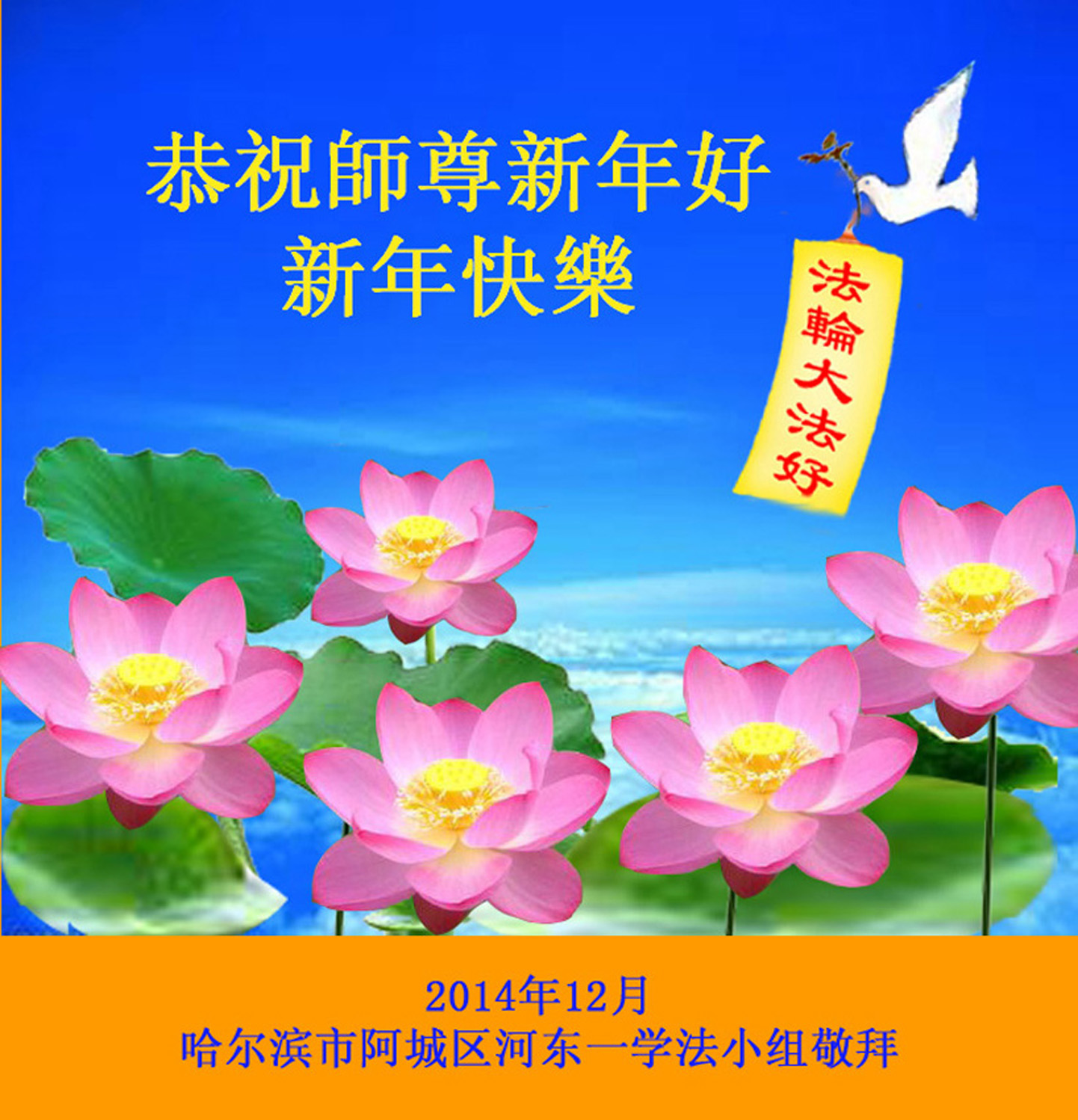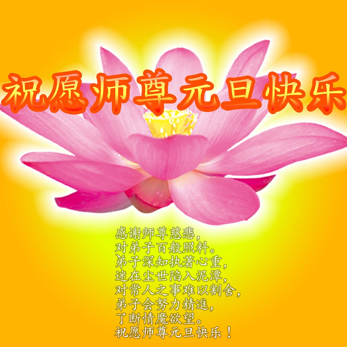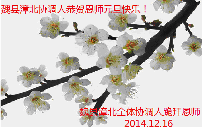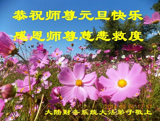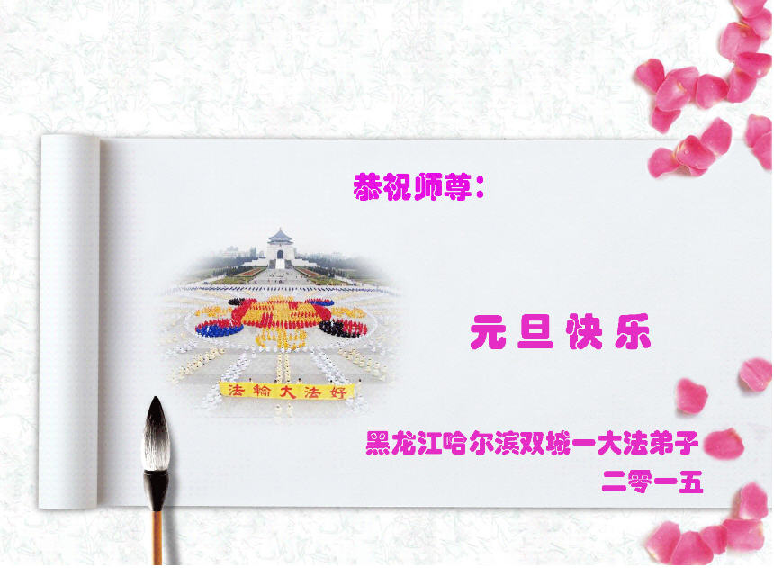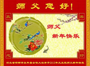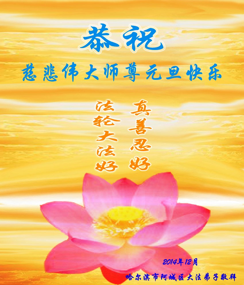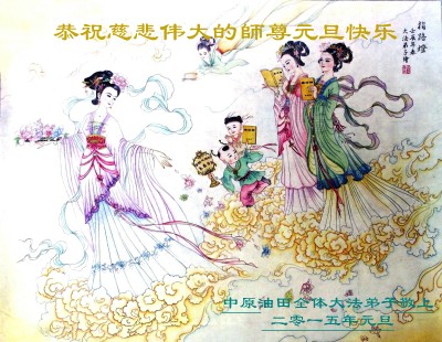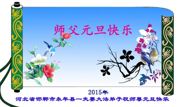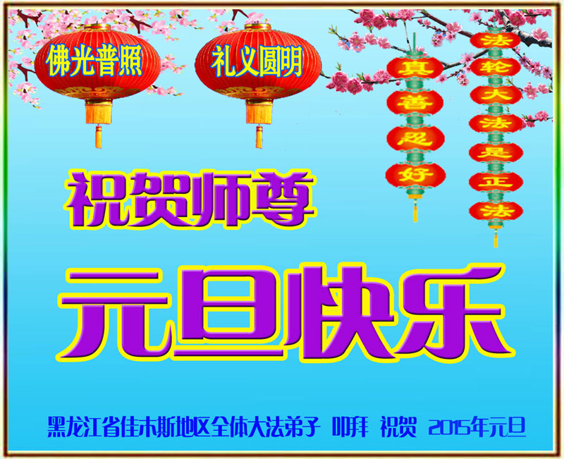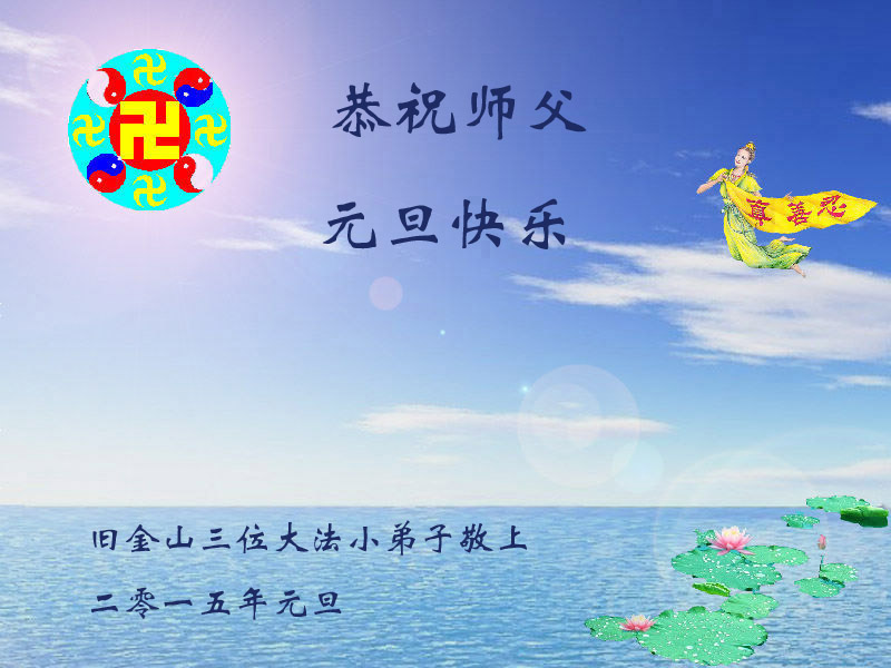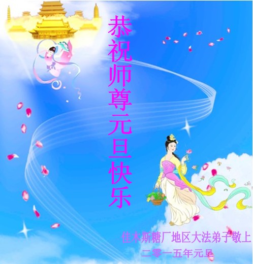 在二零一五年元旦来临之际,濮阳地区、中原油田全体大法弟子恭祝慈悲伟大的师尊元旦快乐!愿师尊在新的一年里多一份欣慰,少一份操劳,请师尊放心,弟子们一定会尽心尽力做好三件事,牢记师尊教诲,不辜负众生的殷殷期盼。