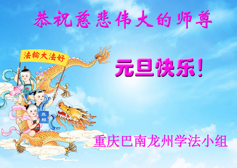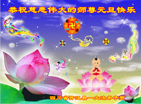 我代表学法小组其他三位同修恭祝师尊元旦快乐!