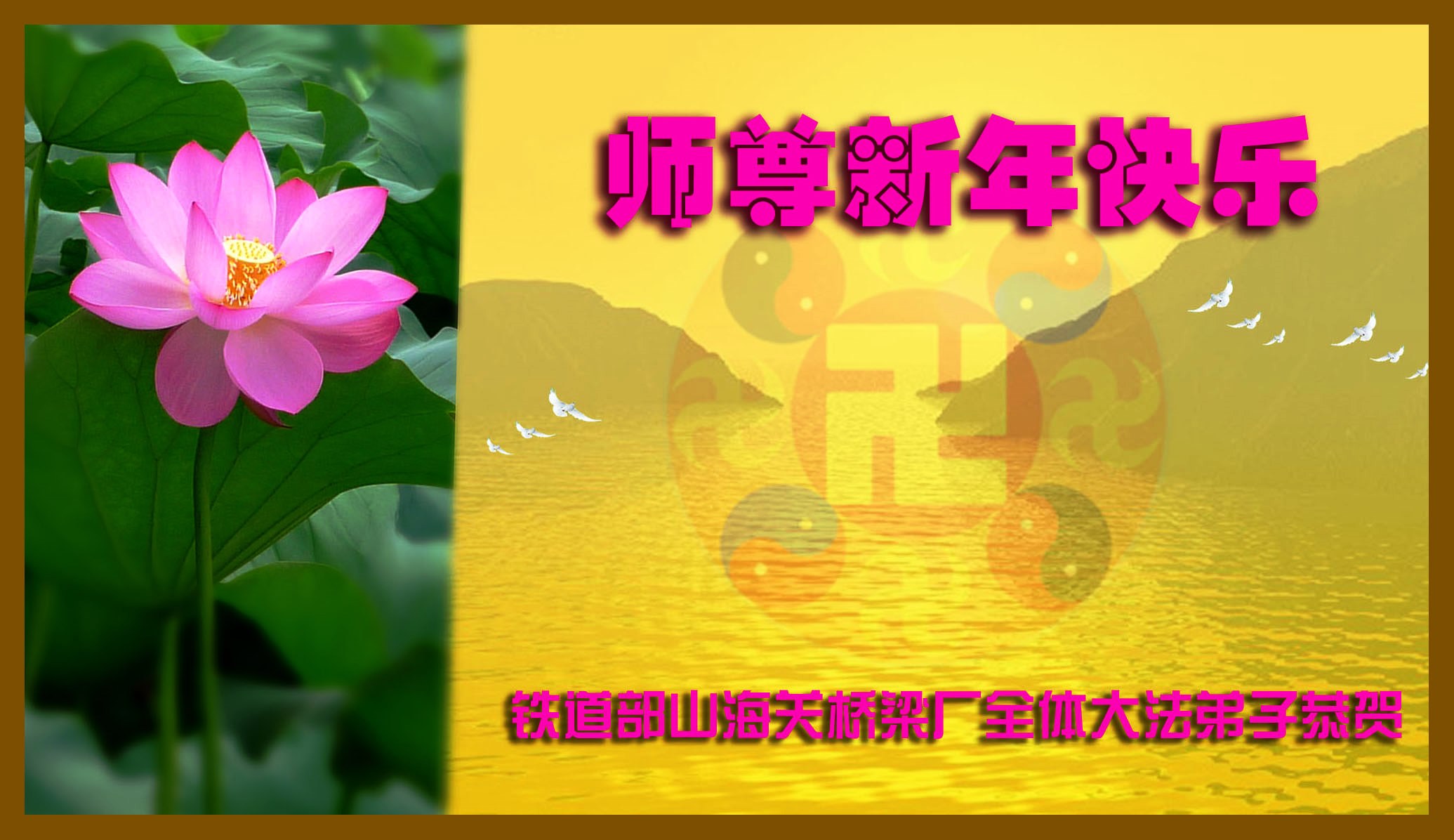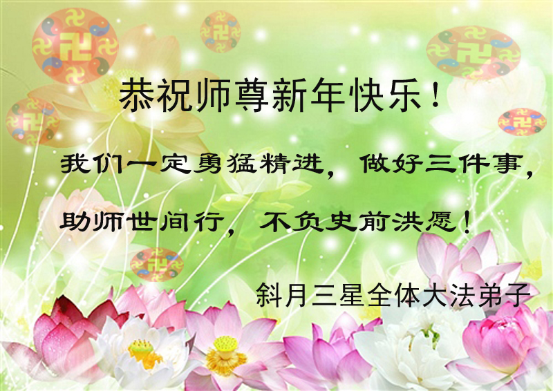 在新的一年到来之际,东营市暨胜利油田大法弟子恭祝慈悲伟大的师父新年快乐!