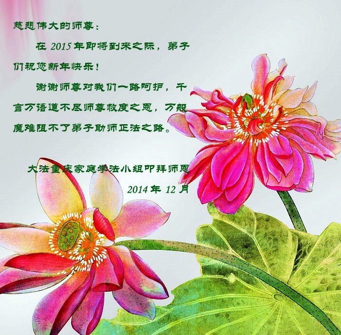 <英文版: http://en.minghui.org/html/articles/2015/1/1/147676.html>美国芝加哥、明州、德州、犹他州等地大法弟子恭祝师尊新年好