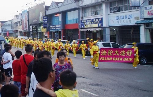 游行阵容包括天国乐团、舞龙队、灯笼队、仙女队和腰鼓队,一支弘扬传统文化的队伍,不仅获得当地人的赞赏,也让外国人包括留学生们有机会了解中华传统文化。其中,法轮功学员在古来大学城的游行更获得当地警方的支持,加派人员为游行队伍协助开路。