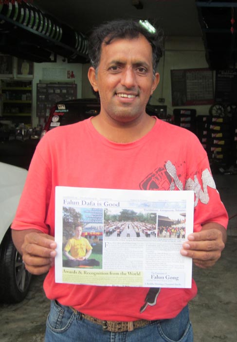 来自巴基斯坦的沙基尔·阿默很开心能够看到法轮功学员的新年游行。
