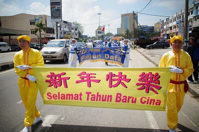 马来西亚法轮功学员在年十七(二月十六日)首次来到彭亨州首府——关丹,也是马来西亚半岛东海岸最大城市举行新年游行,给当地民众带来了惊喜,使他们感动不已,纷纷表达了心中的喜悦。