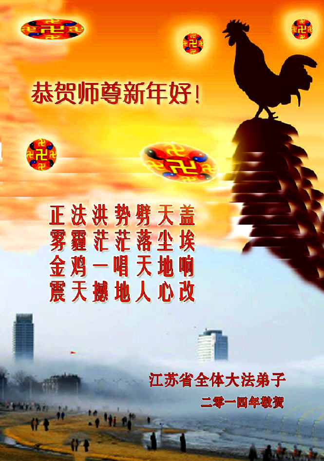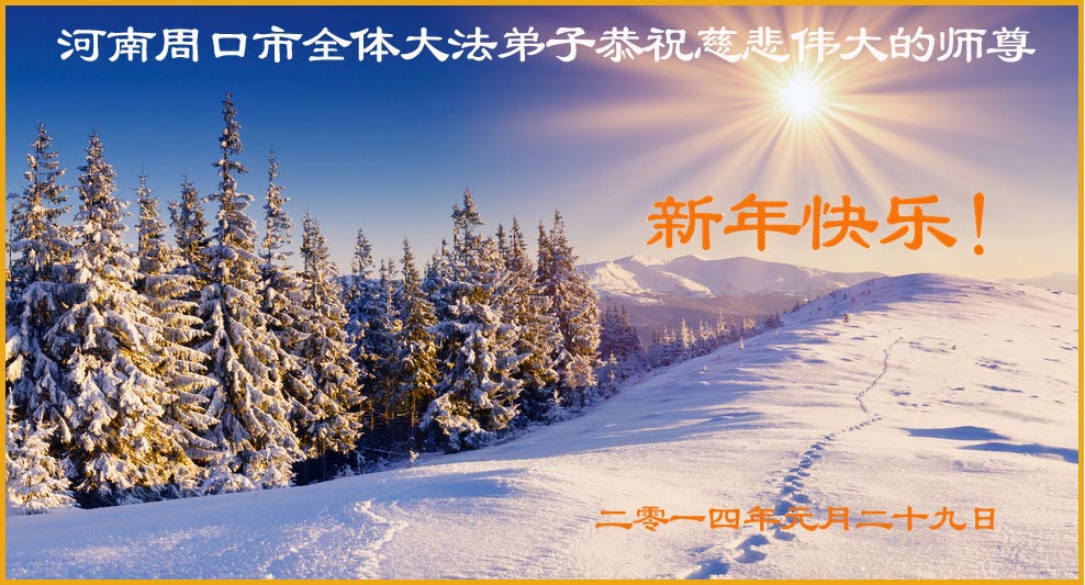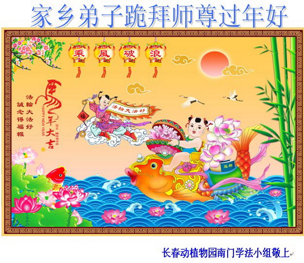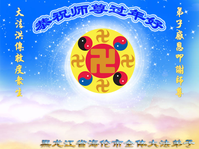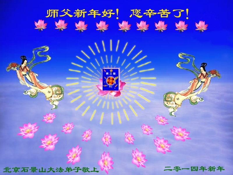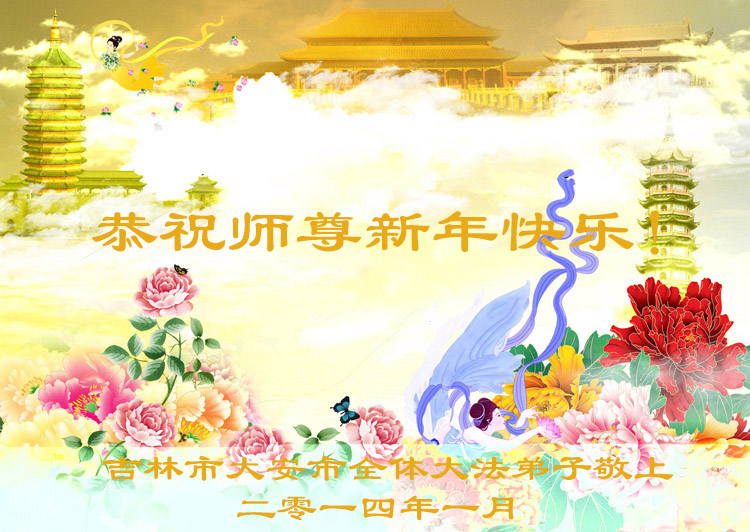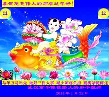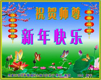 在辞旧迎新甲午年到来之际,黑龙江省建设系统全体大法弟子给慈悲伟大的师父拜年道一声師父辛苦了!并祝伟大的师父二零一四年过年好!