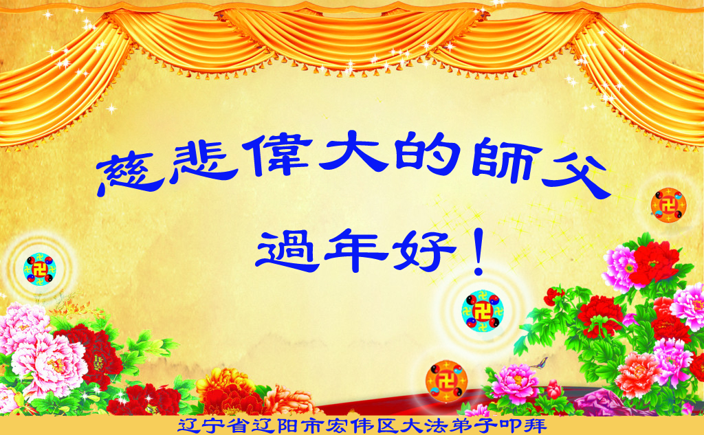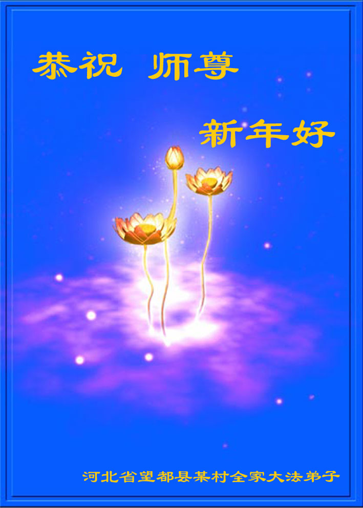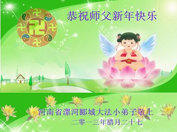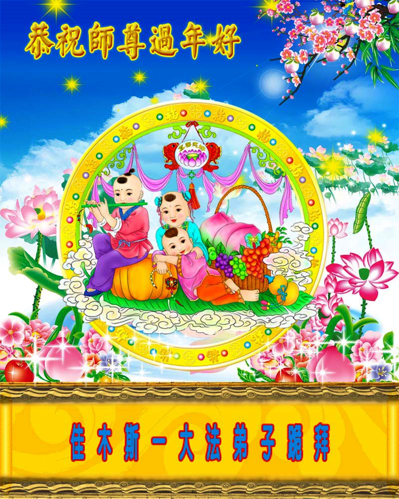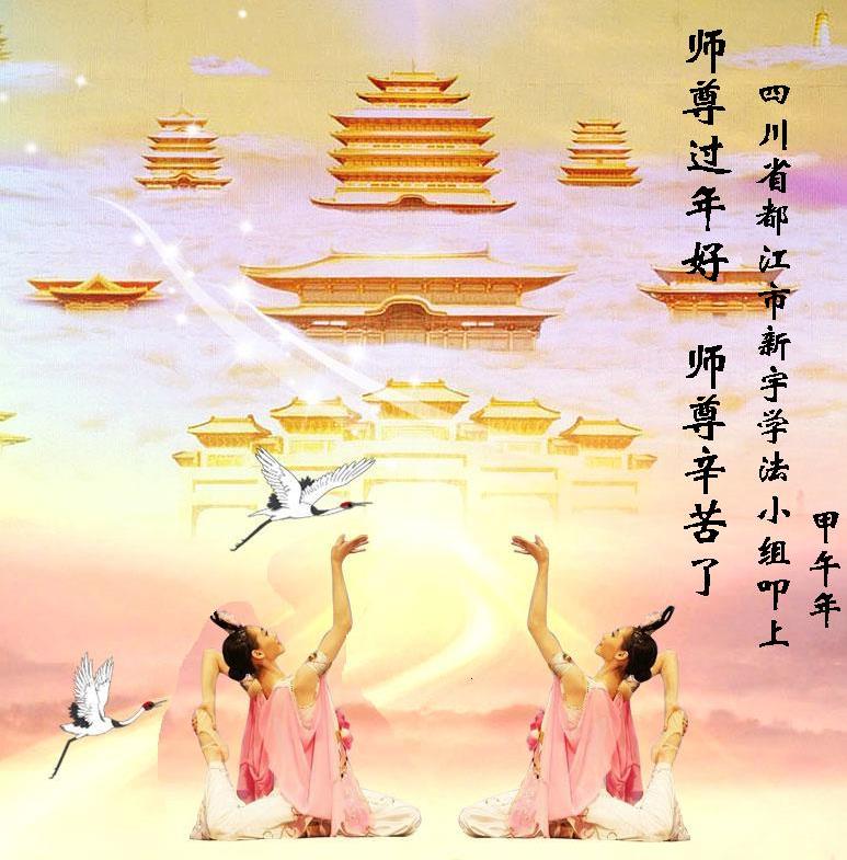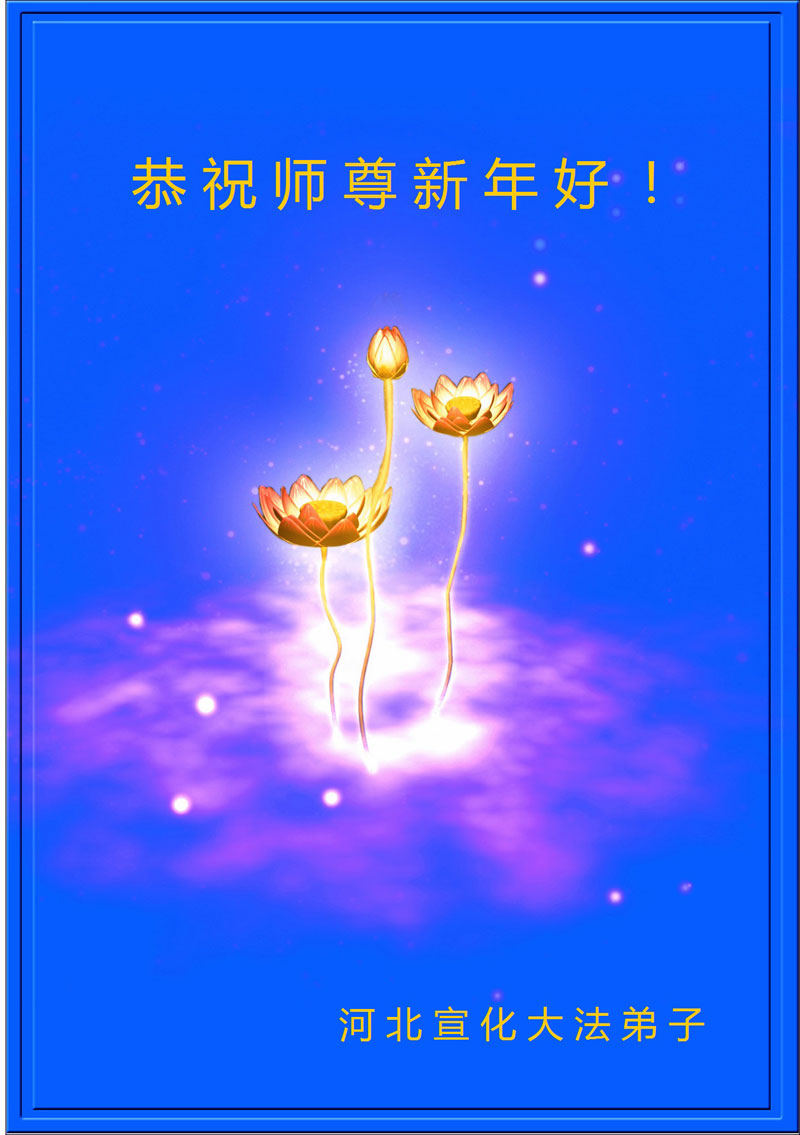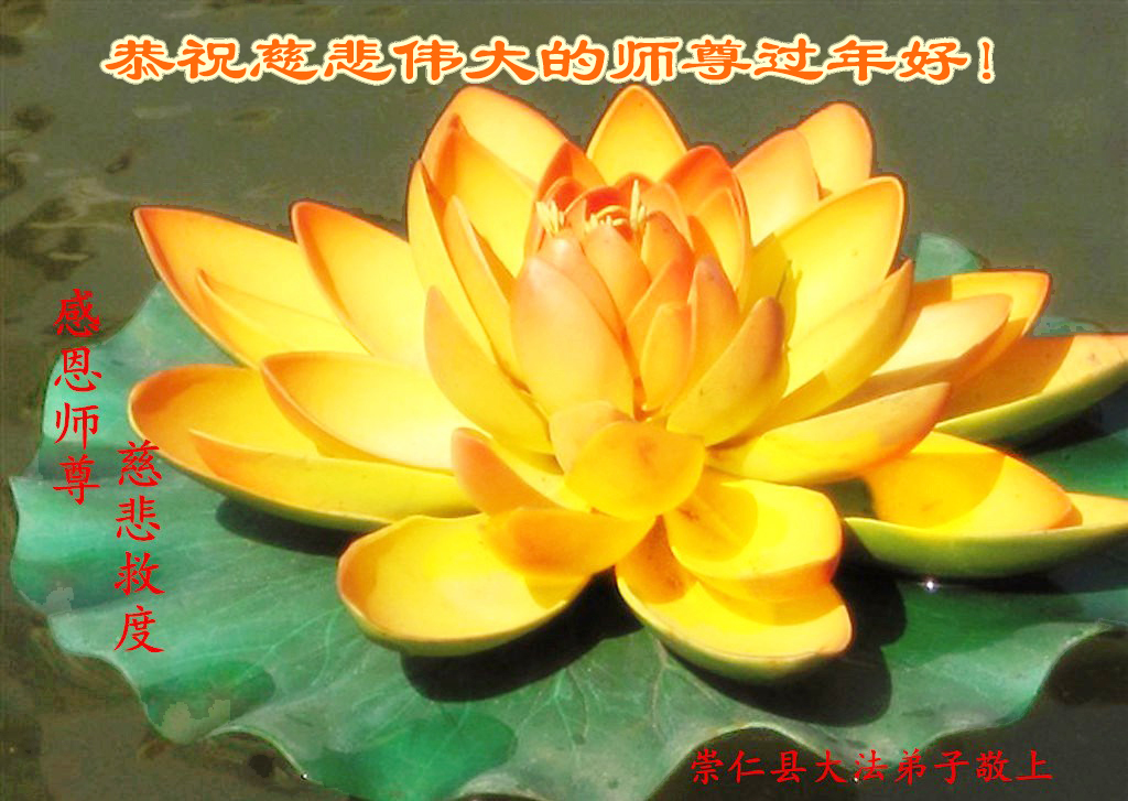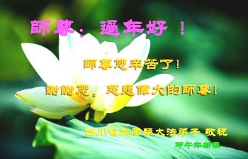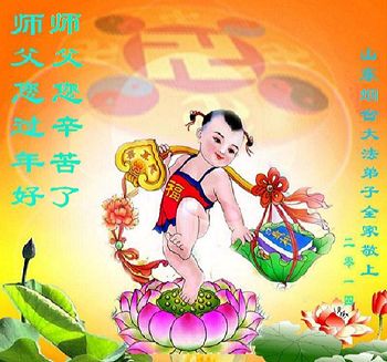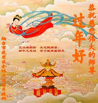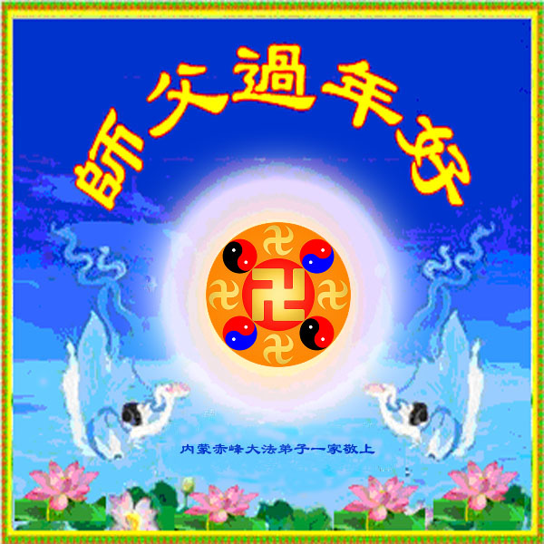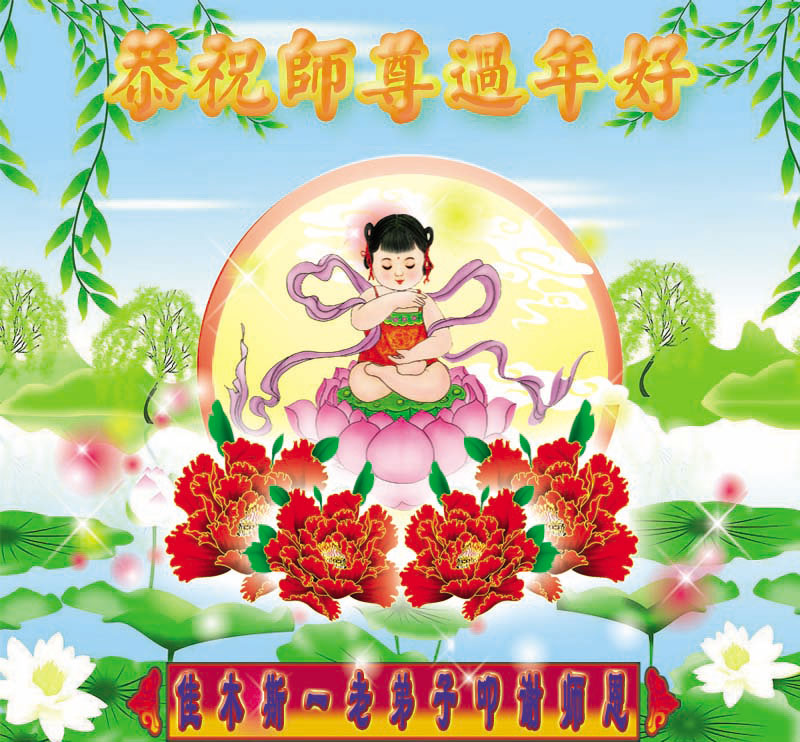 师尊:您将弟子从地狱中捞起,洗净弟子身上的污垢,将“真、善、忍”的宇宙法理传与弟子,弟子对您的感激法用言语表达,值此佳节送上一张贺卡,祝师尊过年好!