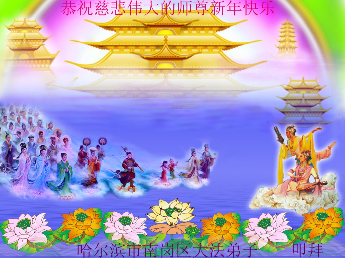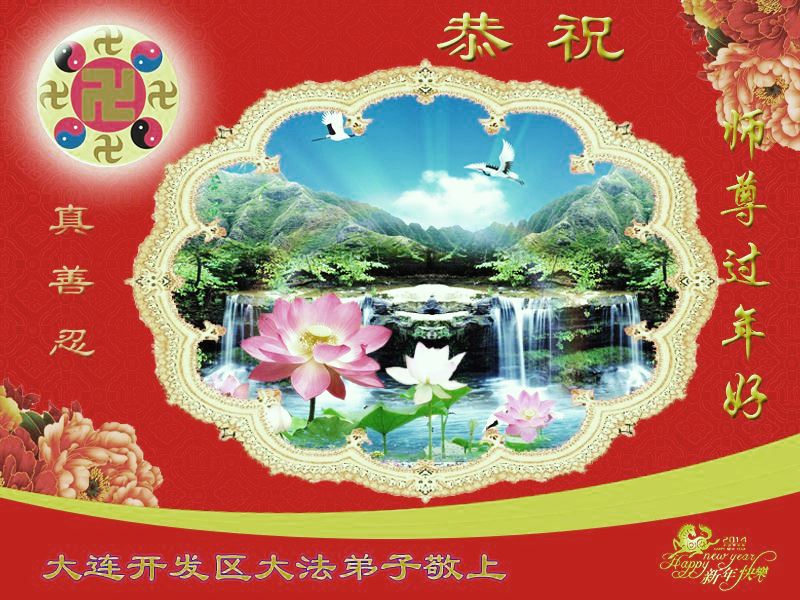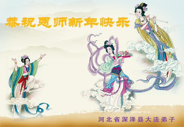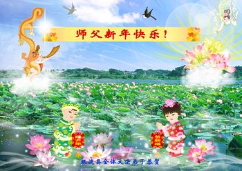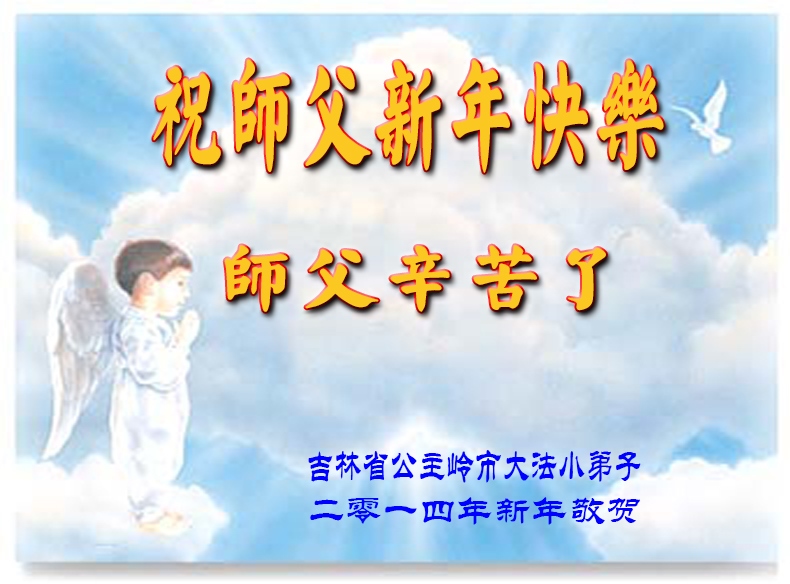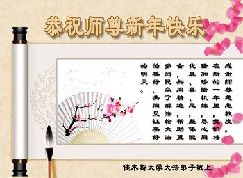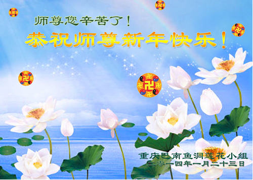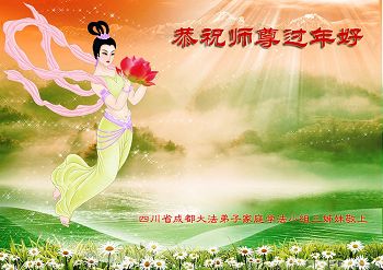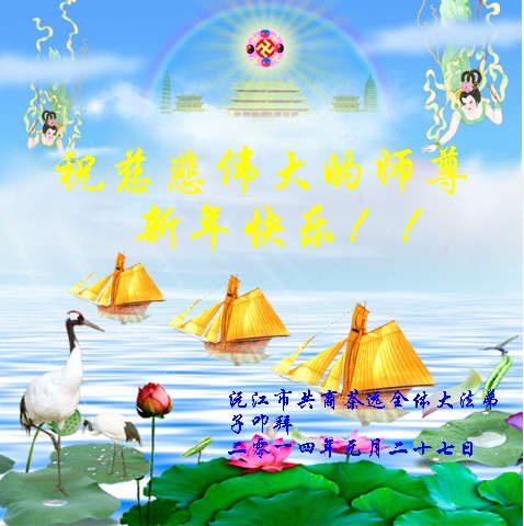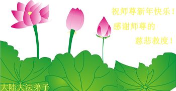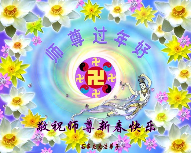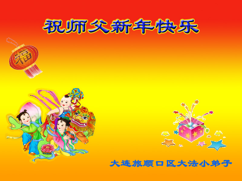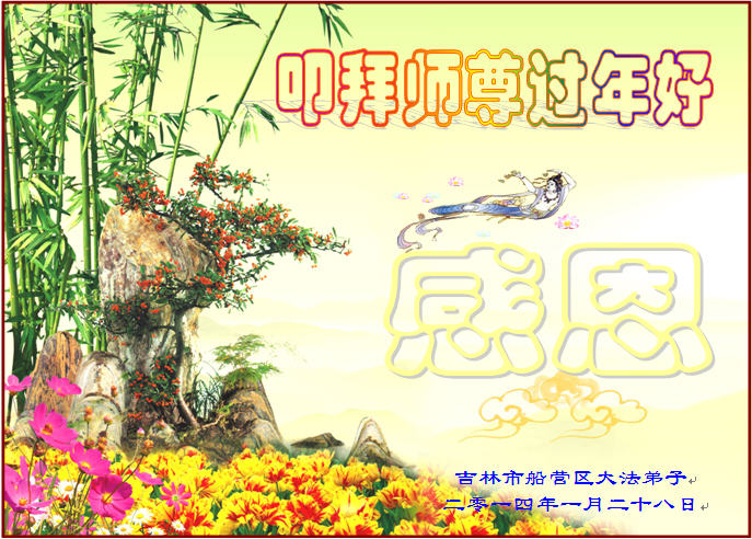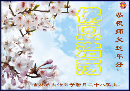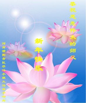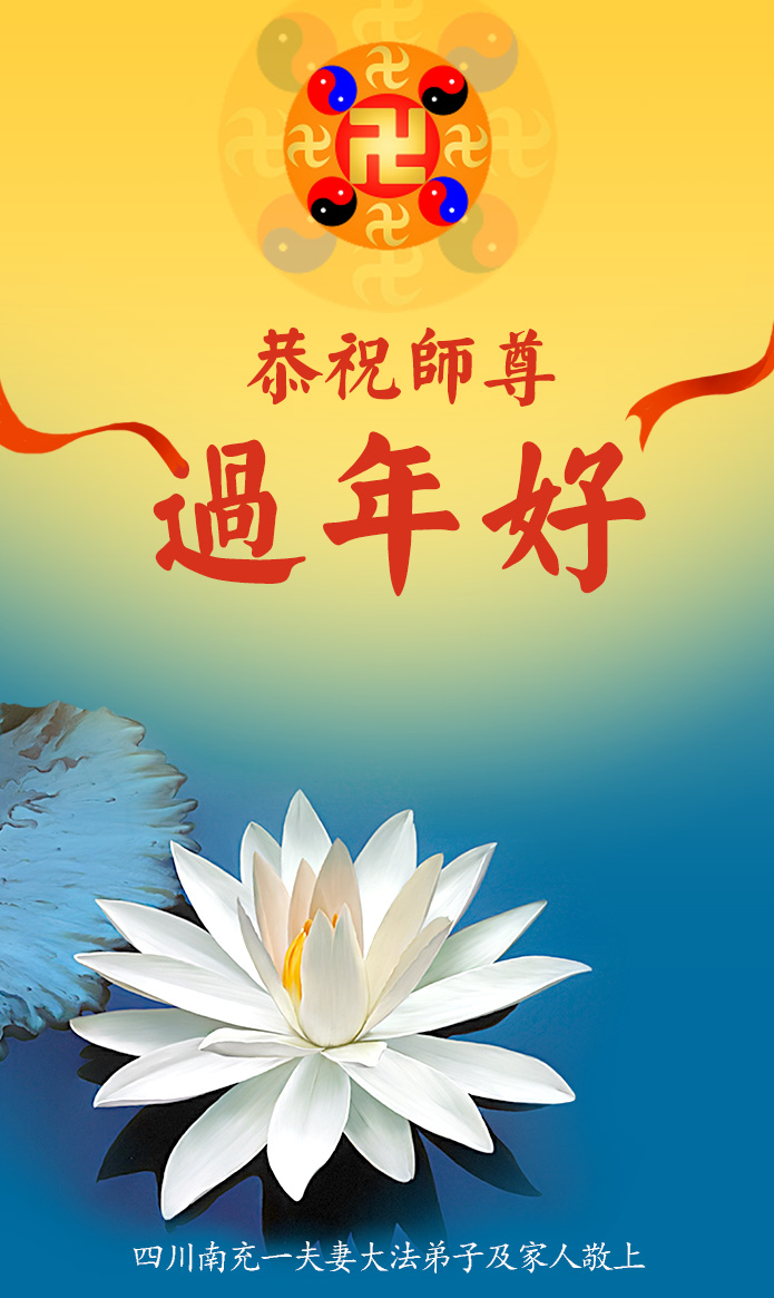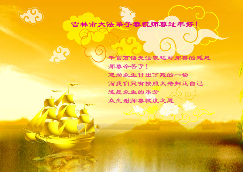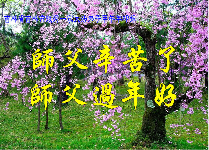 师尊:您将弟子从地狱中捞起,洗净弟子身上的污垢,将“真、善、忍”的宇宙法理传与弟子,弟子对您的感激法用言语表达,值此佳节送上一张贺卡,祝师尊过年好!