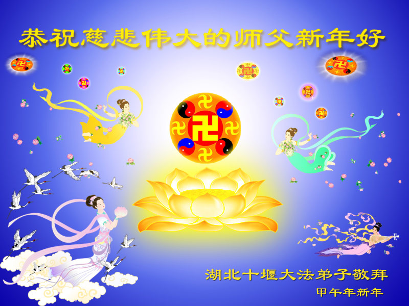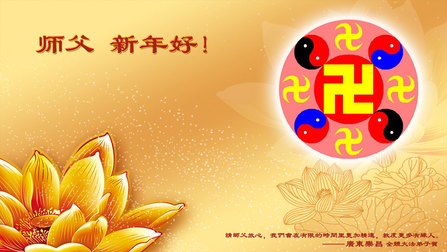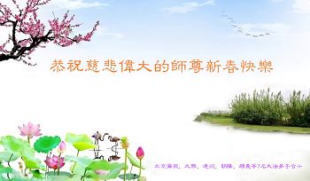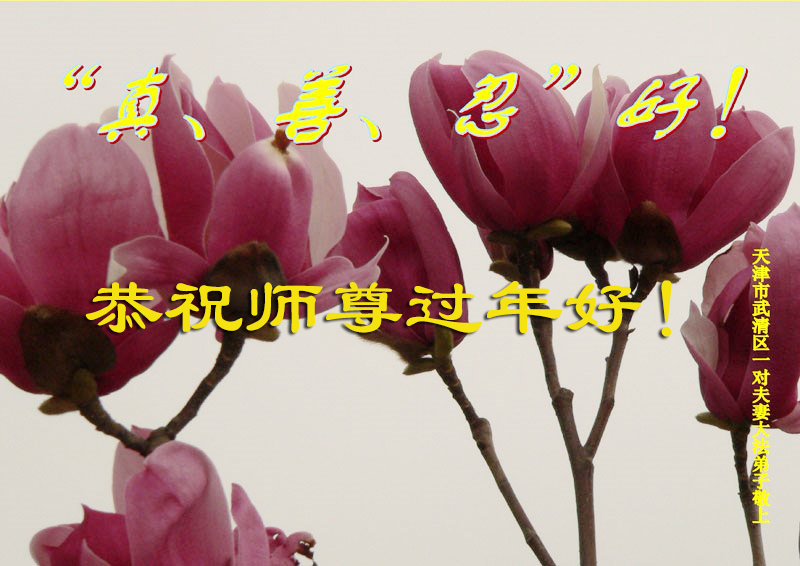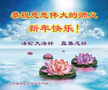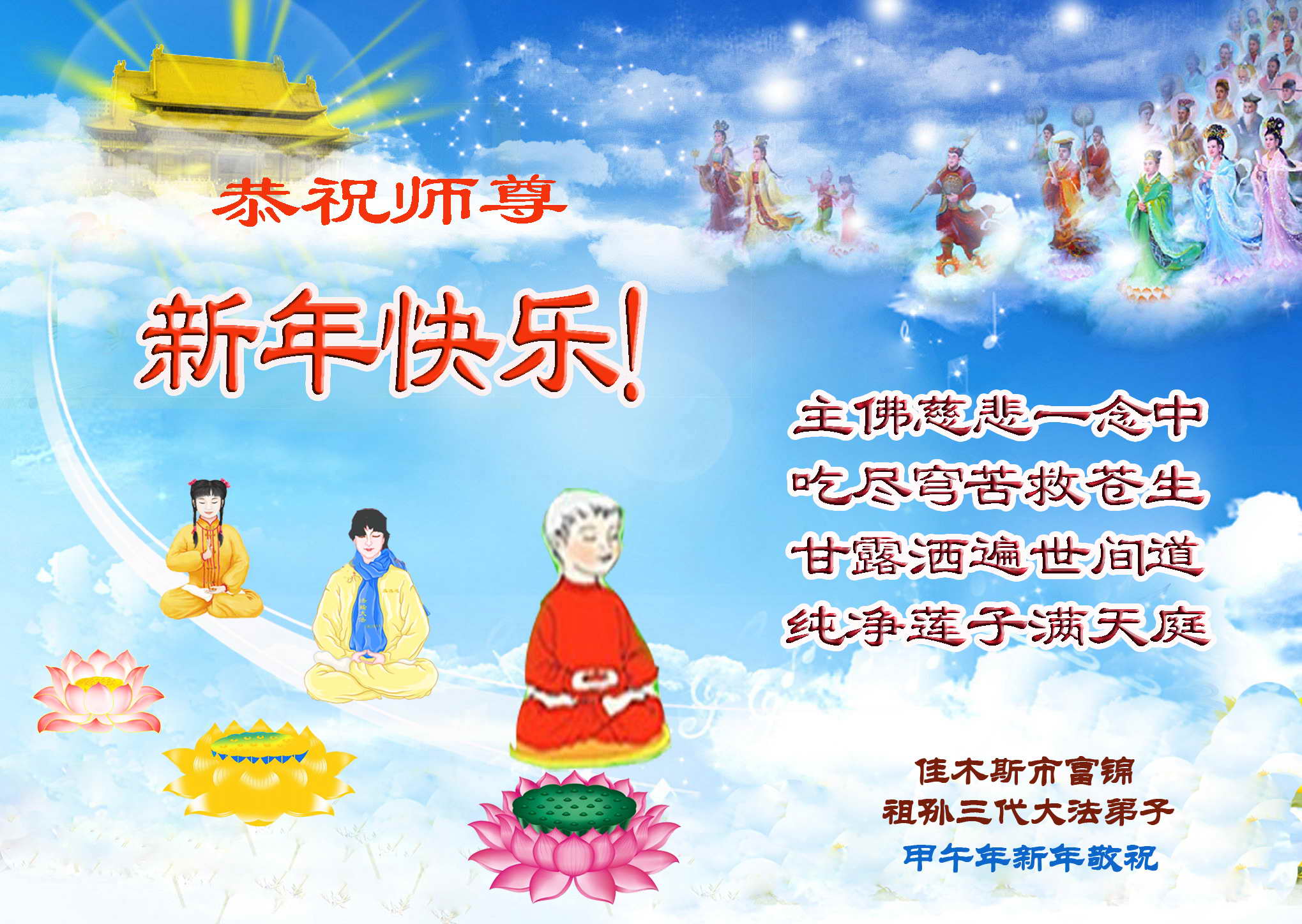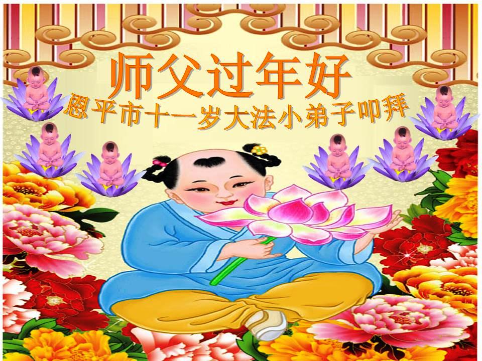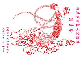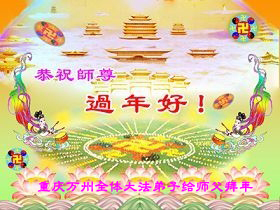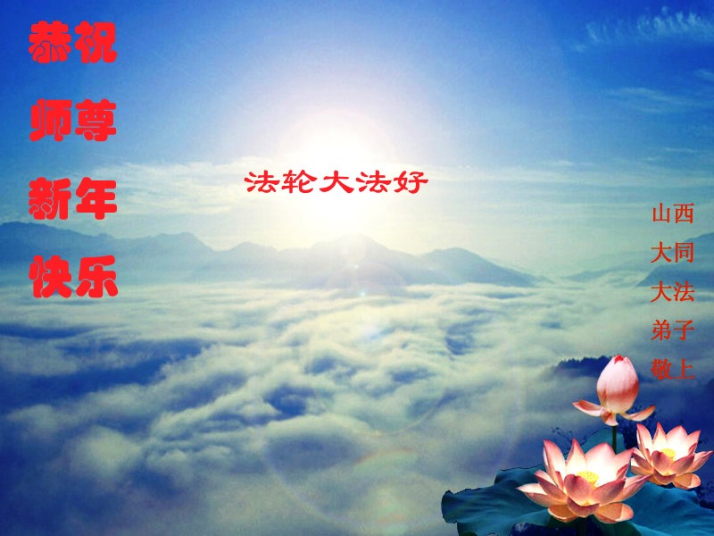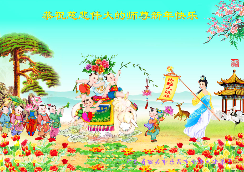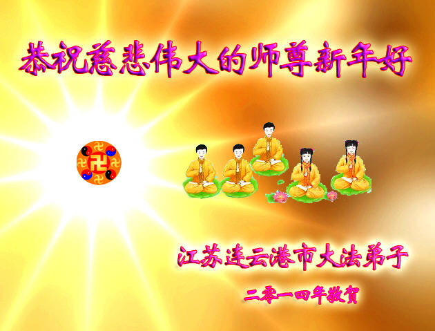 师尊:您将弟子从地狱中捞起,洗净弟子身上的污垢,将“真、善、忍”的宇宙法理传与弟子,弟子对您的感激法用言语表达,值此佳节送上一张贺卡,祝师尊过年好!