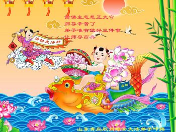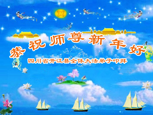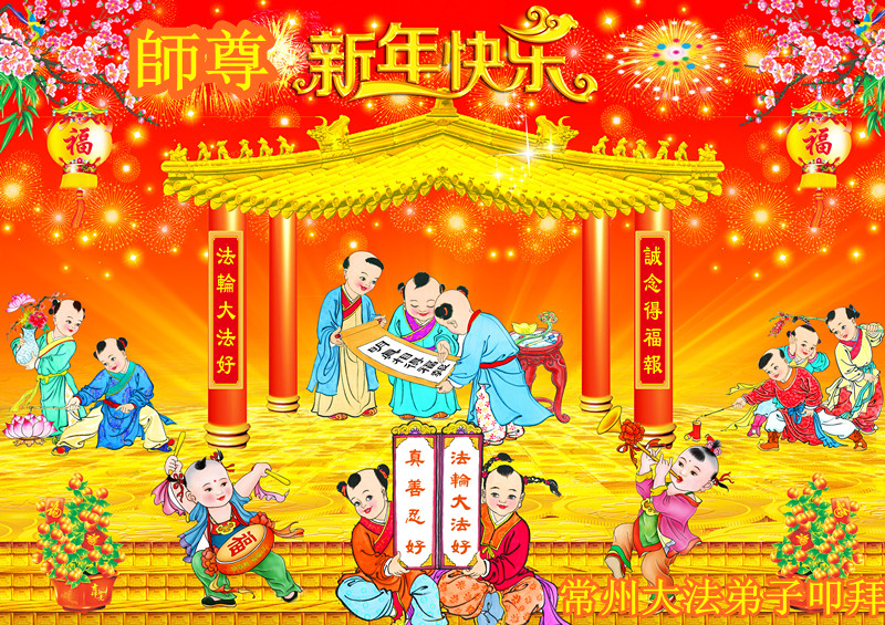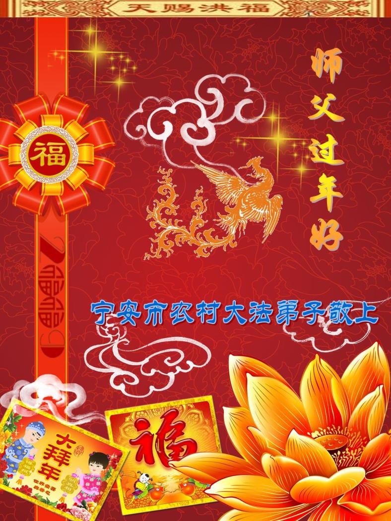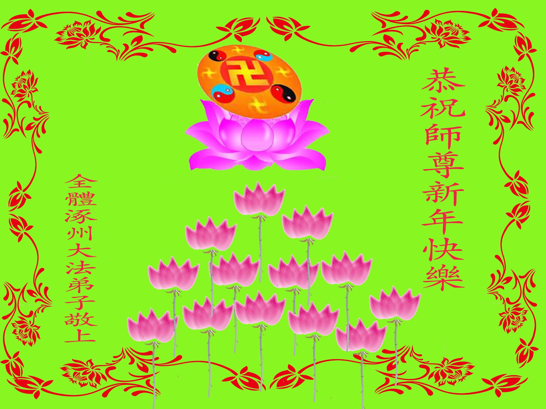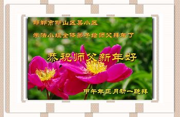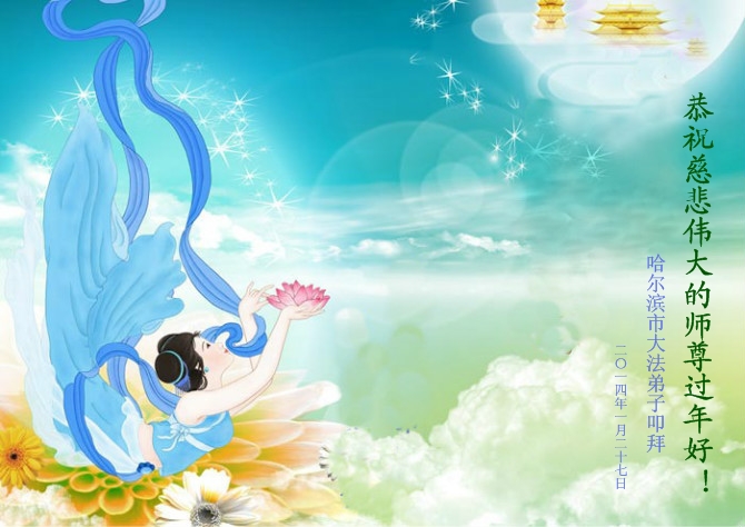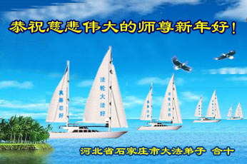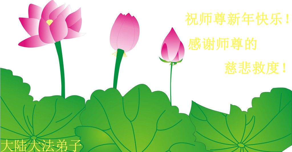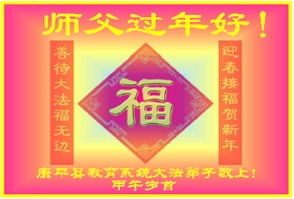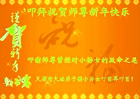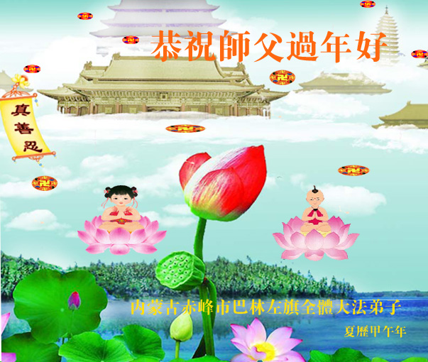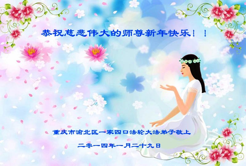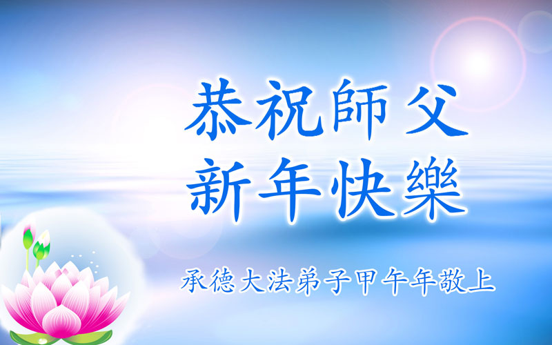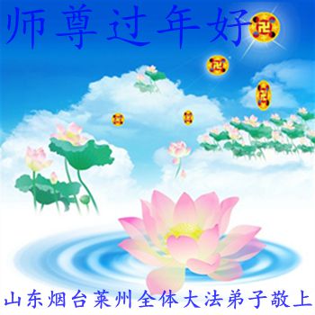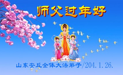 师尊:您将弟子从地狱中捞起,洗净弟子身上的污垢,将“真、善、忍”的宇宙法理传与弟子,弟子对您的感激法用言语表达,值此佳节送上一张贺卡,祝师尊过年好!