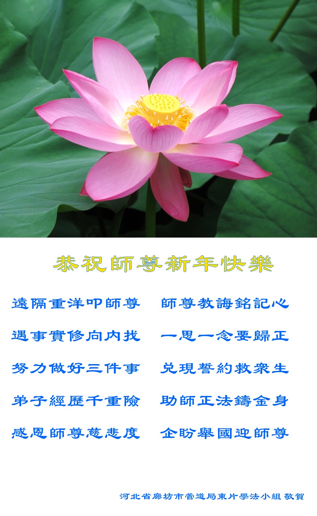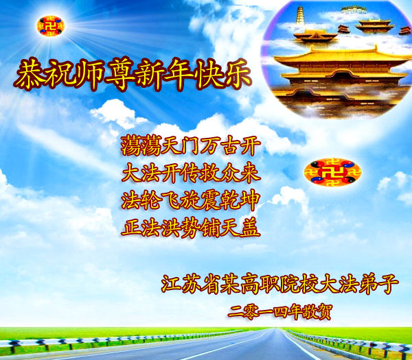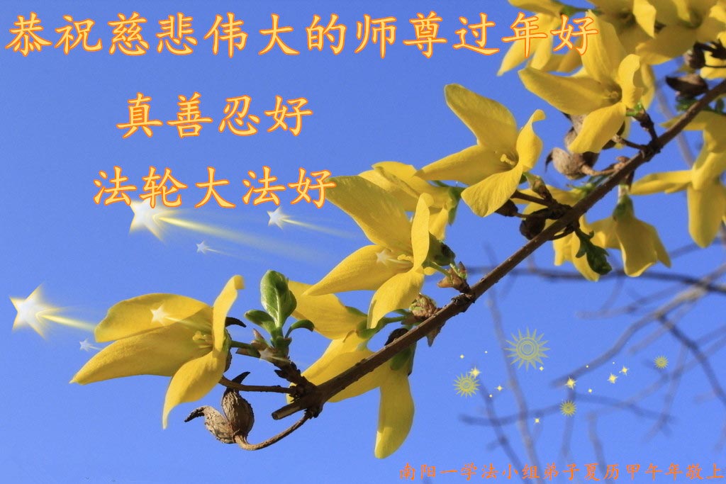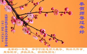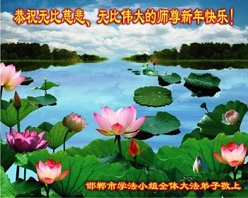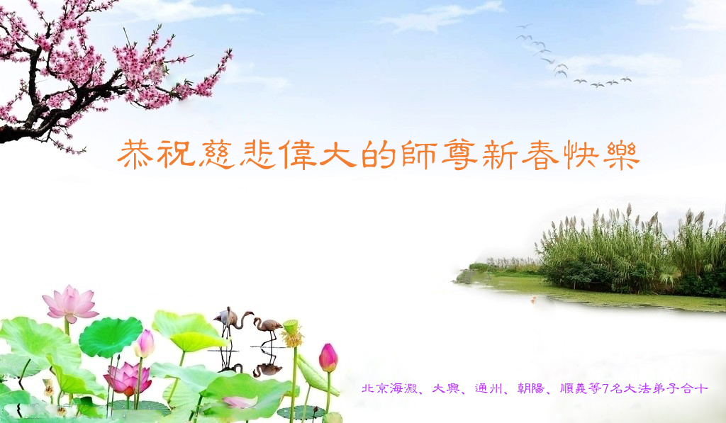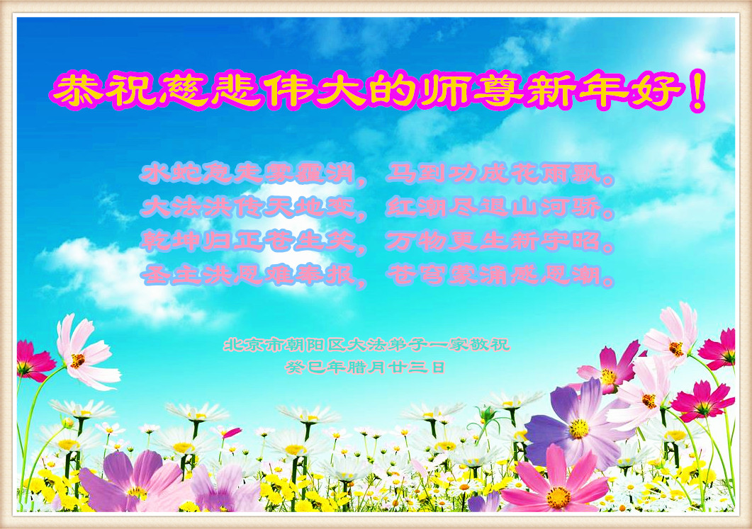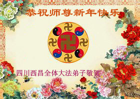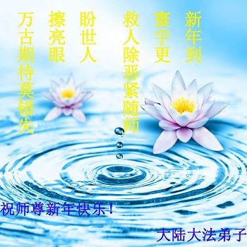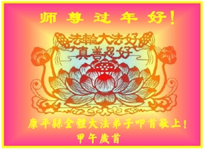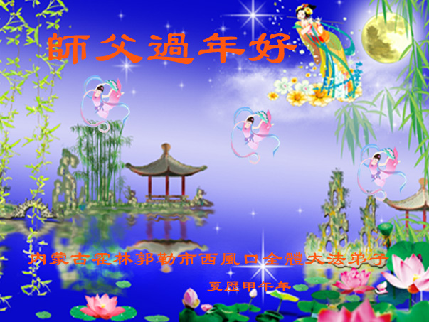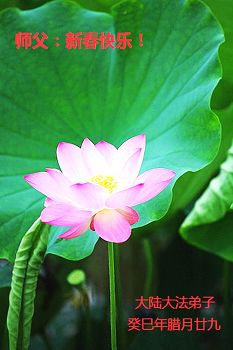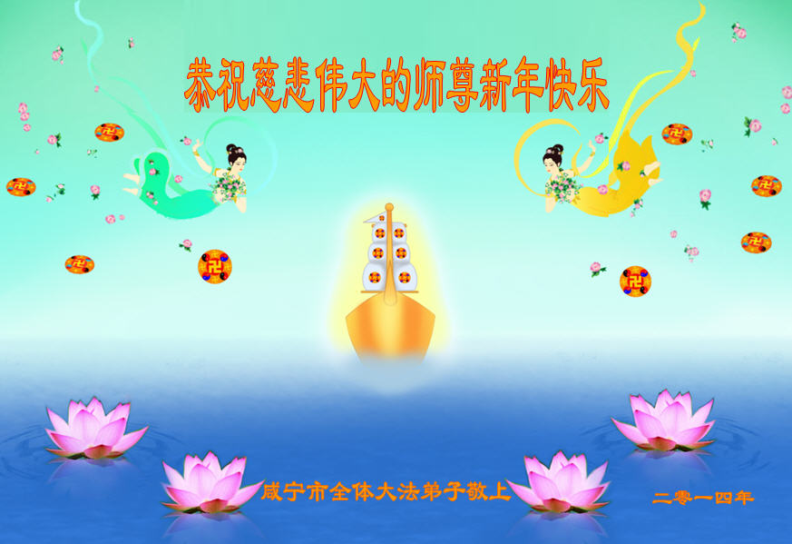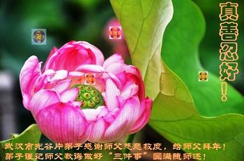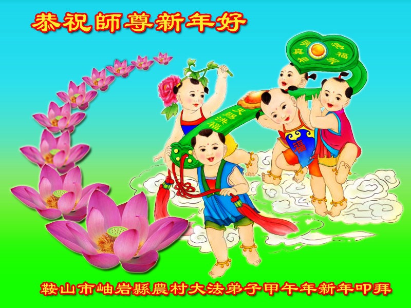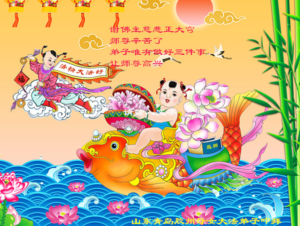 师尊:您将弟子从地狱中捞起,洗净弟子身上的污垢,将“真、善、忍”的宇宙法理传与弟子,弟子对您的感激法用言语表达,值此佳节送上一张贺卡,祝师尊过年好!