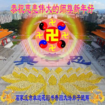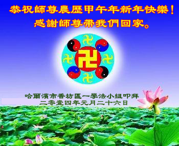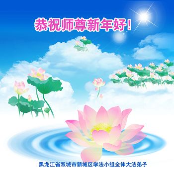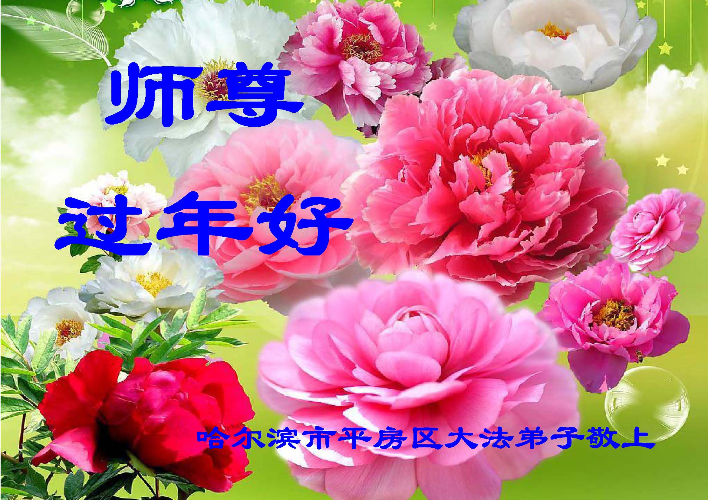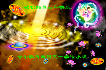 助师正法念师恩,哈尔滨市香坊区一学法小组全体同修在甲午年到来之际给慈悲伟大的师父拜年,祝师父节日快乐!