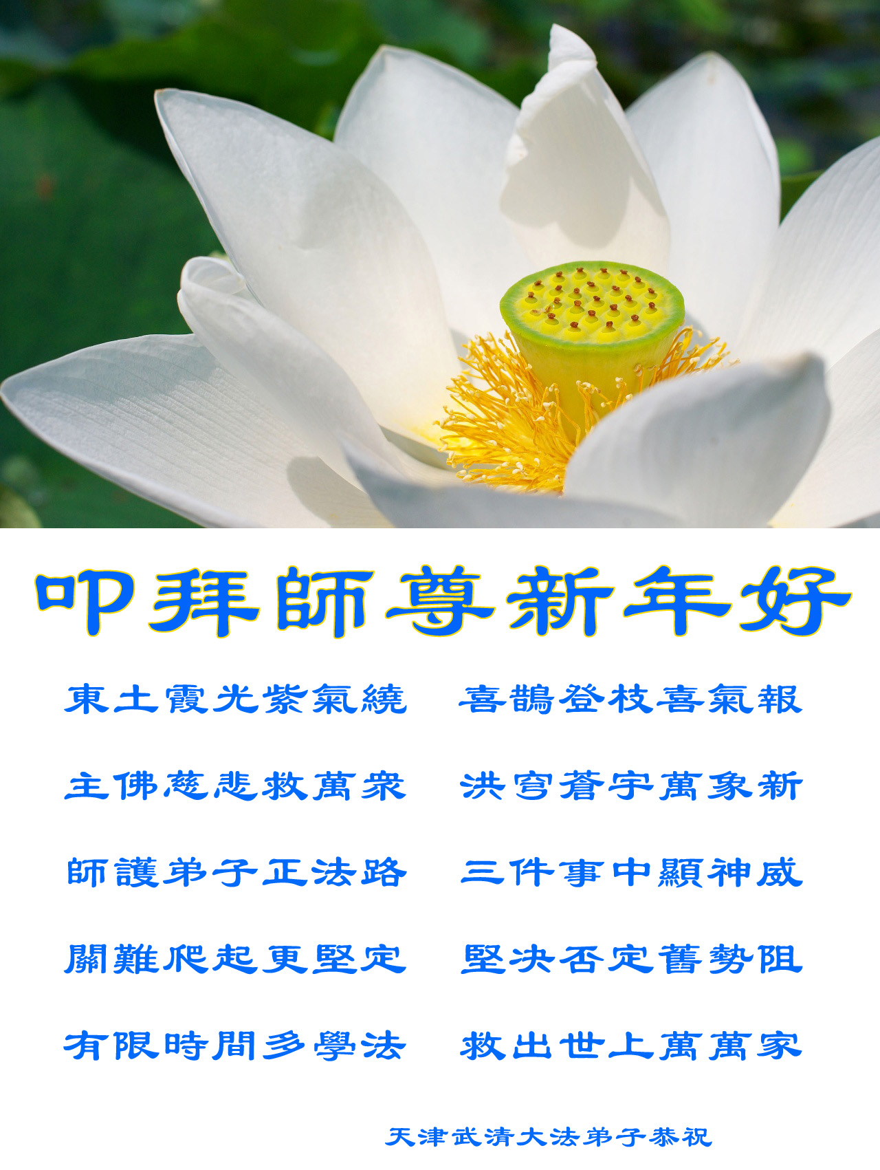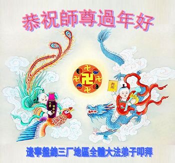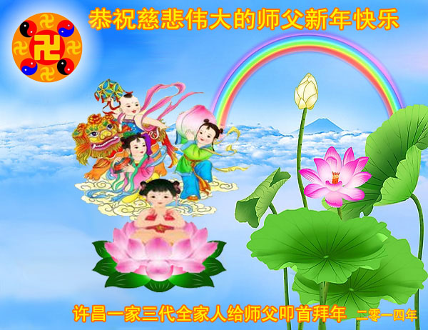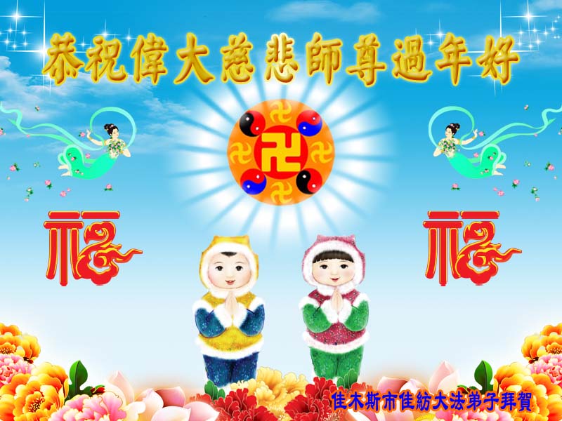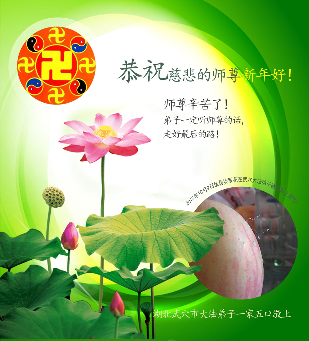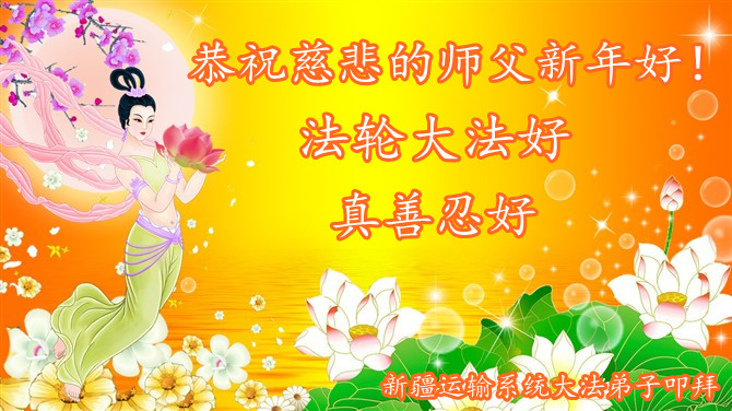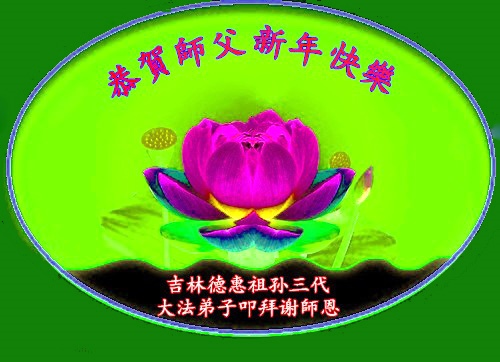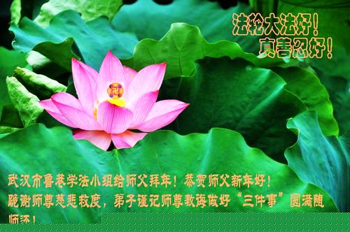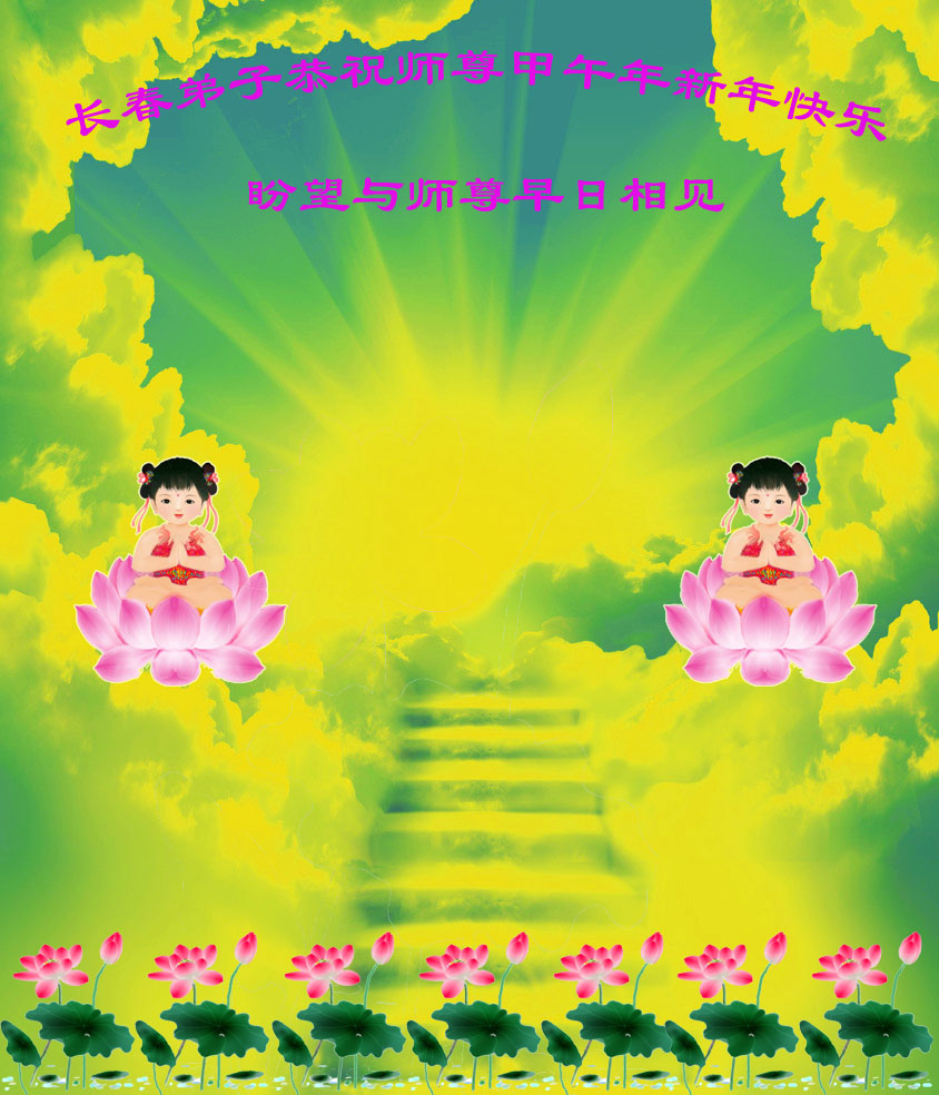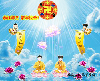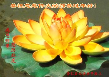 向慈悲伟大的师父拜年。用语言无法表达内心对师父的感恩,只有精進实修,做好助师正法,救度众生的三件事,抓紧时间救人,请师父放心。