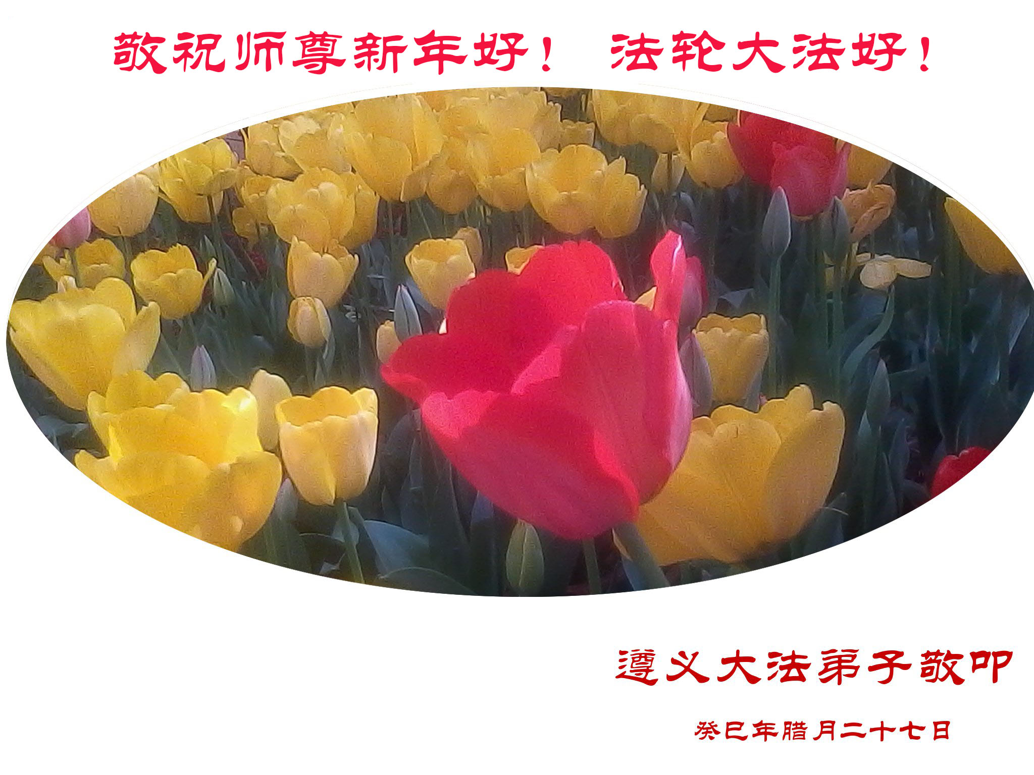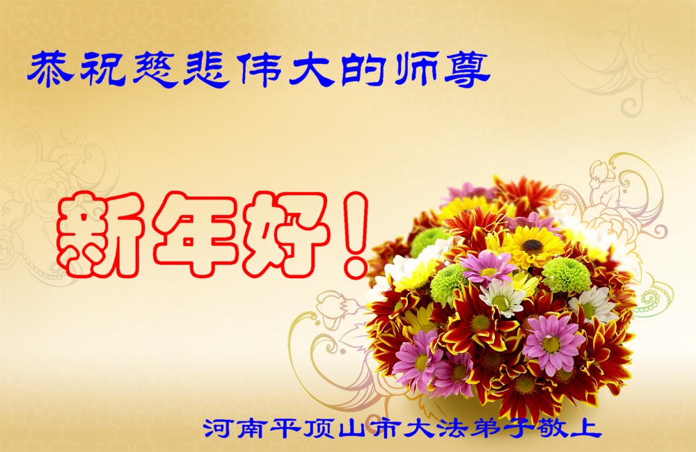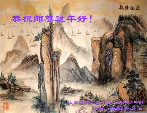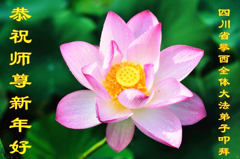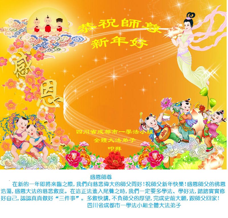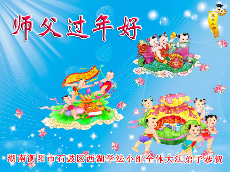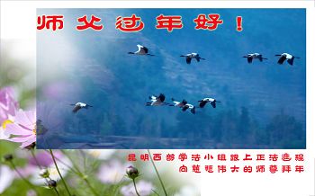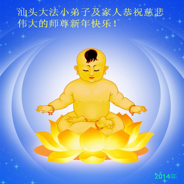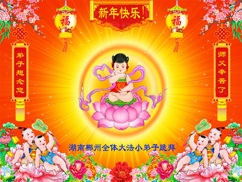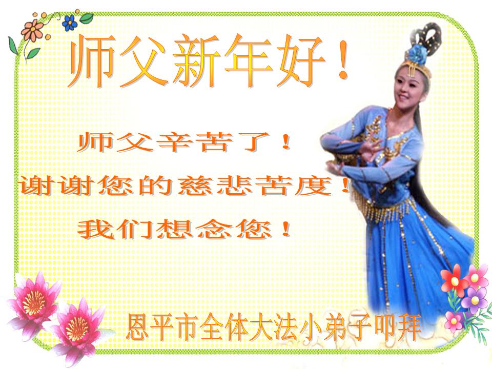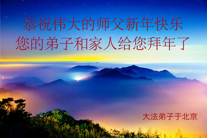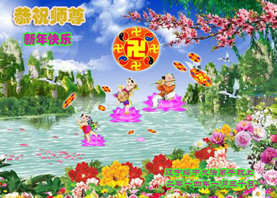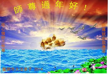 师尊新年好!弟子们想念您,谢谢您的慈悲救度!我们无法用语言来表达对您的敬意,只有在今后做的更好些,多救人,兑现我们的誓约,跟师尊回家。