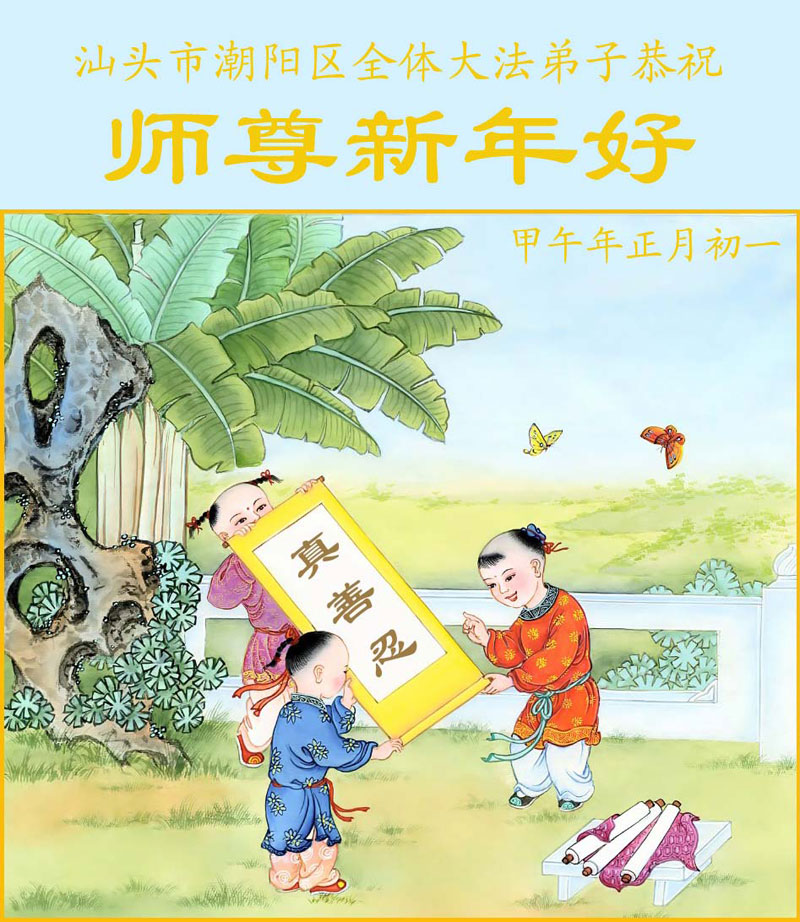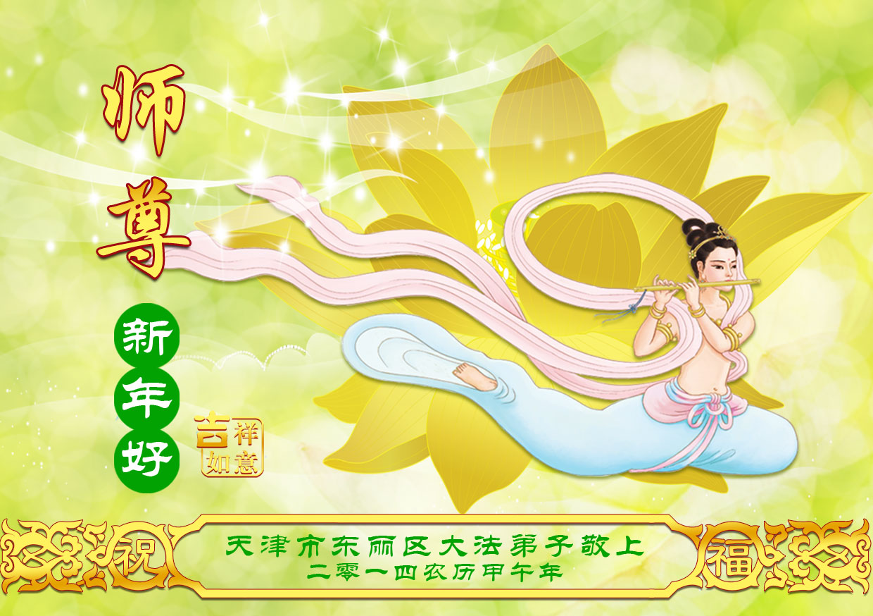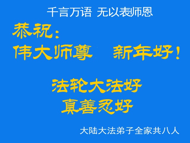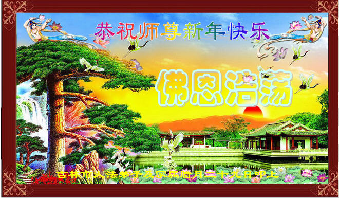 师父,过去的日子里,弟子一直在走旧势力安排的路,没能真正的在大法中修、按照师父说的去做,因而给大法抹了黑,让世人担惊受怕,决心全盘否定旧势力的安排,走出旧我,走出私,真正的做到助师正法、救度众生。在此也代表青岛地区宣传系统大法弟子恭祝师尊新年快乐!