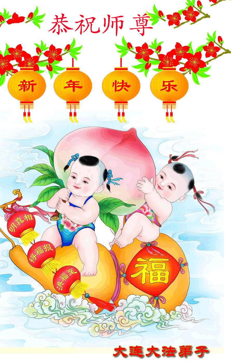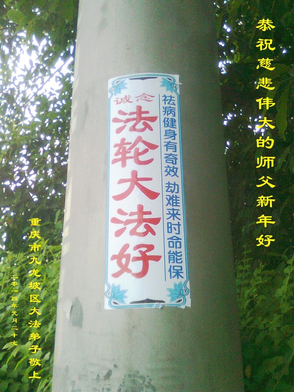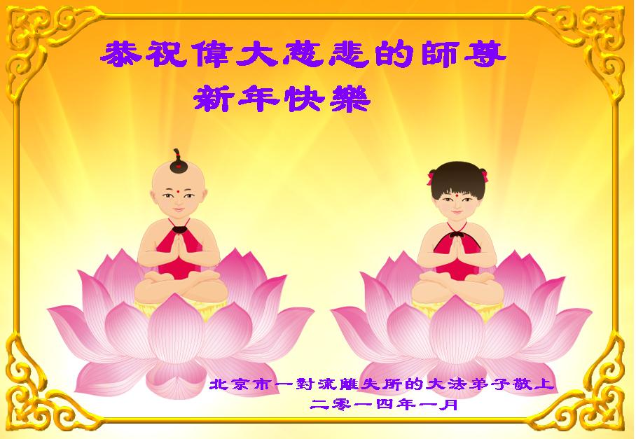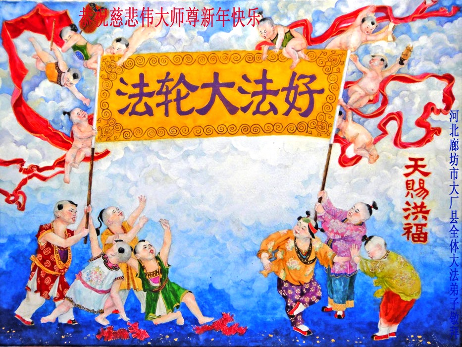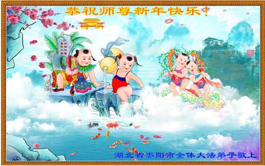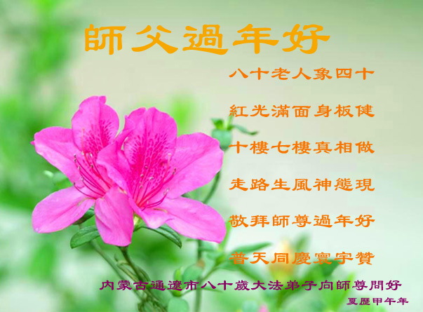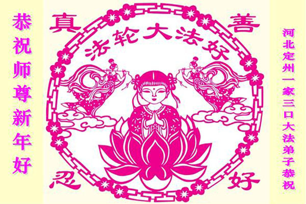 河北保定一位八旬老人祝李大师新年快乐,并感谢李大师的保护:“我曾受多种病痛折磨,诚念‘法轮大法好,真善忍好’,病痛消除。现在我满屋贴的都是法轮大法的年画、图片、年历。愿大法早日平反、昭雪,愿李大师早日回国。”