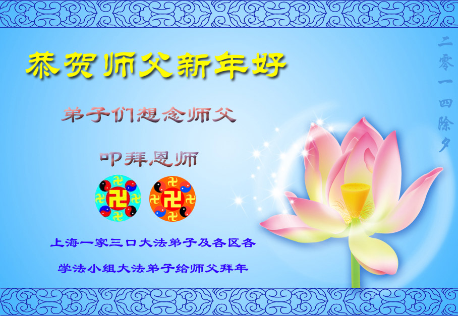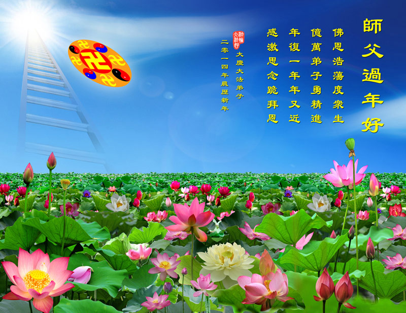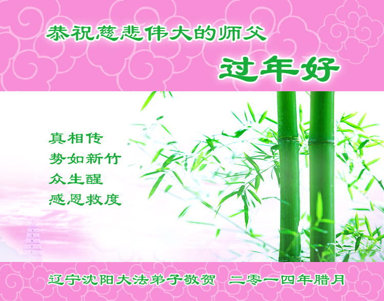 【明慧网二零一四年二月四日】(明慧记者荷雨/肖妍综合报道)传统新年是华夏儿女阖家团聚、辞旧迎新,表达对天地的敬畏、感恩和诚敬的最隆重节日。如往年一样,在甲午新年来临之际,发自肺腑的感恩与问候如雪片般地汇向明慧网,不仅来自五洲四海、各行各业的法轮功学员向恩师拜年,越来越多明白真相、受到法轮大法福佑的各界民众也纷纷冲破中共的重重封锁,向法轮功创始人李洪志先生寄上诚挚的感恩和颂扬,期盼他早日重归故国,福泽神州。