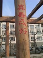 【明慧网二零一四年三月十九日】中共两会期间,辽宁省某城市市内的路街出现大量各种真相标语。