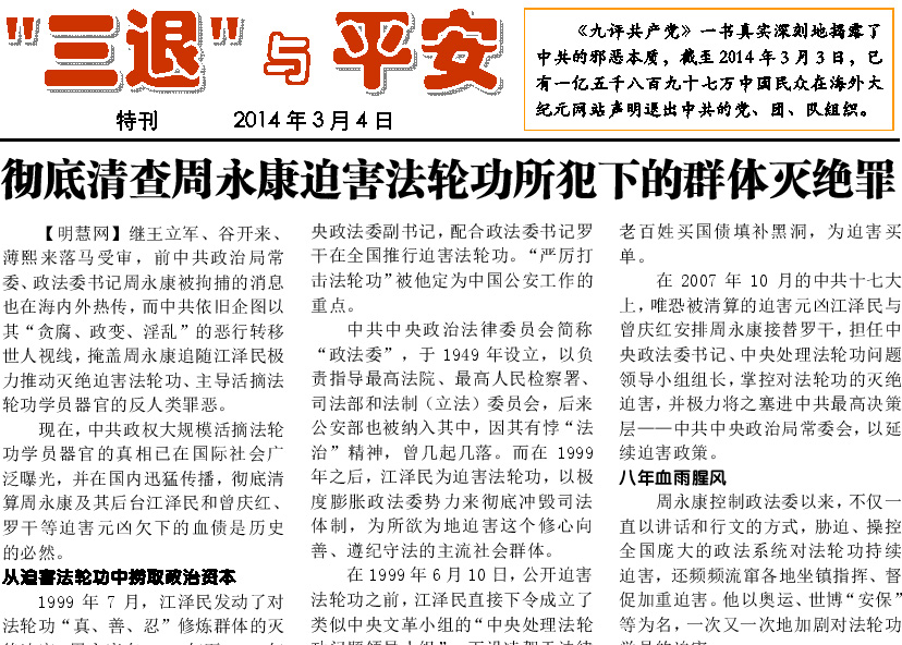 彻底清查周永康迫害法轮功所犯下的群体灭绝罪