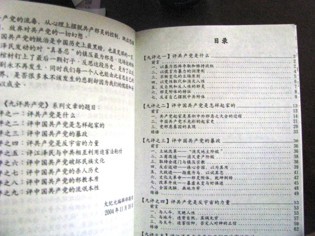 我曾经在资料点待了很长时间,也做过各种版本的《九评共产党》,但还是第一次见到台湾制作的版本,所以比较好奇,特意打开看看,但让我感到失望的是,这本书的制作比较粗糙,比如里面有很多地方外页边距几乎只有1毫米宽,一翻书就会摸到字,估计是同修做的时候裁剪和打印出的问题造成的。