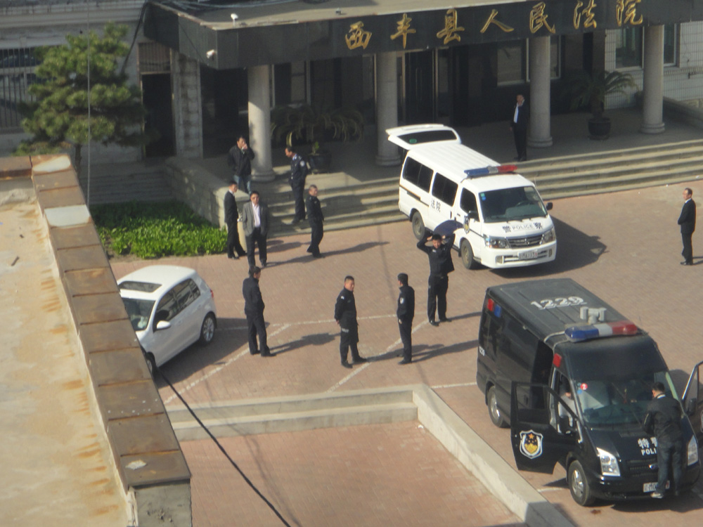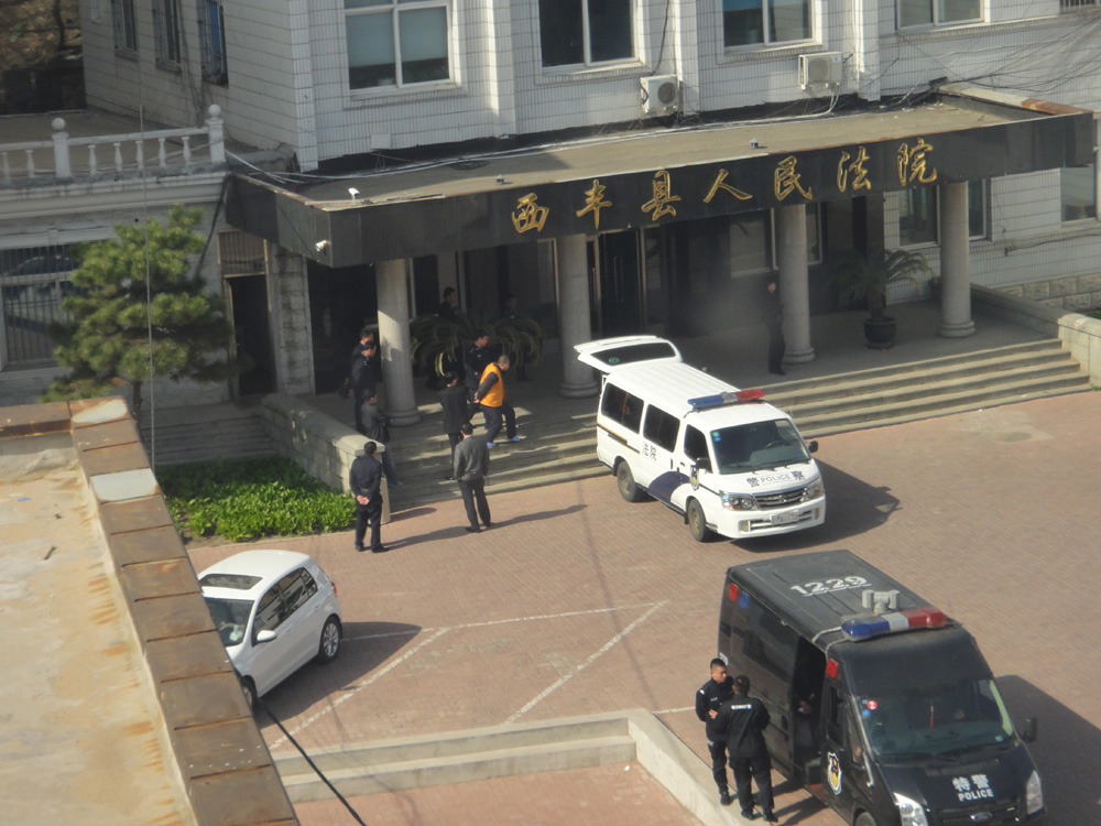 4月18日当天,西丰法院欲庭审一对普通的做小生意的民众,却象面对两个大人物,门外不明身份的人和警察站立待命,多辆警车中坐着公安人员,还有专人拍照、录像,其目的是恫吓来参加旁听的民众。可法院为何害怕民众旁听?