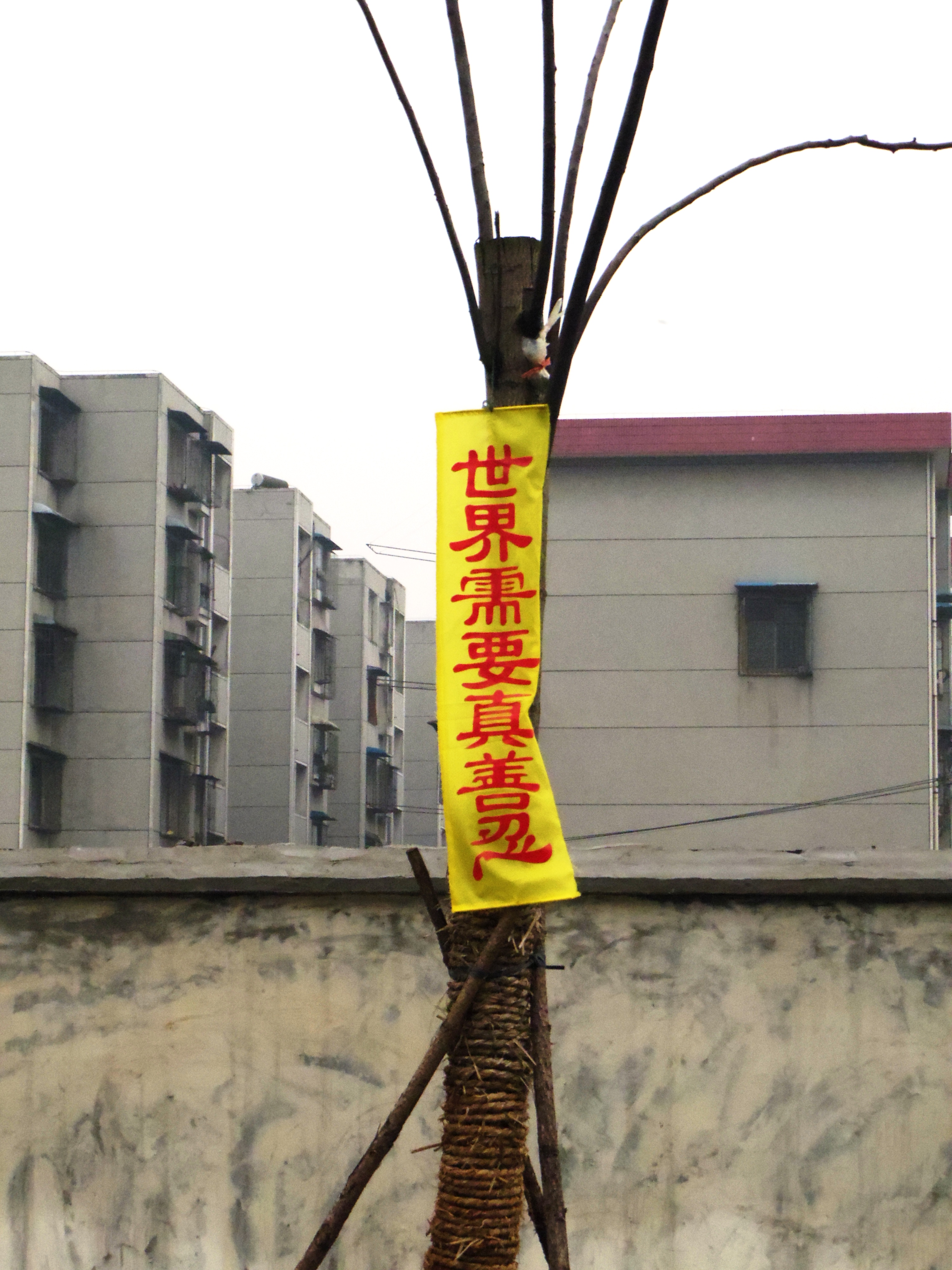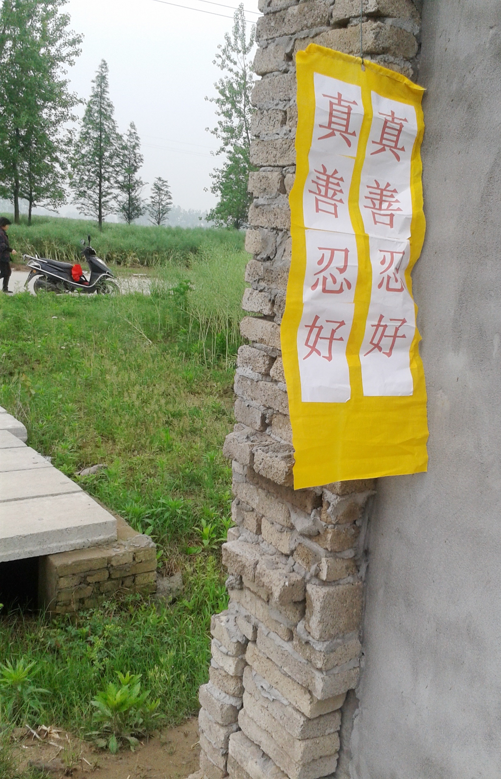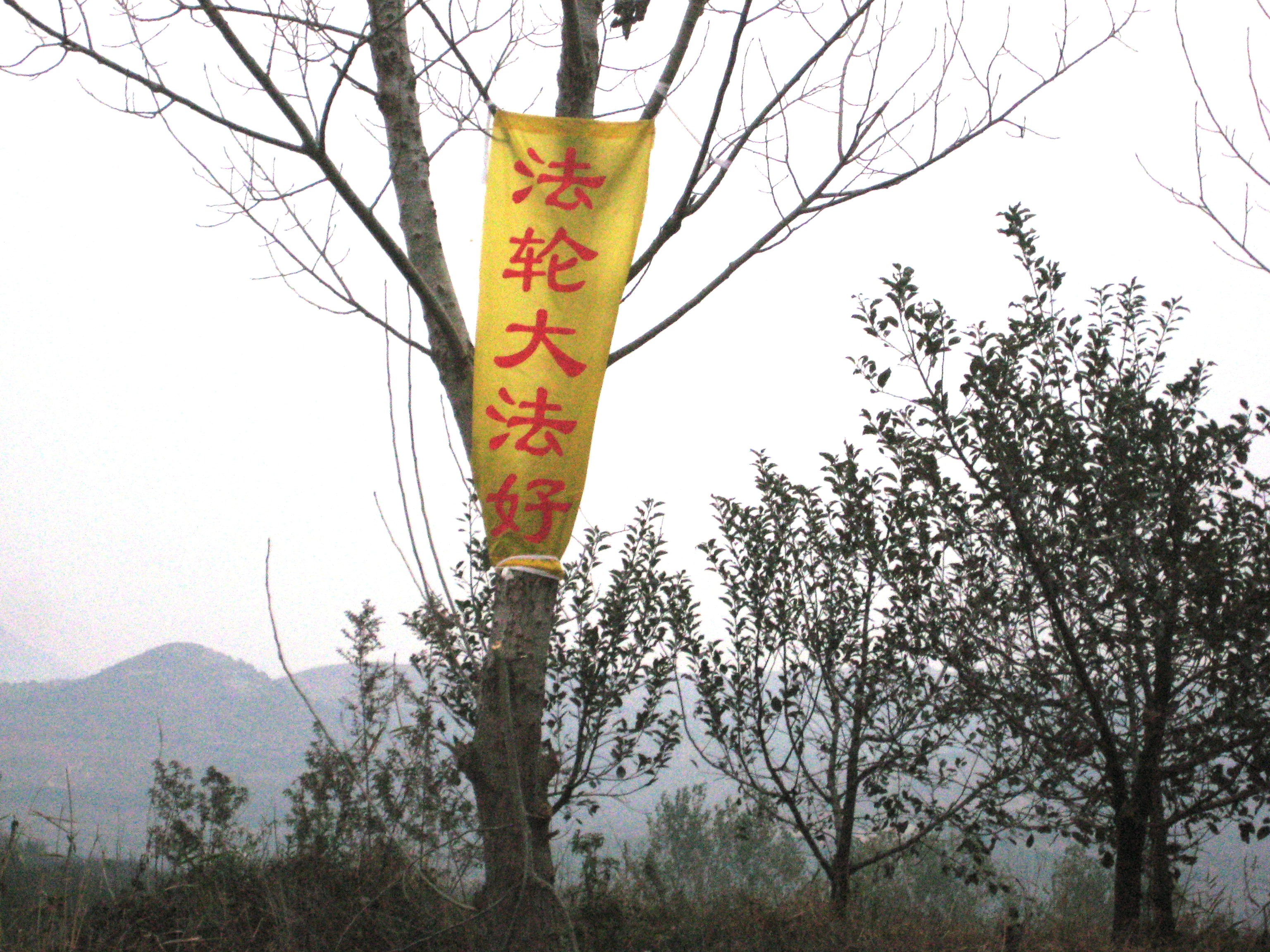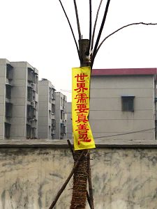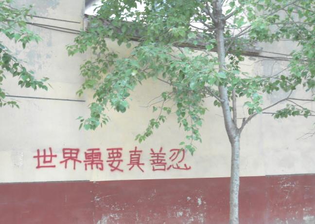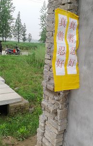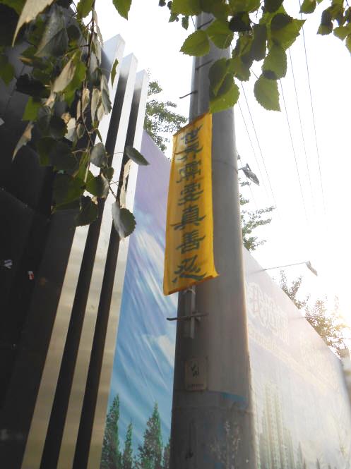 四•二五上访十五周年之际,在大陆多地出现法轮功真相条幅和标语,告诉人们“法轮大法好”、“世界需要真善忍”。