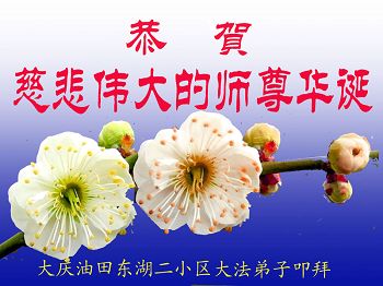 黑龙江省富裕牧场大法弟子全家恭祝师尊生日快乐!黑龙江省七台河市茄子河区全体大法弟子恭贺师尊华诞暨世界法轮大法日黑龙江大法弟子祝师父生日快乐!黑龙江建三江洪河大法弟子恭贺师尊六十三华诞!同庆第十五届世界法轮大法日!法轮大法在全世界洪传二十二周年!感恩伟大师尊的慈悲苦度!洪河大法弟子在此略表寸心,愿以加倍精進做好三件事来回报师尊之万一!黑龙江建三江洪河大法弟子敬上黑龙江省绥化市肇东市全体大法弟子庆祝世界法轮大法日!恭祝师尊生日快乐!我们肇东全体大法弟子感谢师尊慈悲苦度!弟子请师尊放心,弟子们一定会做好三件事,精進不停,完成史前大愿,圆满随师还。